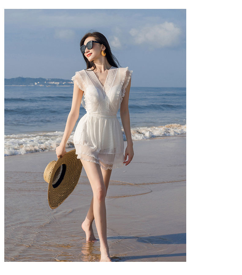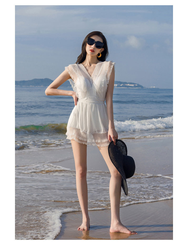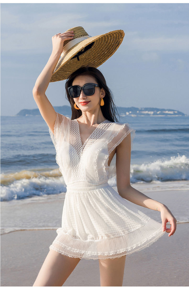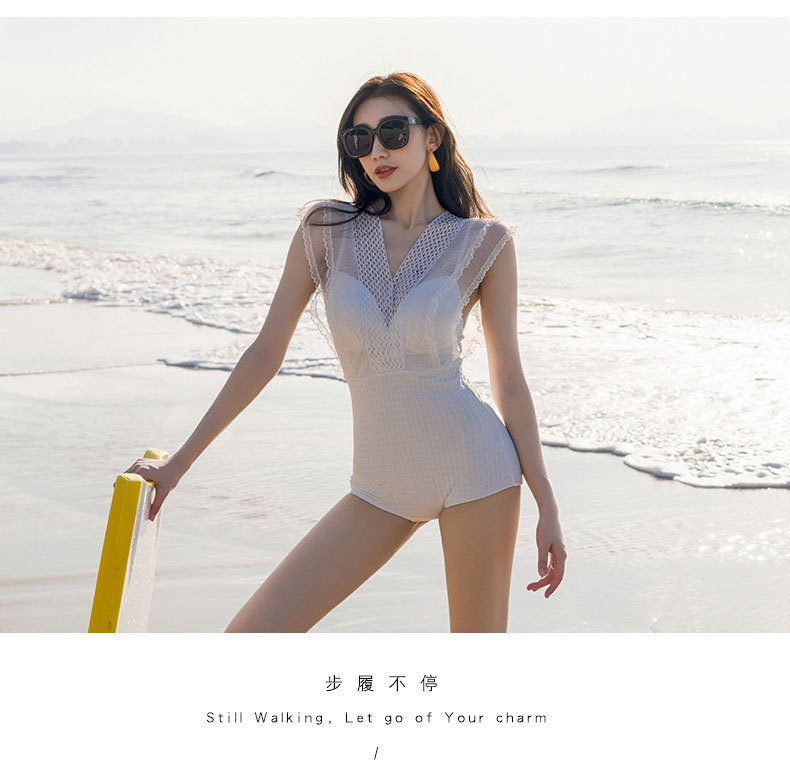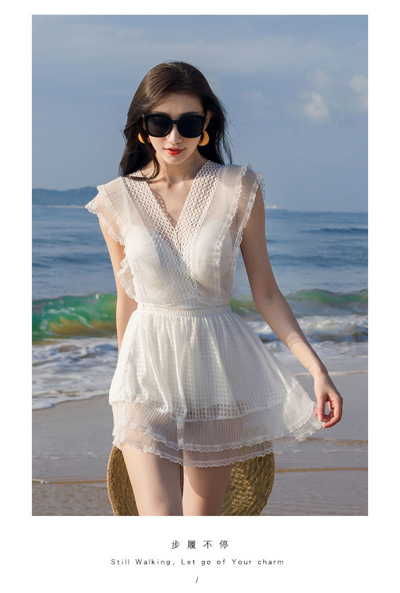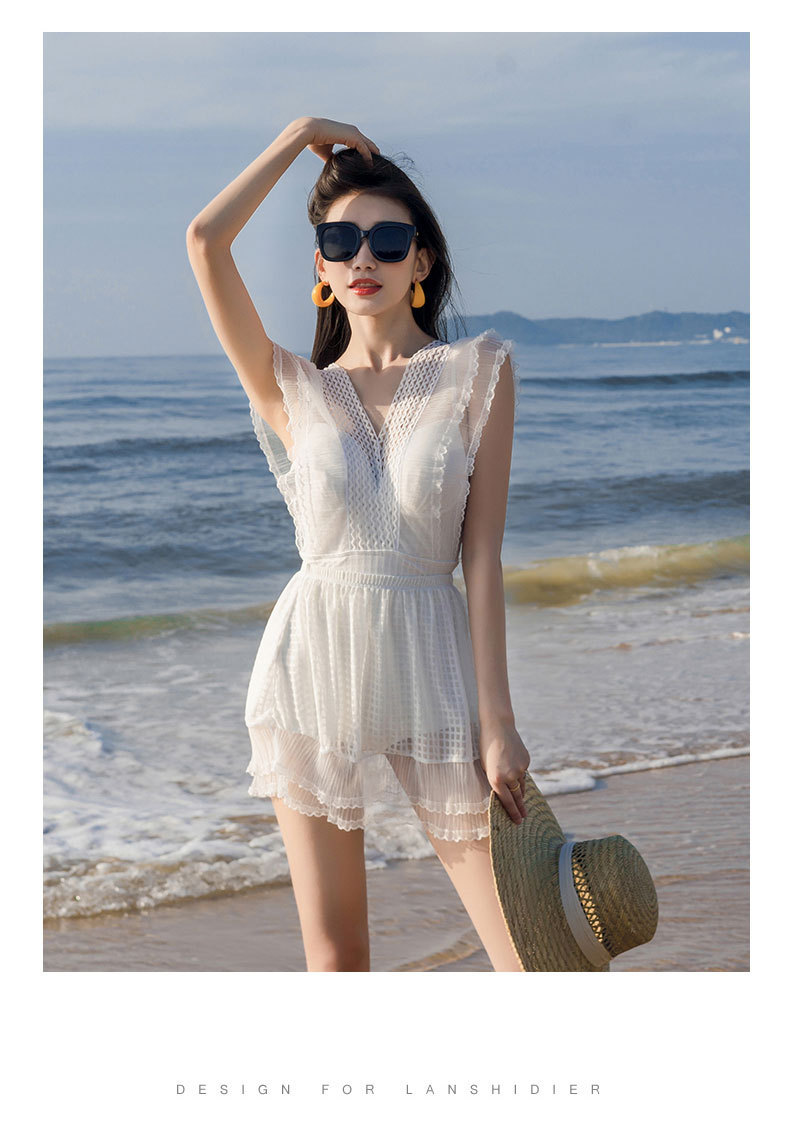 여성용 원피스 스커트형 수영복 2020 배를 가려주는 슬리밍 효과 화이트 레이스 플러스 사이즈 통통한 여성을 위한 푸쉬업 수영복 섹시 레이스스토어 가기