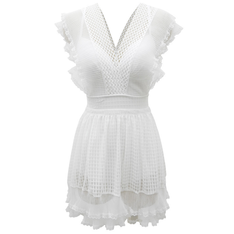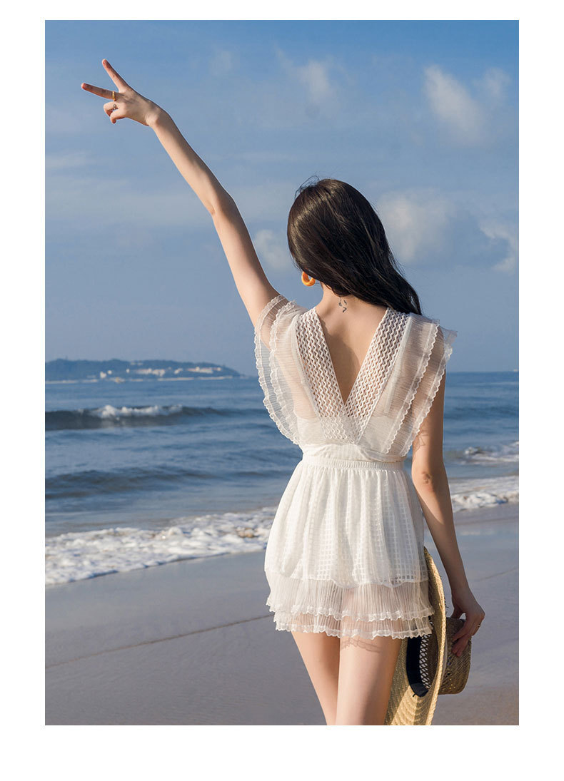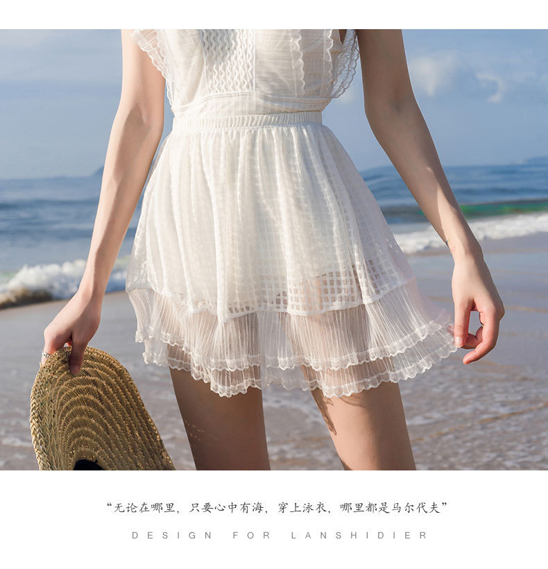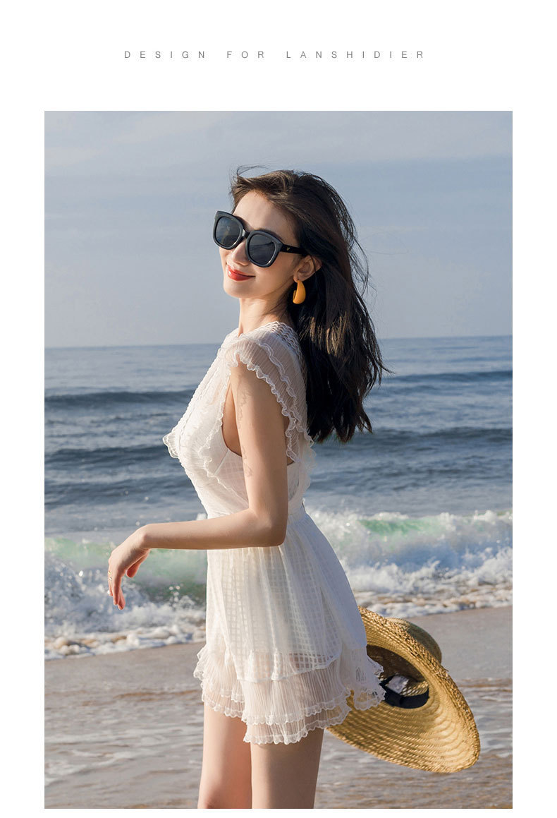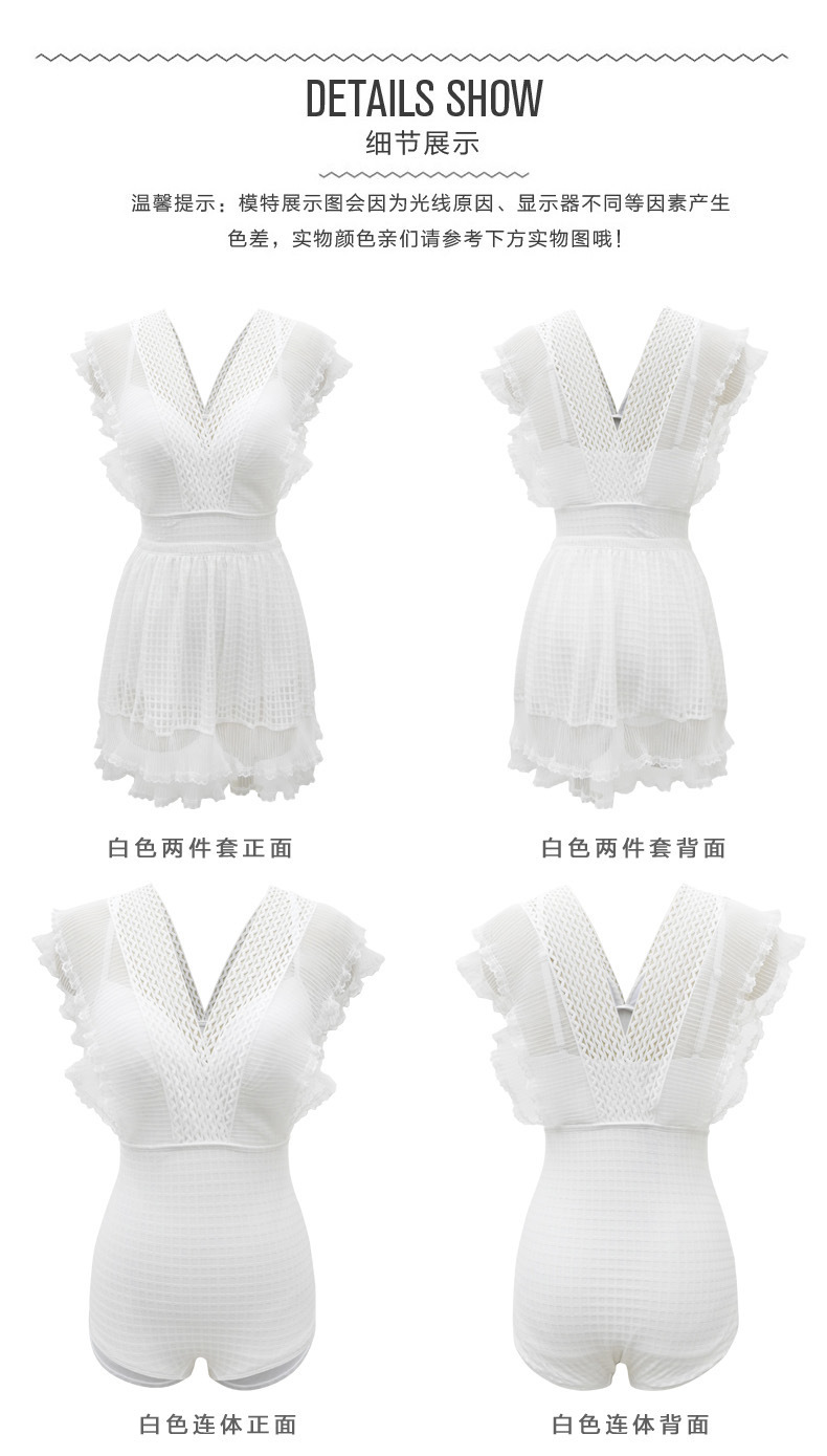 여성용 원피스 스커트형 수영복 2020 배를 가려주는 슬리밍 효과 화이트 레이스 플러스 사이즈 통통한 여성을 위한 푸쉬업 수영복 섹시 레이스