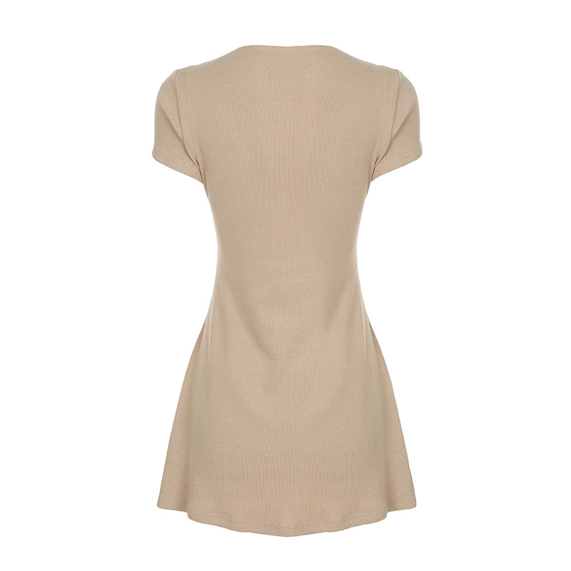 프랑스 빛 성숙한 V-Neck 니트 원피스 뜨거운 소녀 싱글 가슴 슬림 핏 우아한 슬림 치마를 잊는 것을 꺼리는 옷감