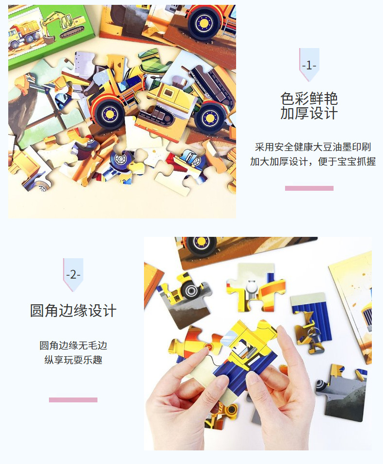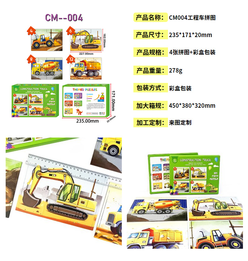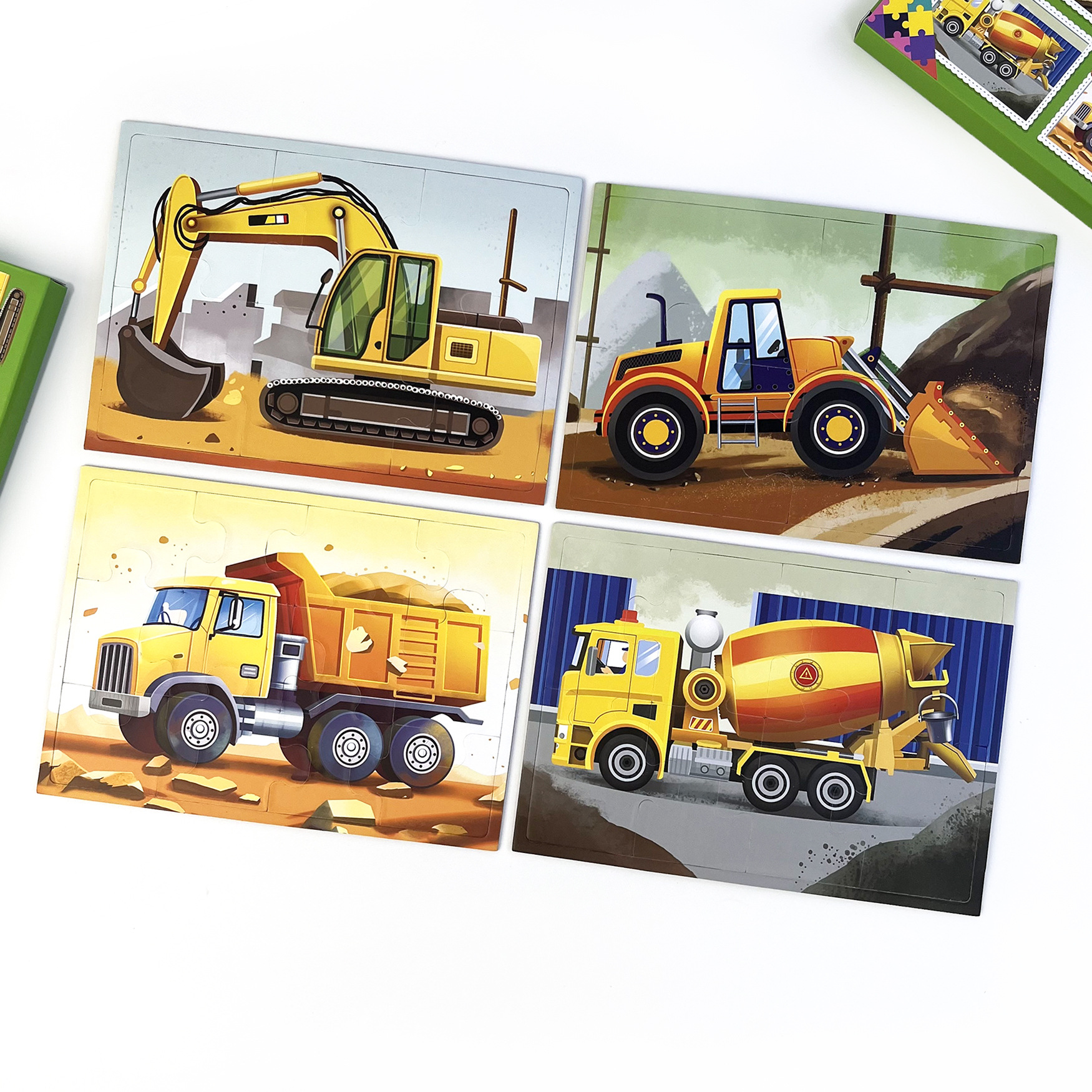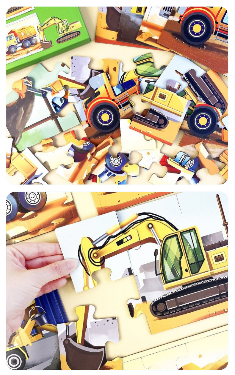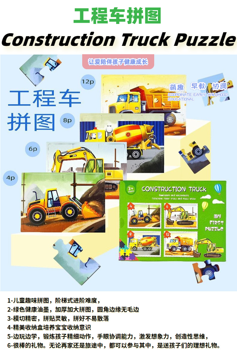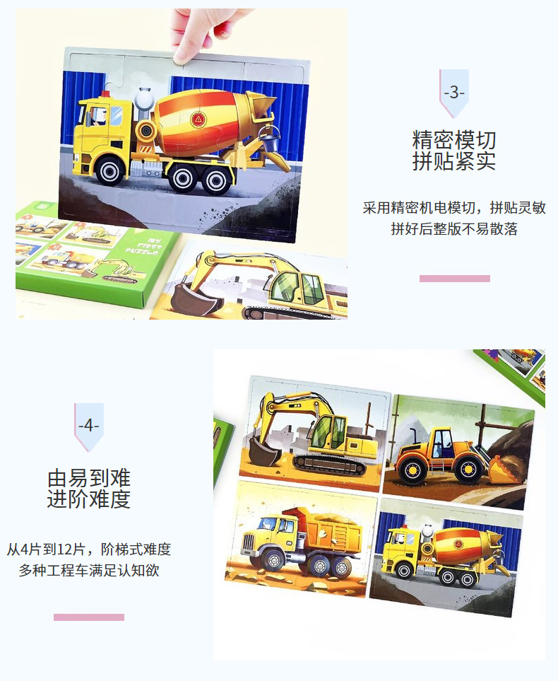 亚马逊儿童拼图puzzle手工diy工程车拼图套装3-6岁交通车进阶拼图