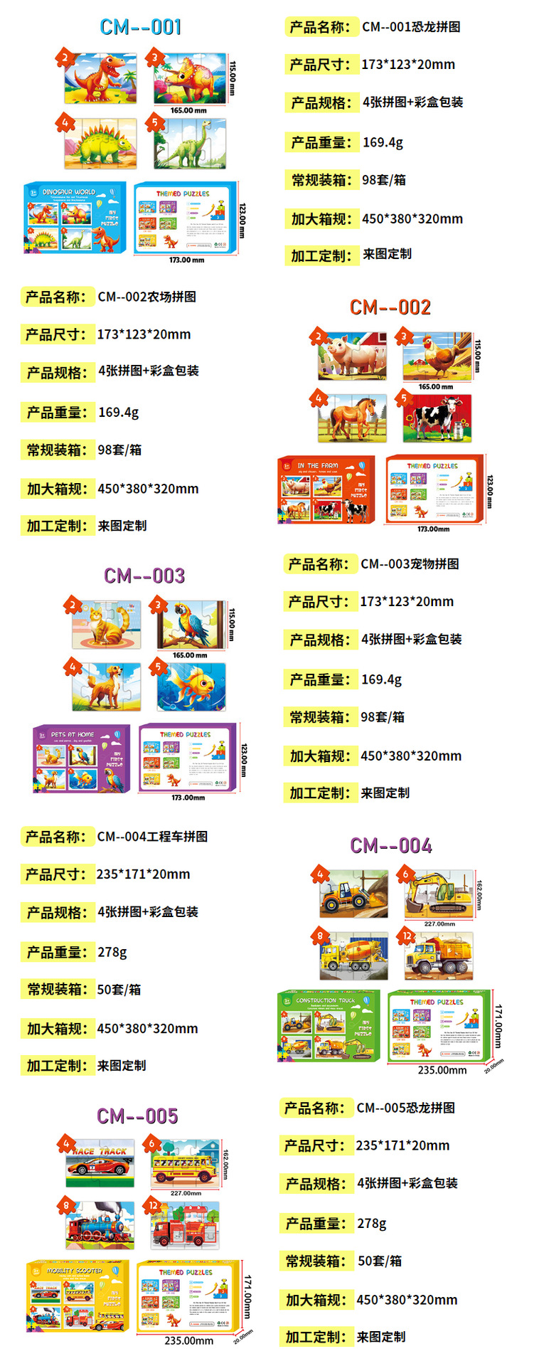 定制拼图3-6岁儿童diy卡通拼图puzzle早教启蒙玩具纸质拼图定做