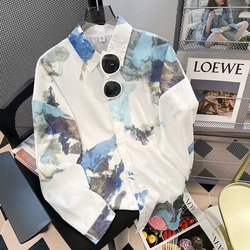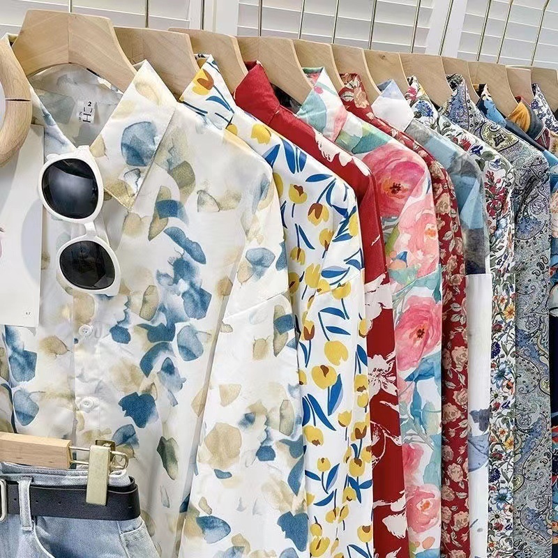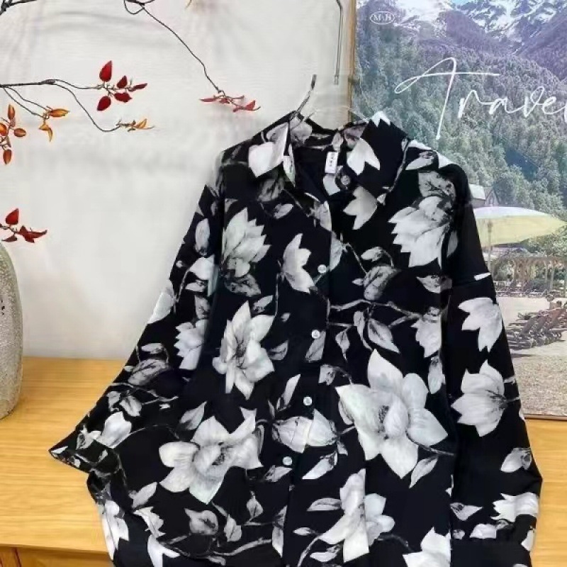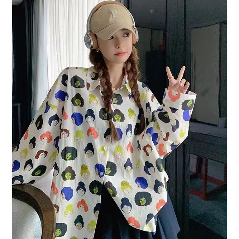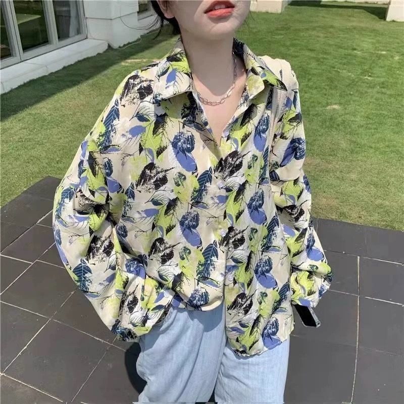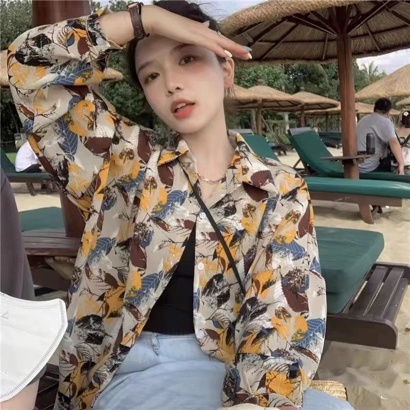 여성용 꽃무늬 셔츠, 복고풍 홍콩 스타일의 새로운 꽃 디자인, 퍼포먼스 스타일 프린트 긴팔 셔츠, 여성용 탑스토어 가기