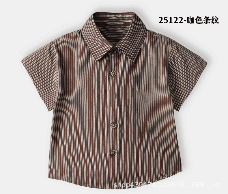 • 순면 브라운 스트라이프 반소매 안감