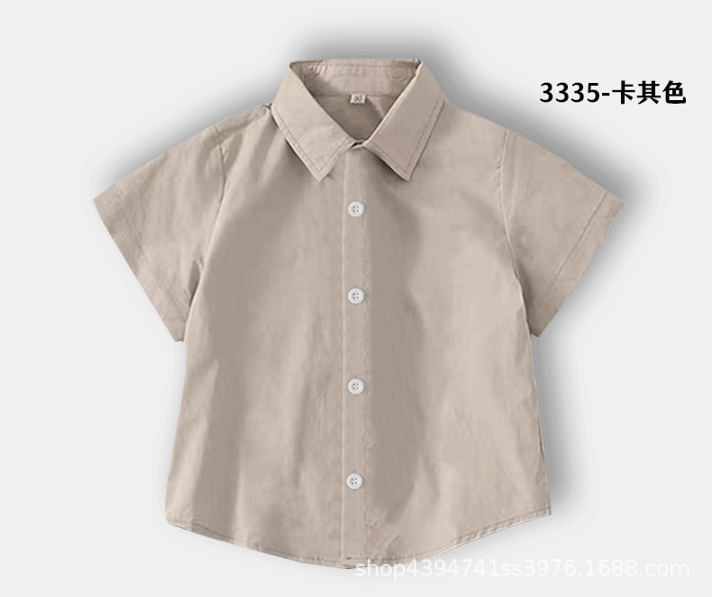 • 퓨어 코튼 카키 반소매 셔츠