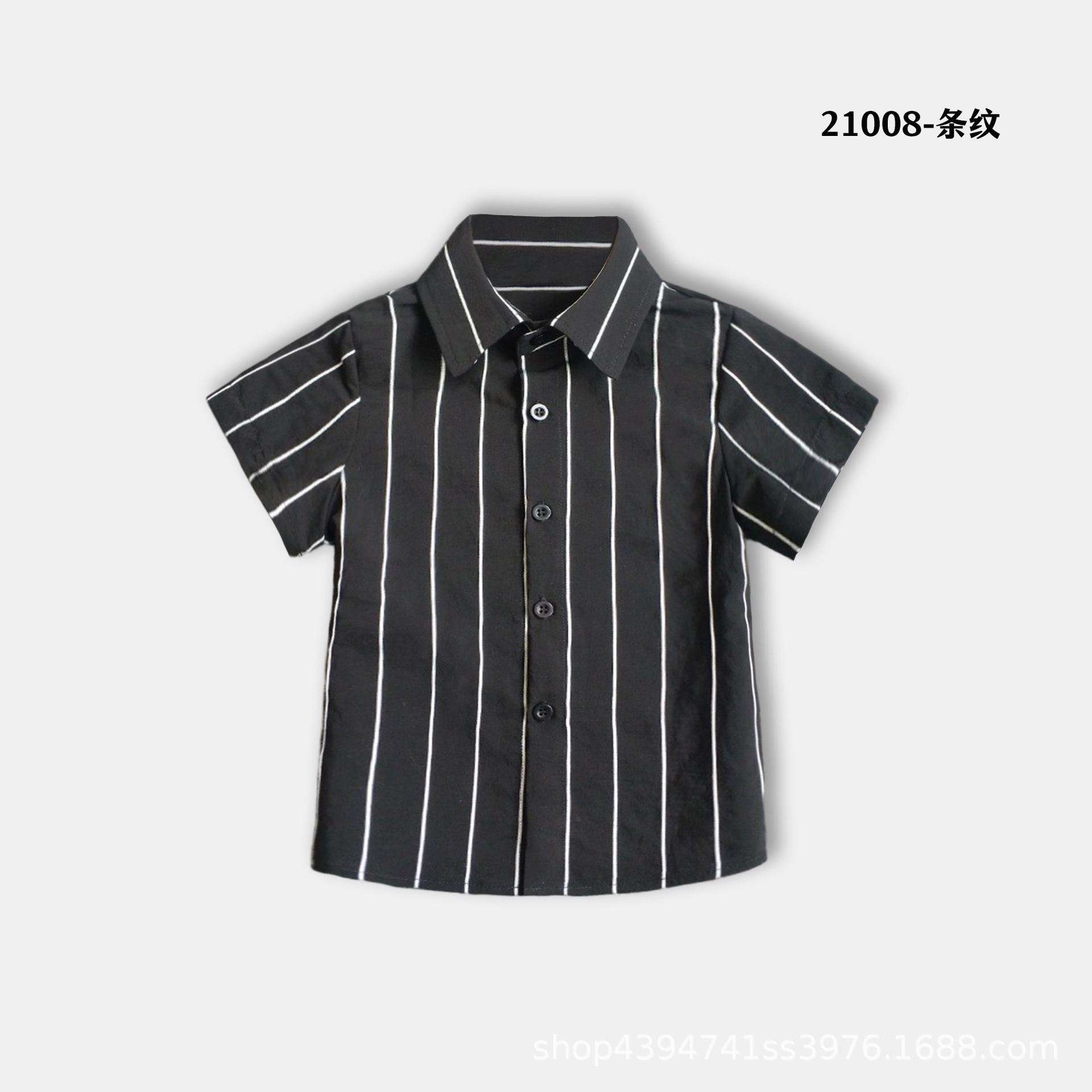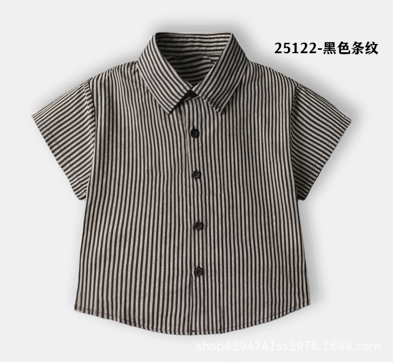 • 퓨어 코튼 블랙 스트라이프 반소매 셔츠