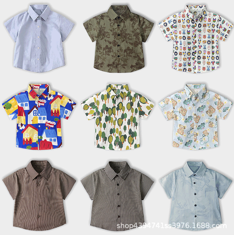 소년 디지털 인쇄 반팔 셔츠 어린이 여름 새로운 잘 생긴 셔츠 만화 얇은 패션 캐주얼 탑
