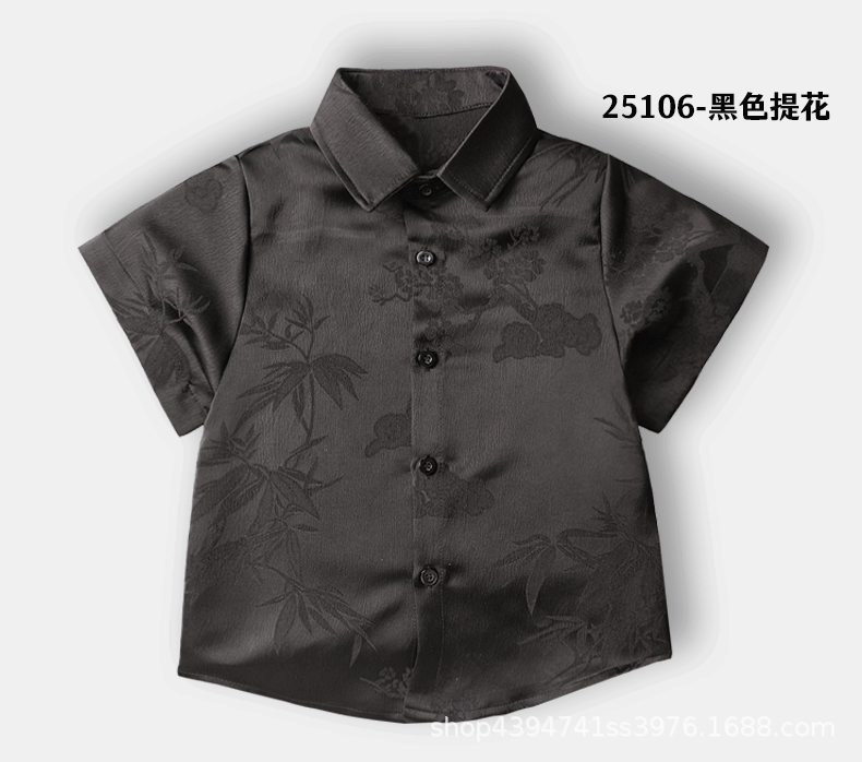 • 블랙 자카드 반소매 셔츠