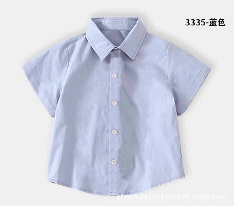 • 퓨어 코튼 블루 반소매 셔츠