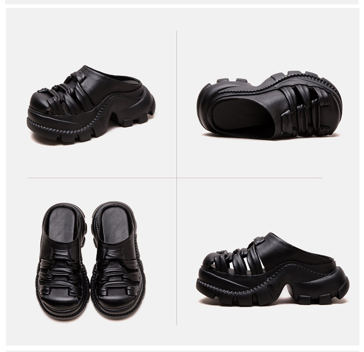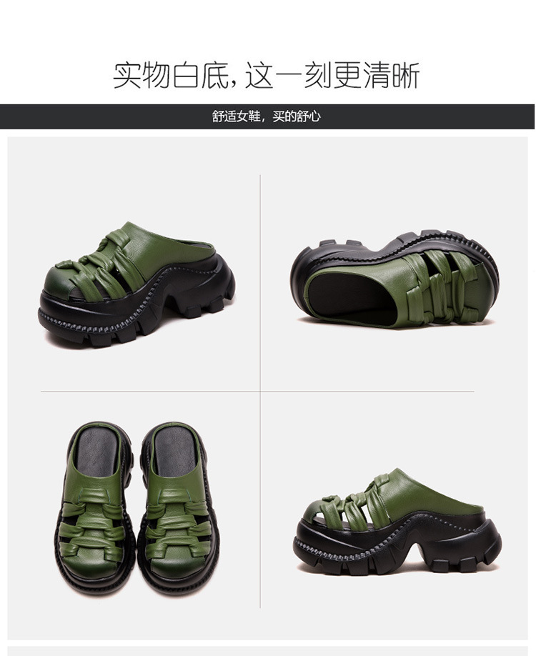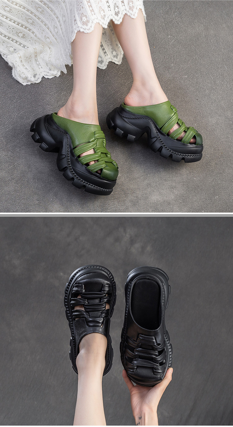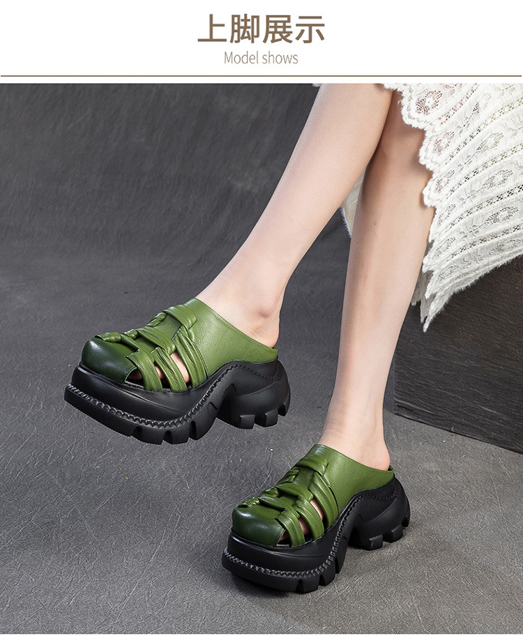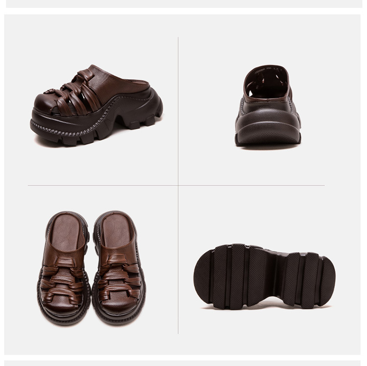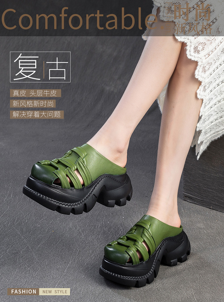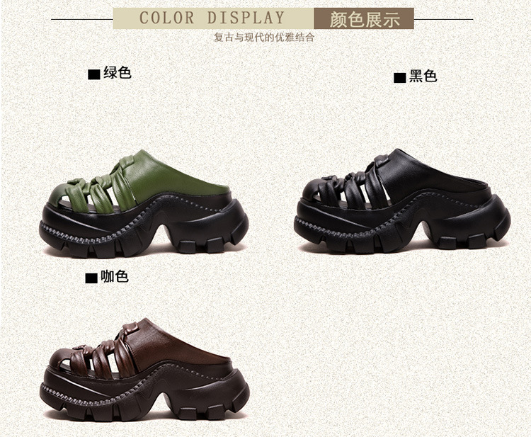 Jiejie 2025 여름 새로운 레트로 높이 증가 Baotou 레이어 Cowhide Outer Wear Slippers Hollow 올 매치 경량 여성 신발스토어 가기