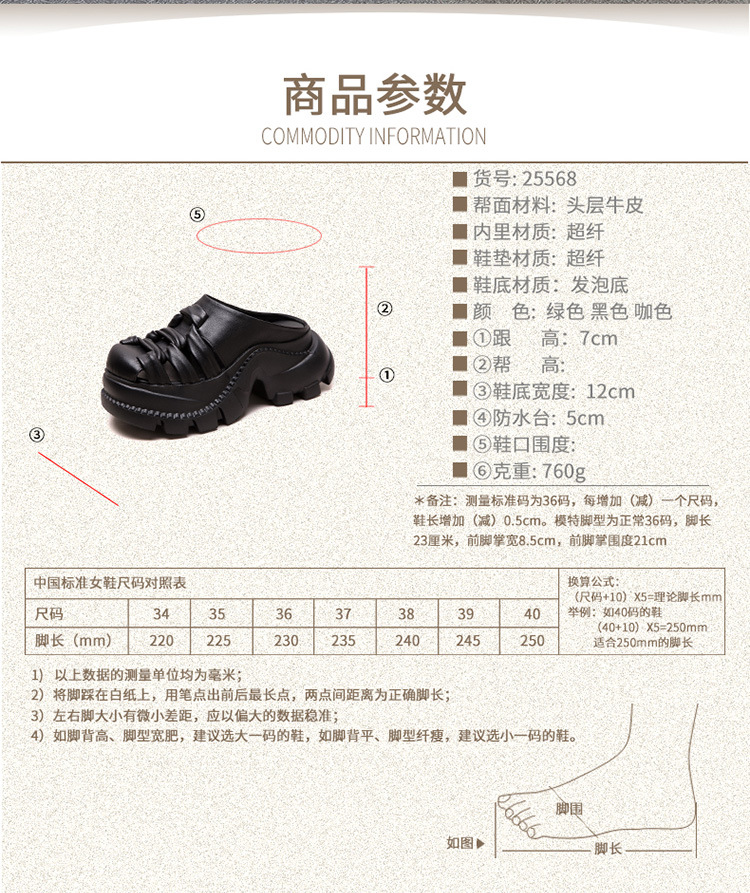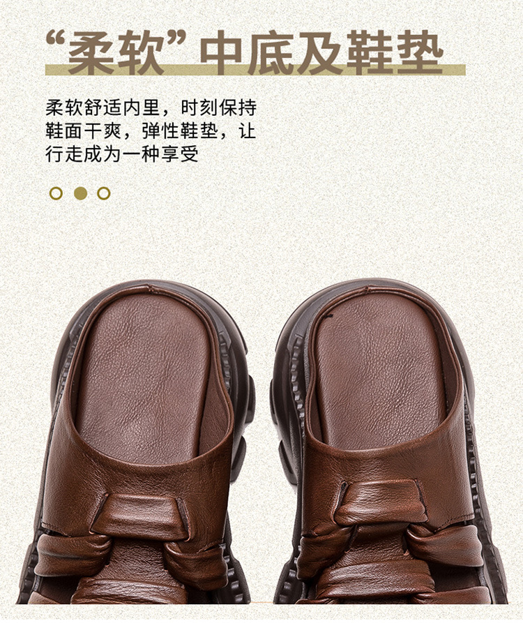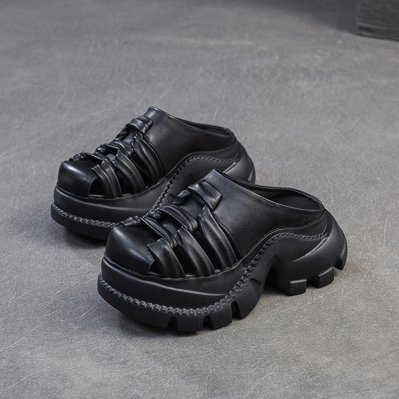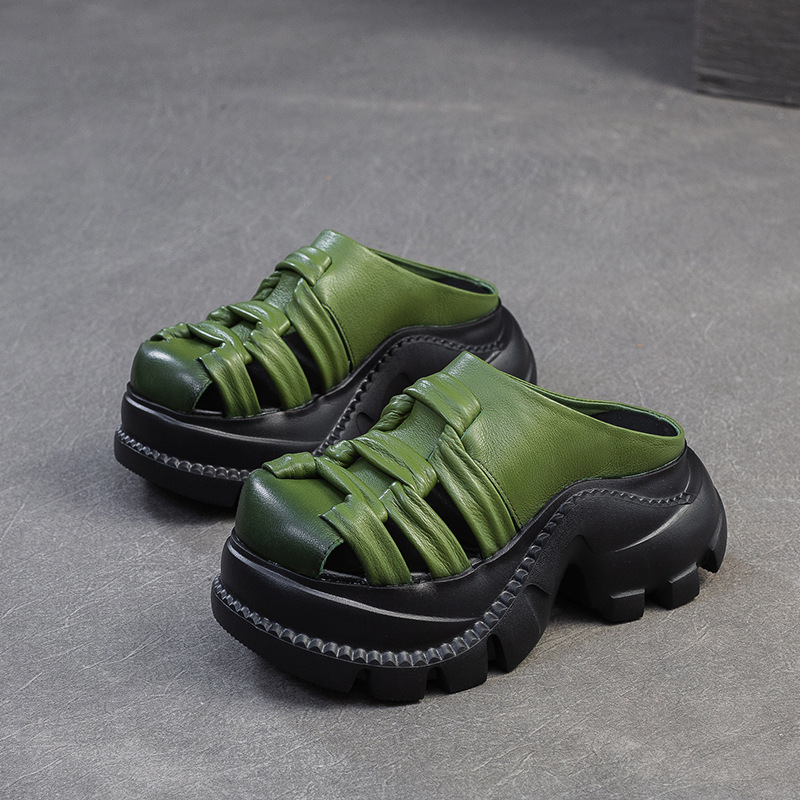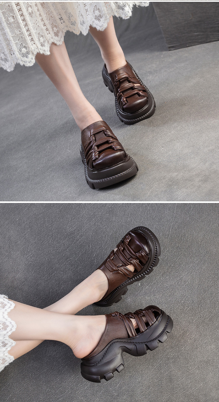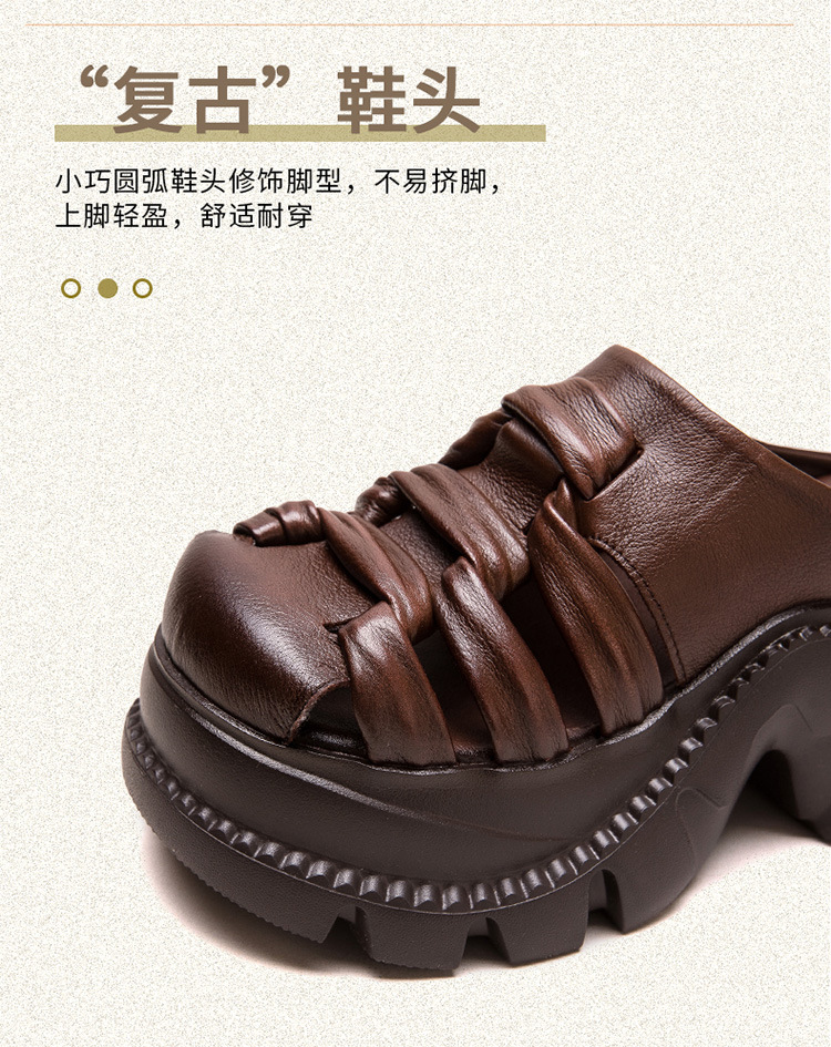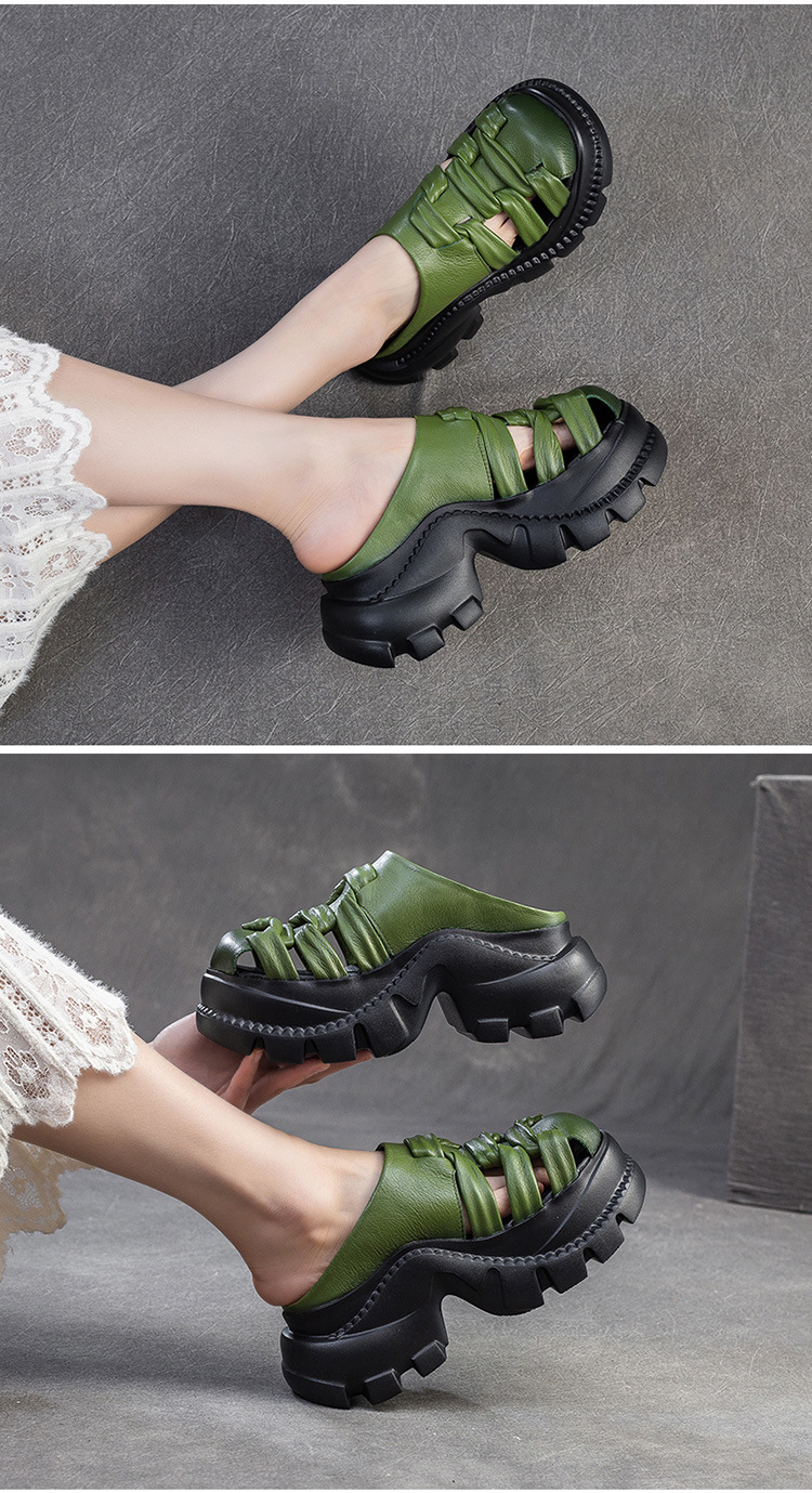 Jiejie 2025 여름 새로운 레트로 높이 증가 Baotou 레이어 Cowhide Outer Wear Slippers Hollow 올 매치 경량 여성 신발스토어 가기