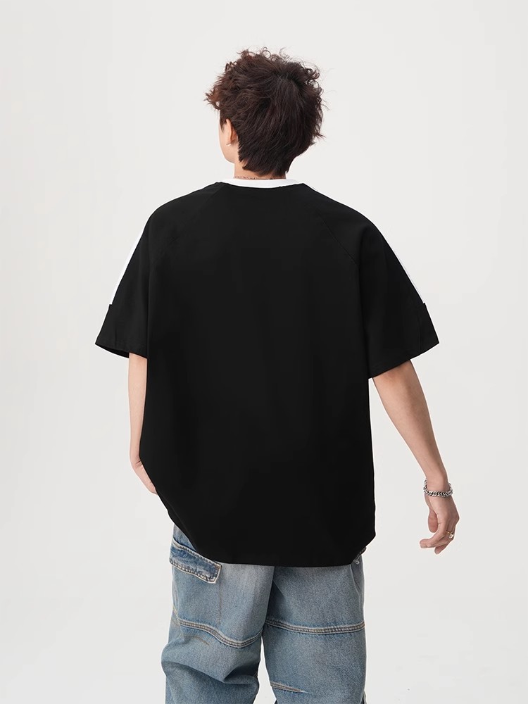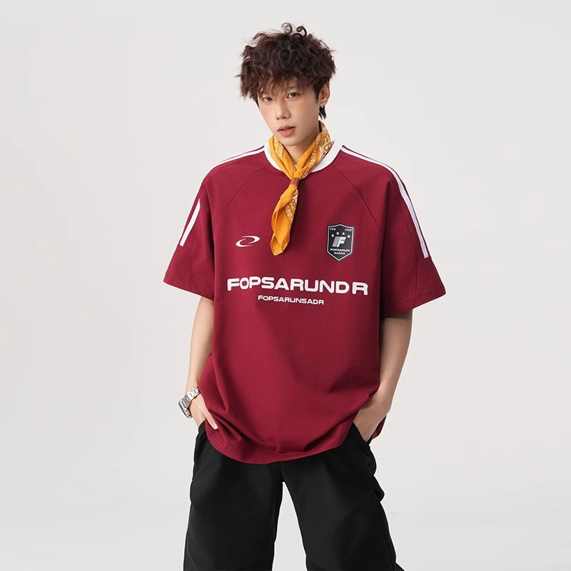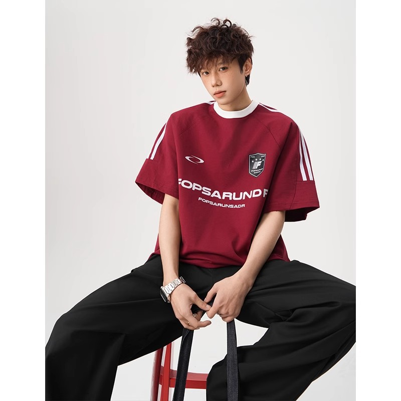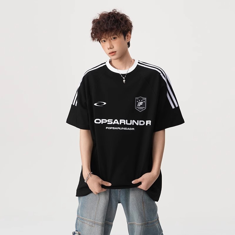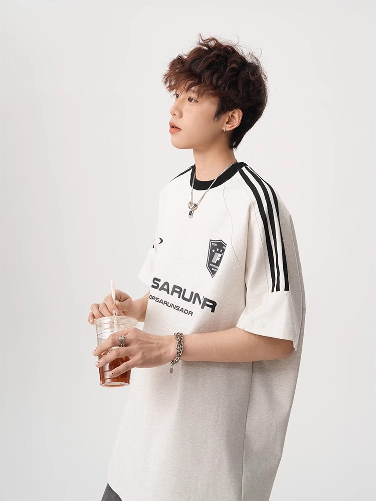 아메리칸 스타일 하이 스트리트 인스 레터 프린트 3 바 무거운 반팔 티셔츠 소년 여름 유행 브랜드 커플의 최고 유행 의류