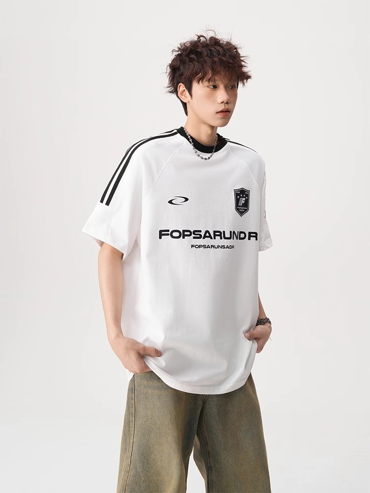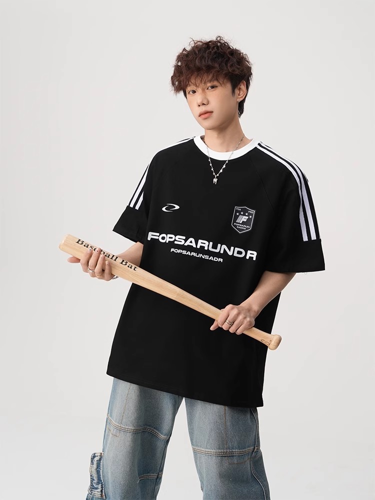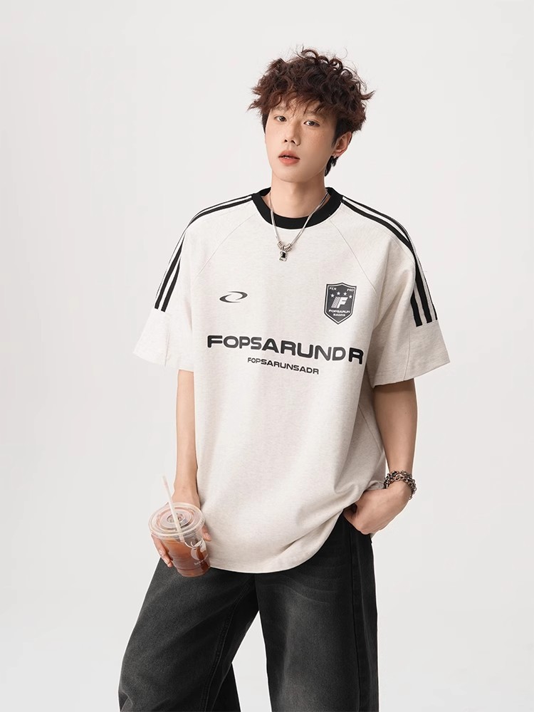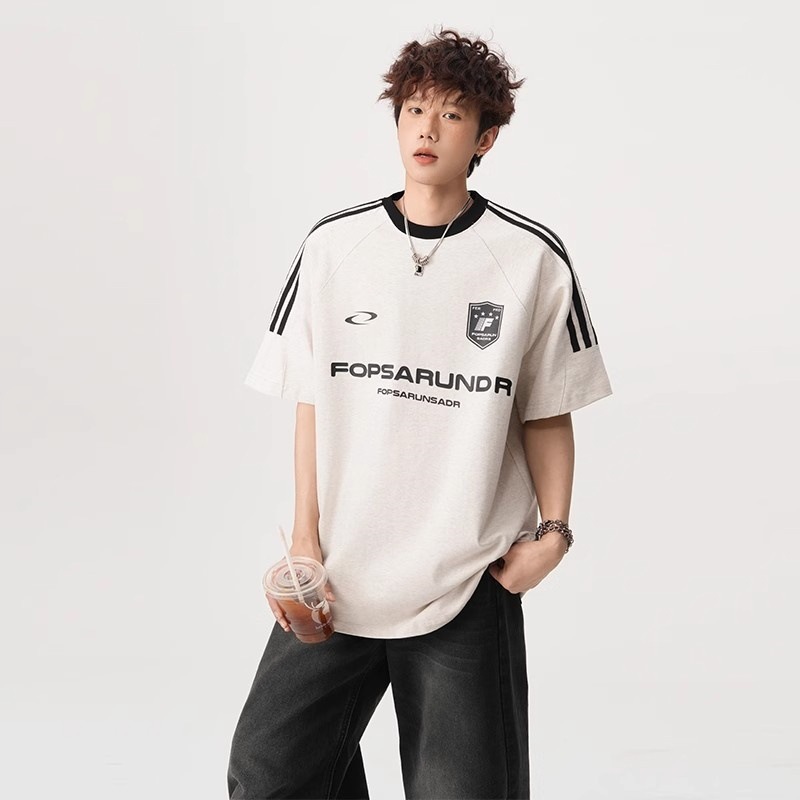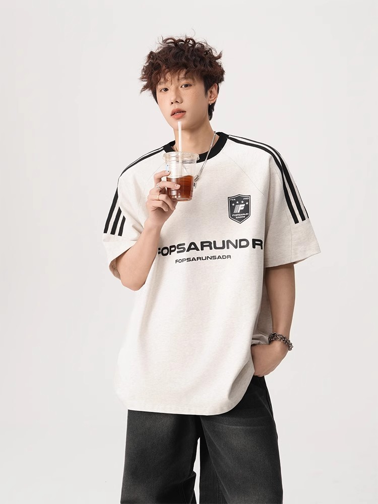 아메리칸 스타일 하이 스트리트 인스 레터 프린트 3 바 무거운 반팔 티셔츠 소년 여름 유행 브랜드 커플의 최고 유행 의류스토어 가기