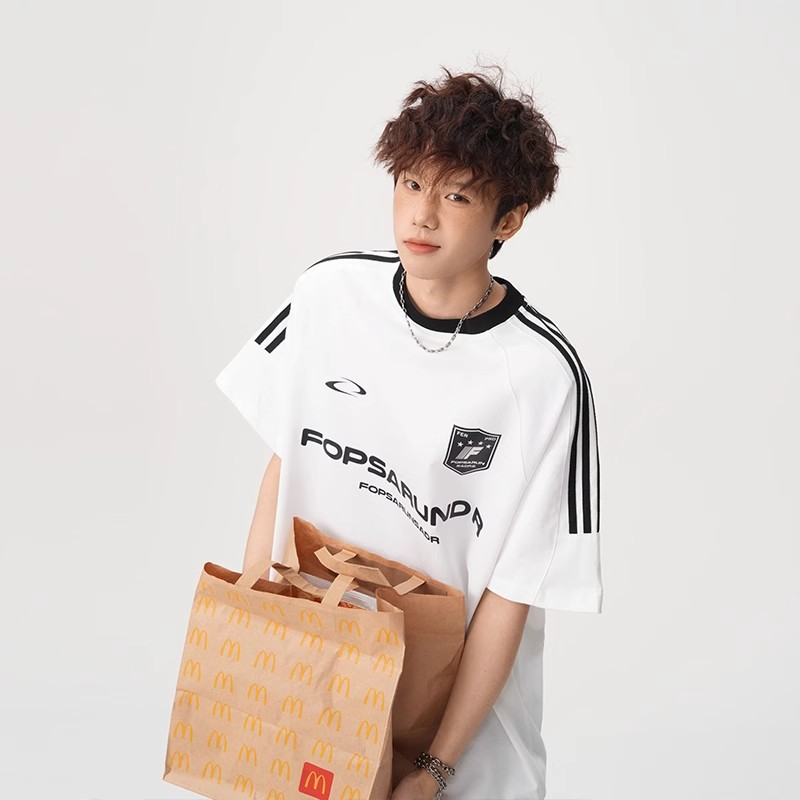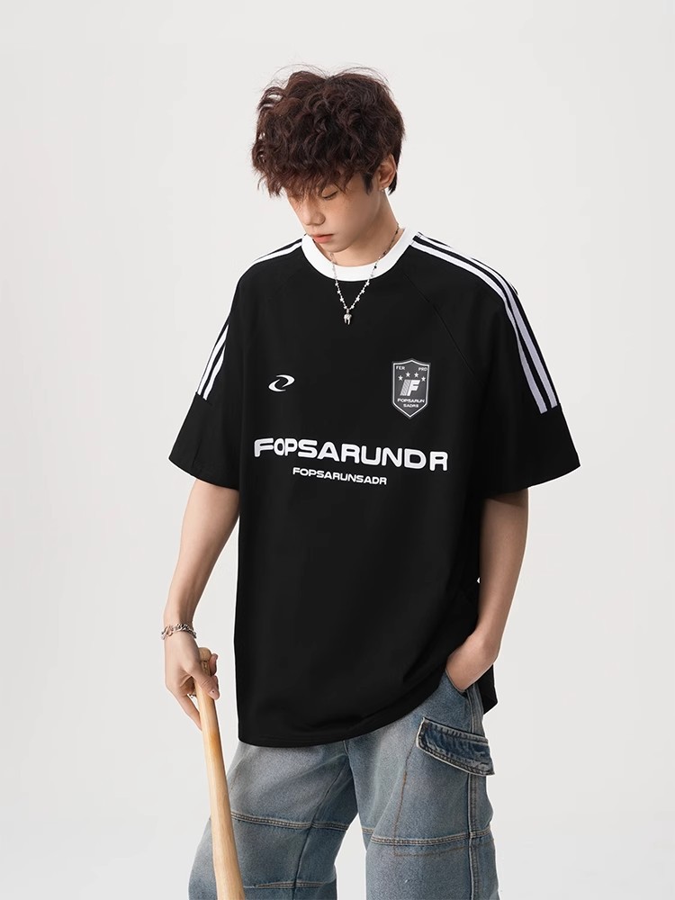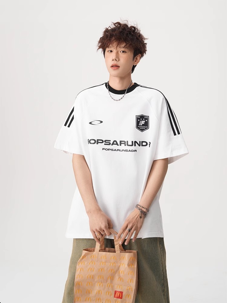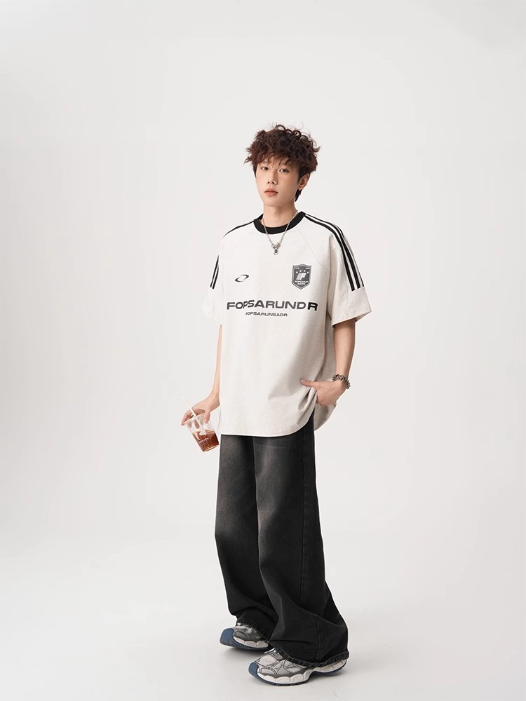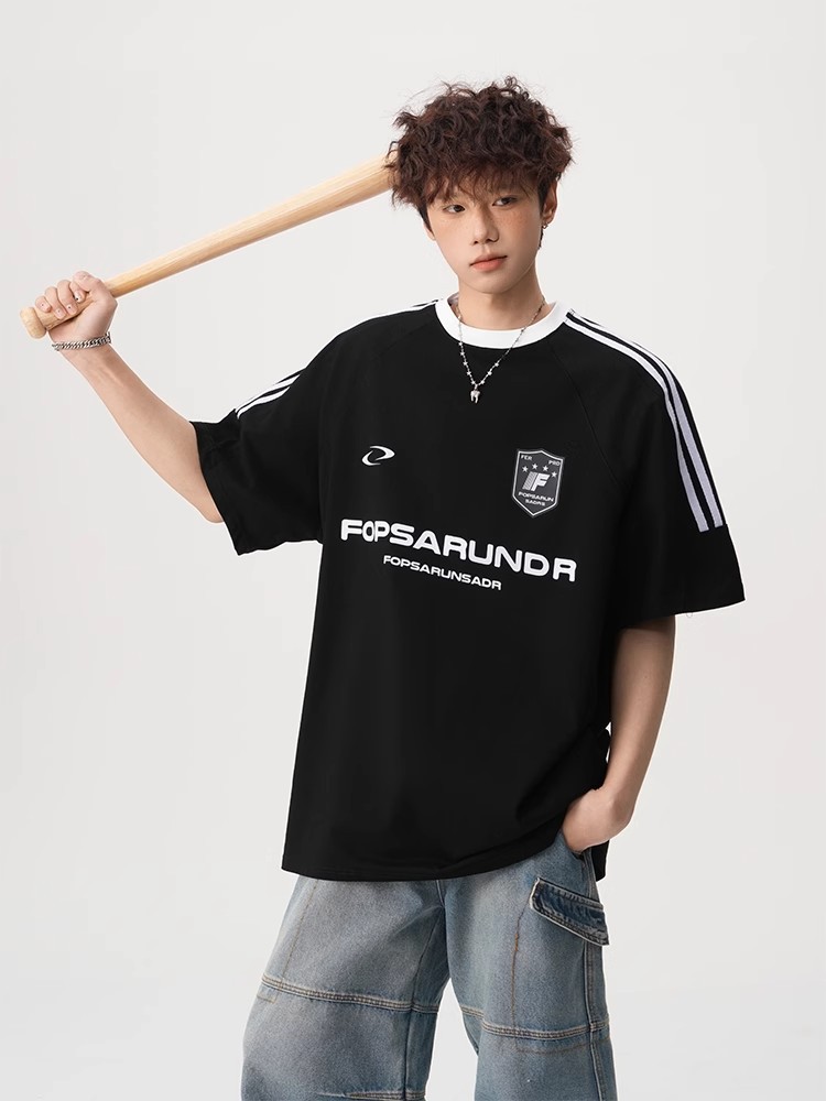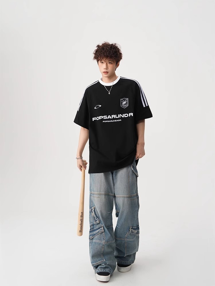 아메리칸 스타일 하이 스트리트 인스 레터 프린트 3 바 무거운 반팔 티셔츠 소년 여름 유행 브랜드 커플의 최고 유행 의류스토어 가기