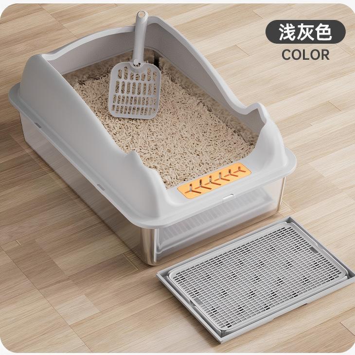 새로운 스테인레스 스틸 고양이 화장실은 더 크고 두꺼워졌으며 물 튀김 방지 상단 입구 고양이 쓰레기 상자, 반 개방형, 높이 조절 가능 및 청소가 용이합니다.