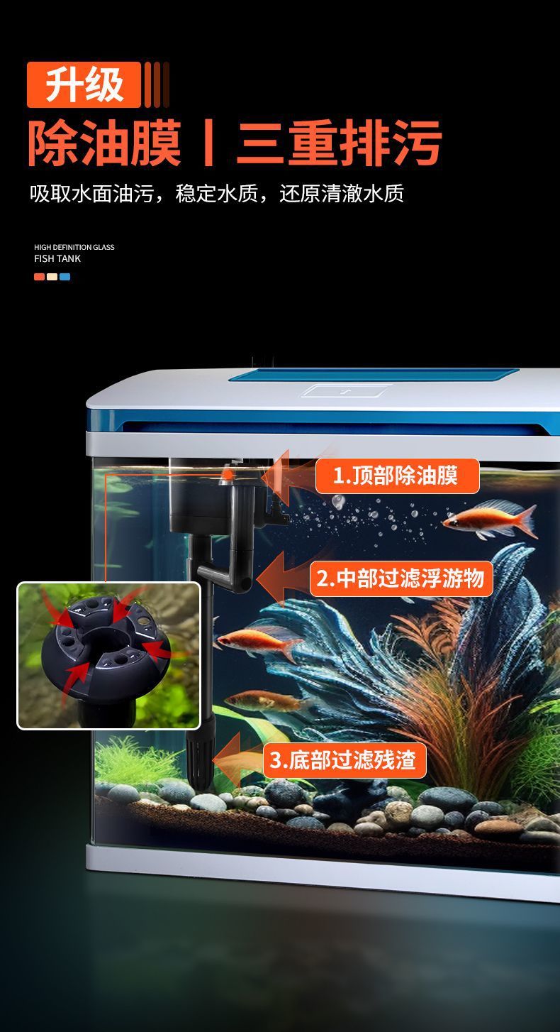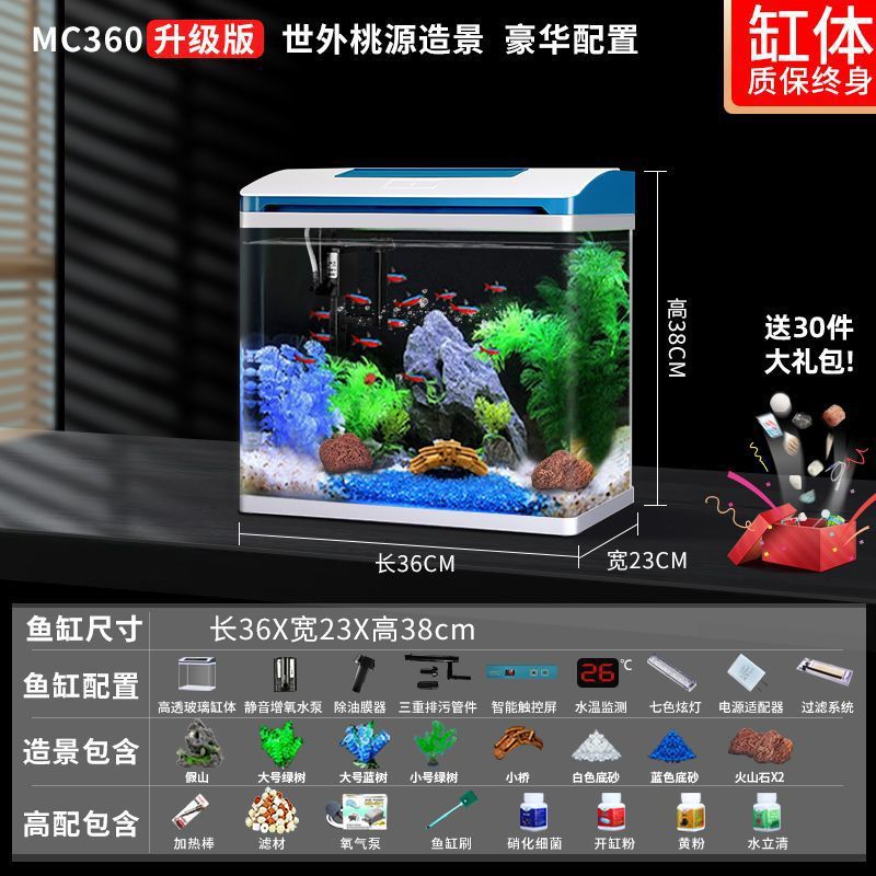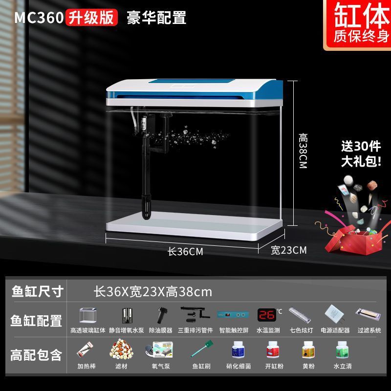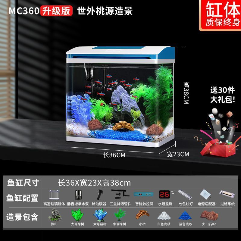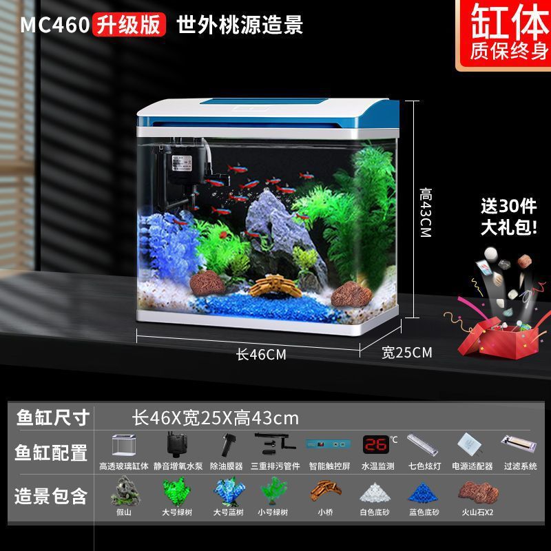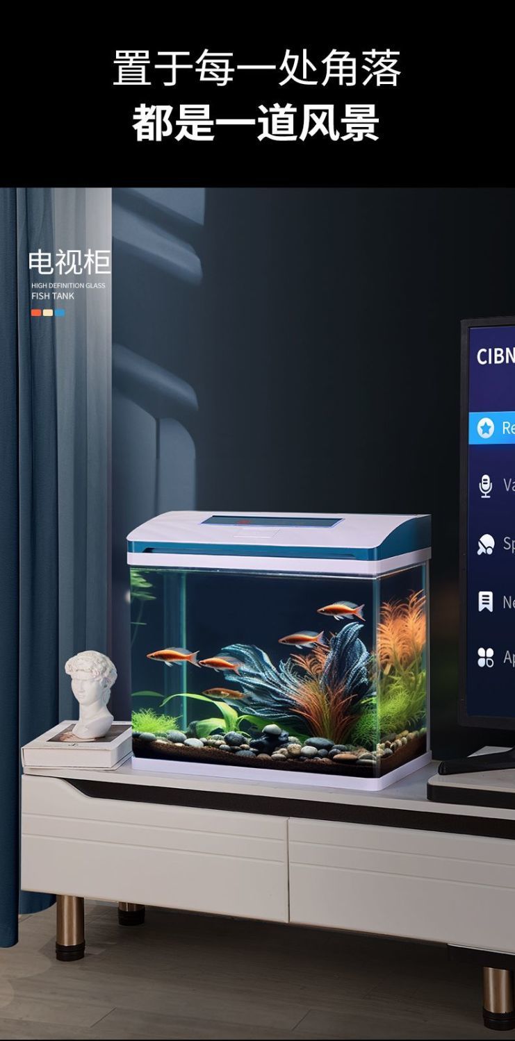 K1 새로운 금붕어 탱크 물 교체 없음 가정용 거실 중소형 수족관 데스크탑 조경 고화질 게으른 유리 물고기스토어 가기