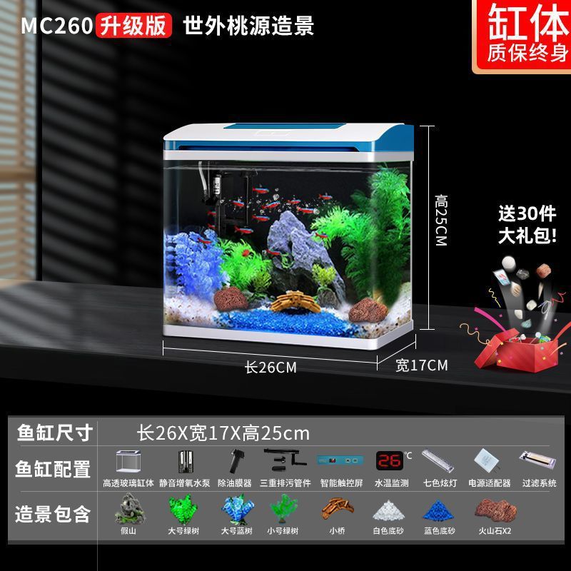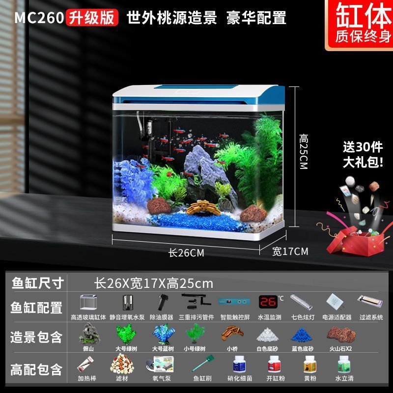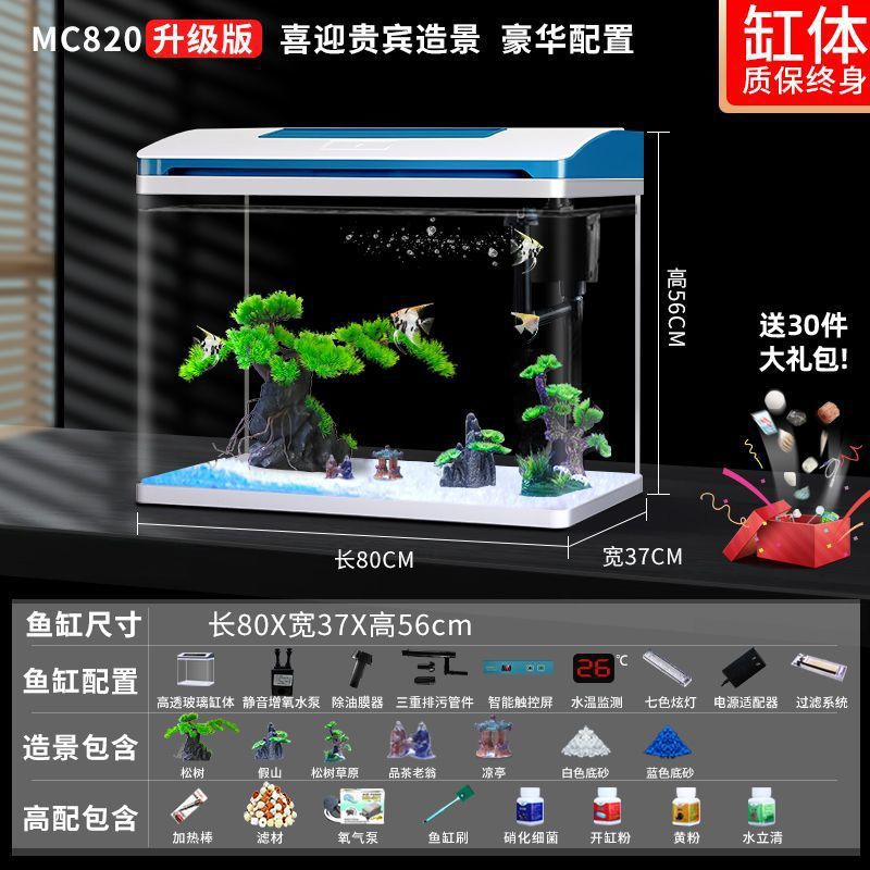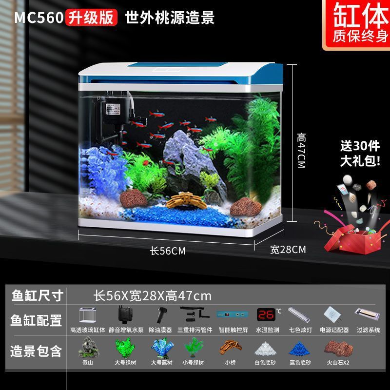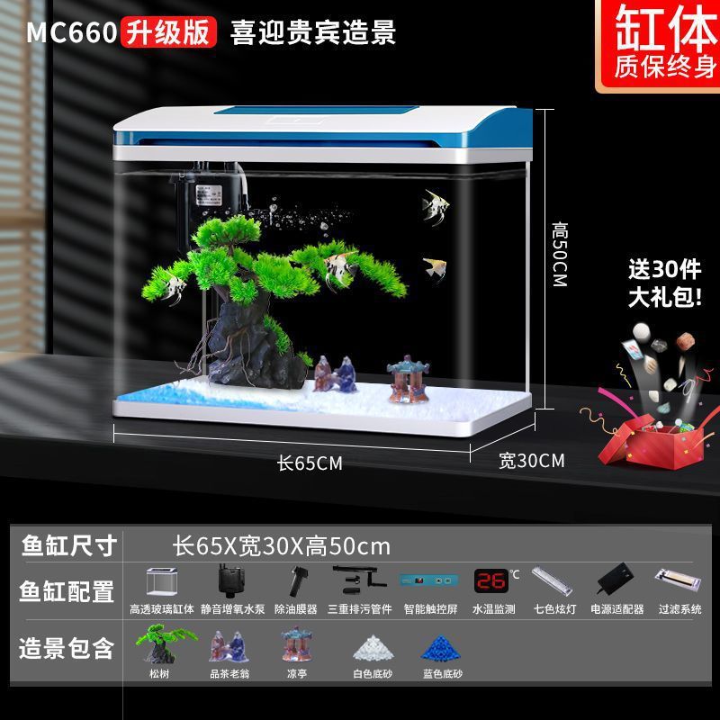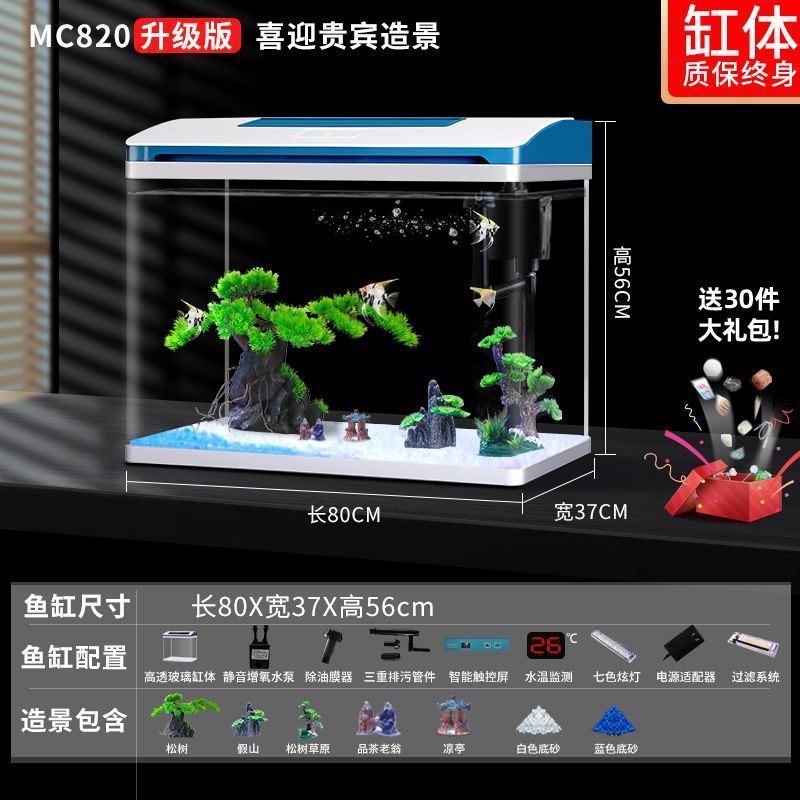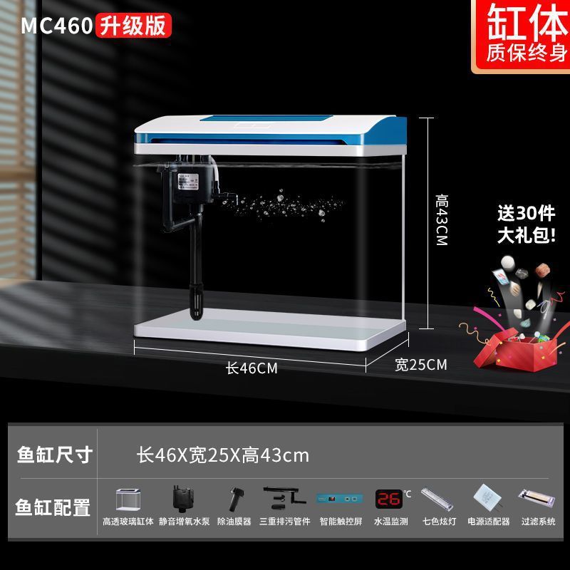 K1 새로운 금붕어 탱크 물 교체 없음 가정용 거실 중소형 수족관 데스크탑 조경 고화질 게으른 유리 물고기스토어 가기