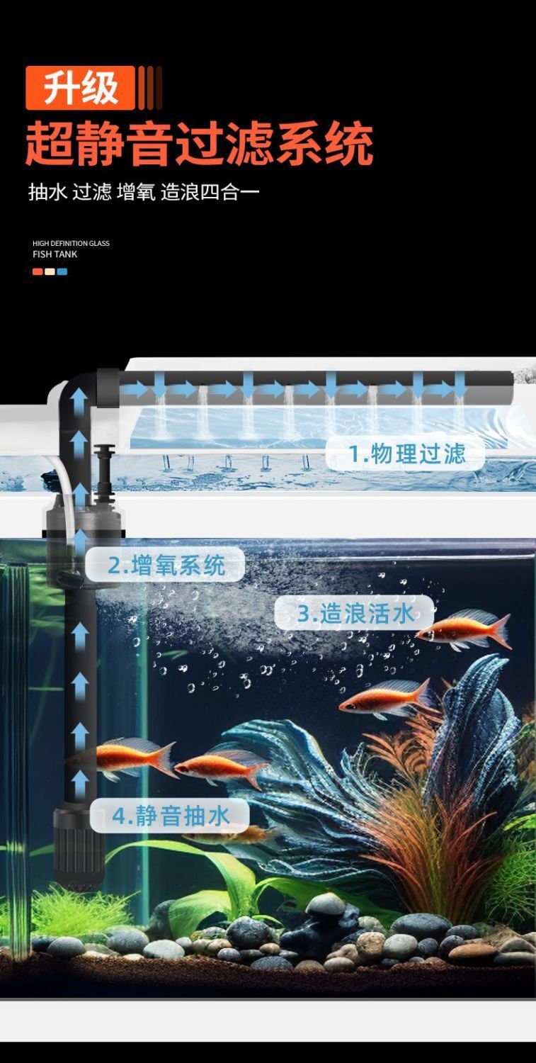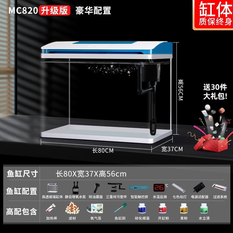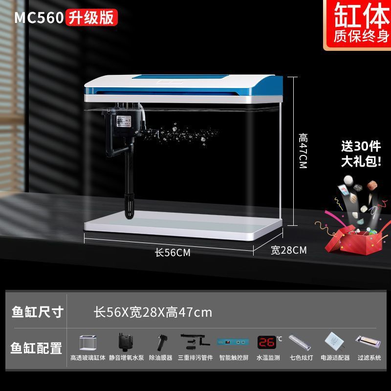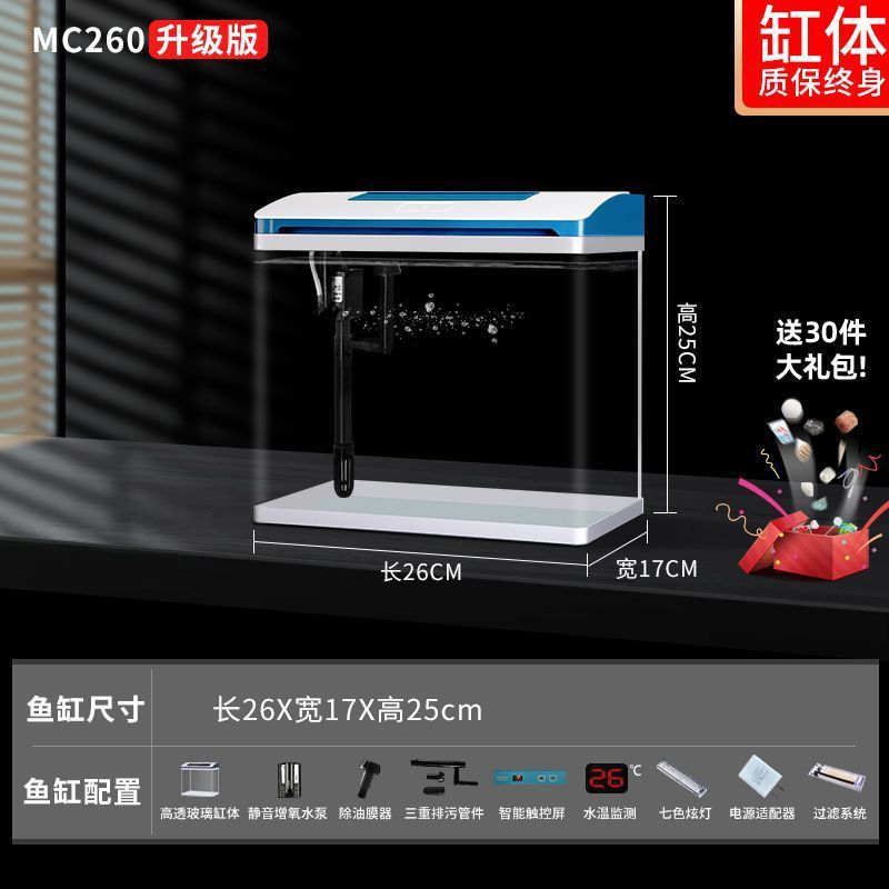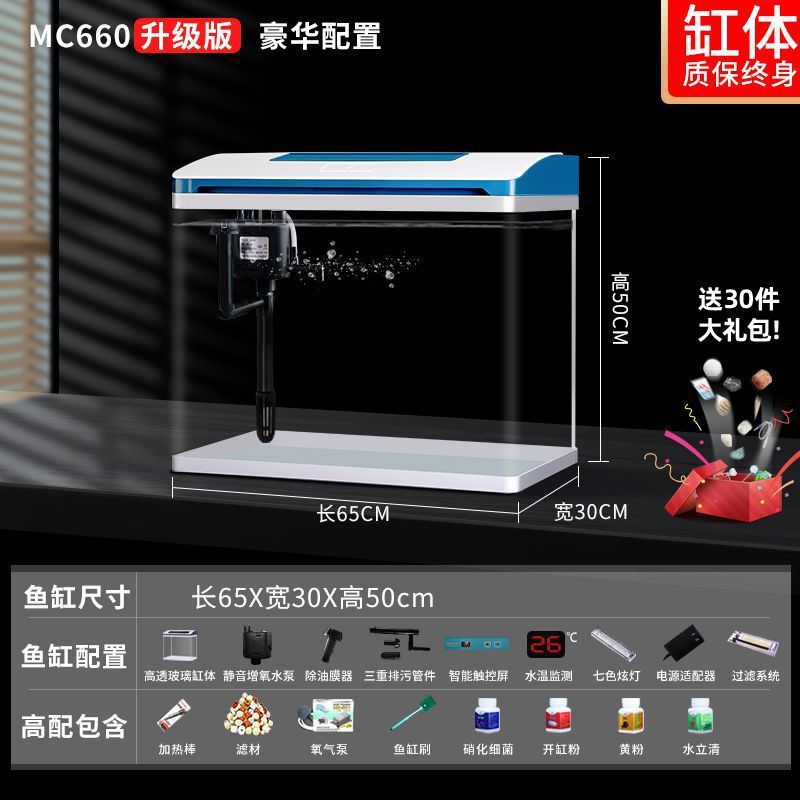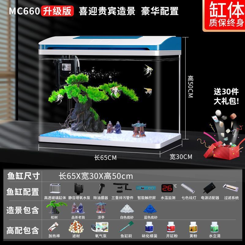 K1 새로운 금붕어 탱크 물 교체 없음 가정용 거실 중소형 수족관 데스크탑 조경 고화질 게으른 유리 물고기스토어 가기