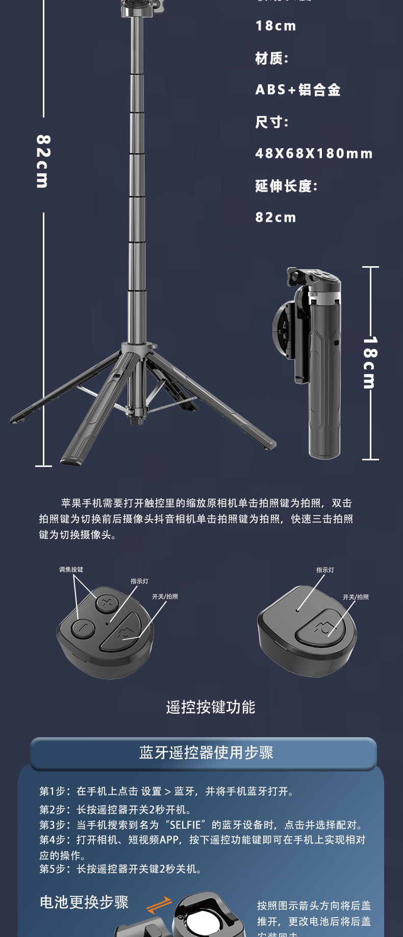 • S03-68cm 블랙 ★ 표준 버전 [통합 접이식 + 안정적인 3각 지지대] + 10m 블루투스 리모컨