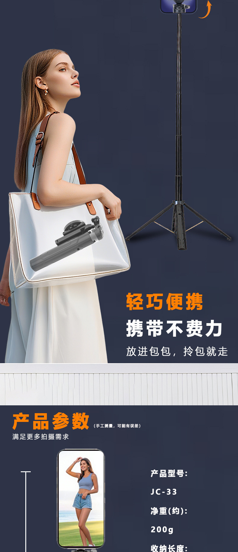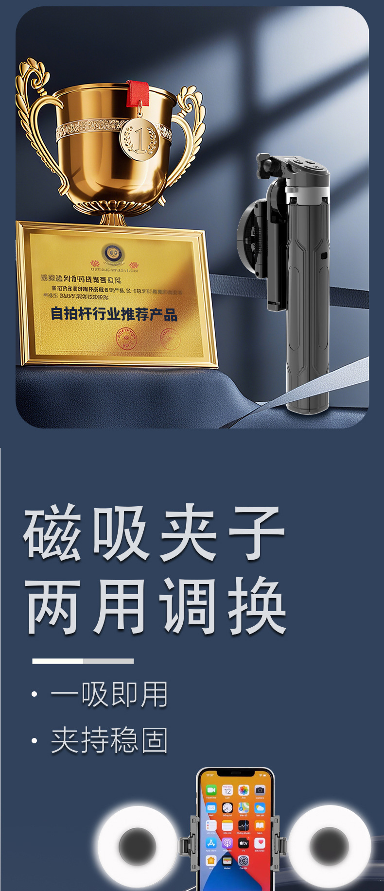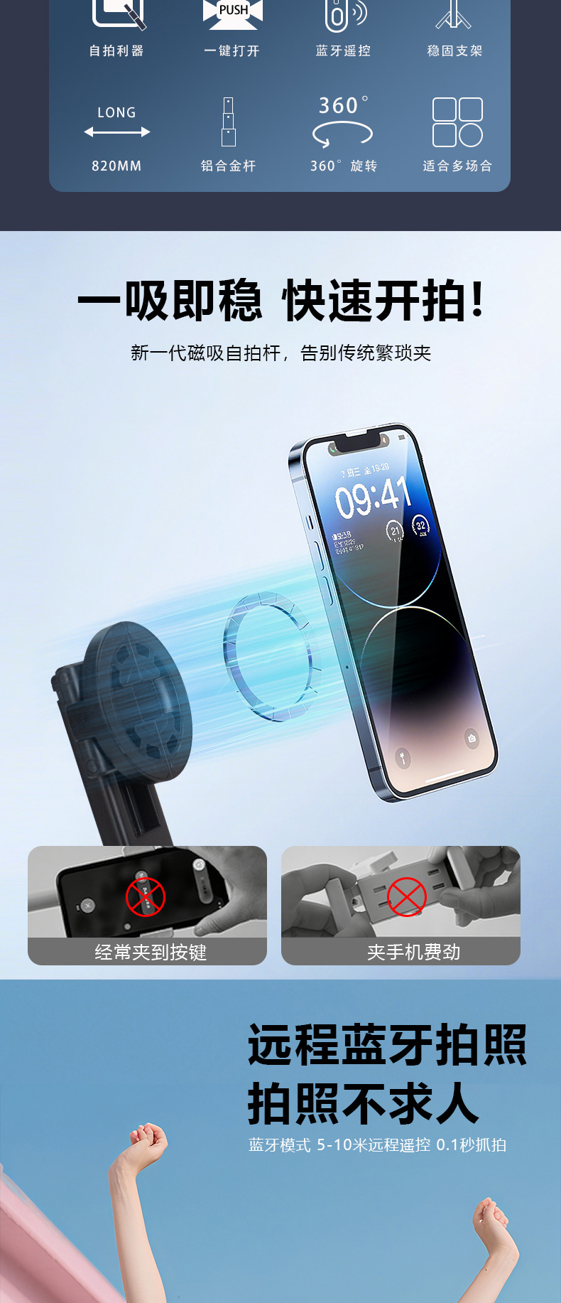 • JC32-82CM 마그네틱 클립 블루투스 셀카봉 [블랙]