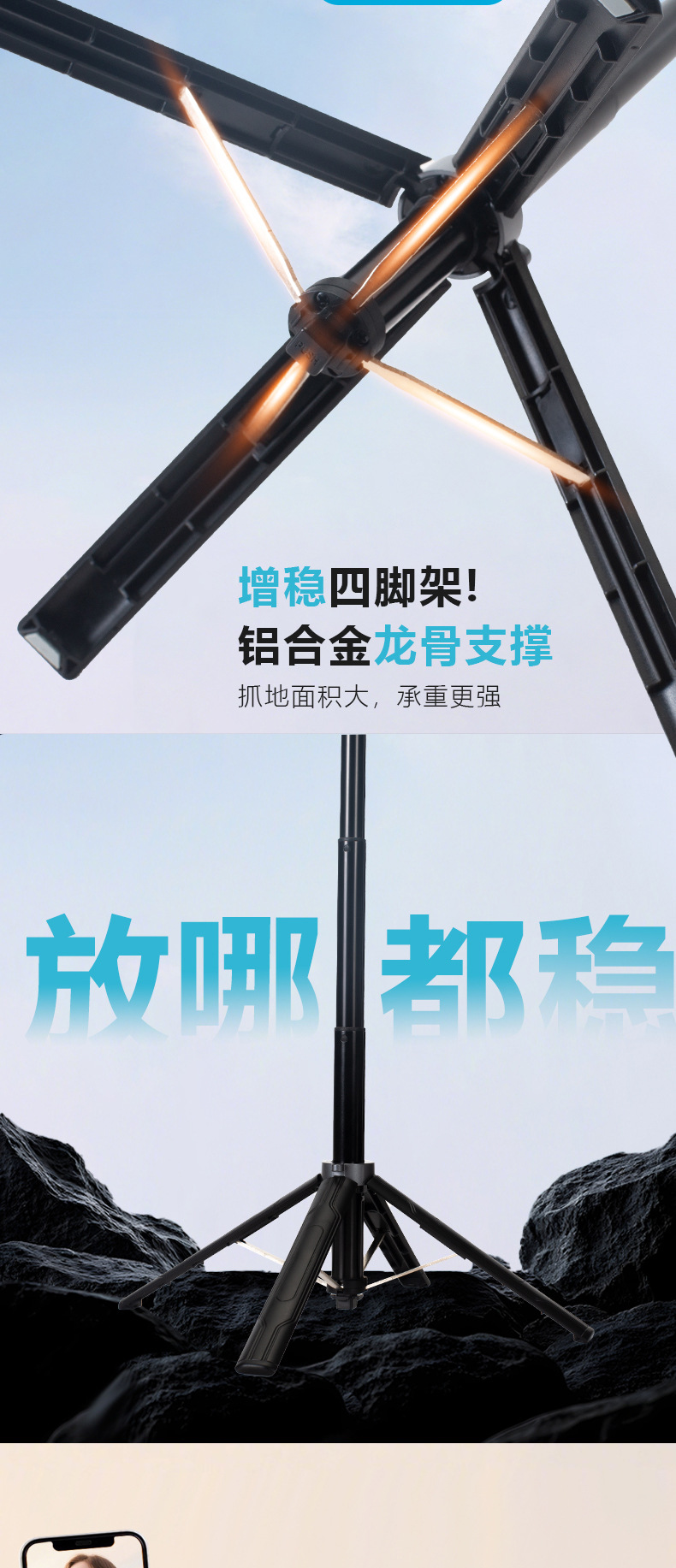 • 020-130cm 검정색 [라이트 없음 모델] 탄소강 ★ 삼각형 지지대 ★ 15m 블루투스 리모콘