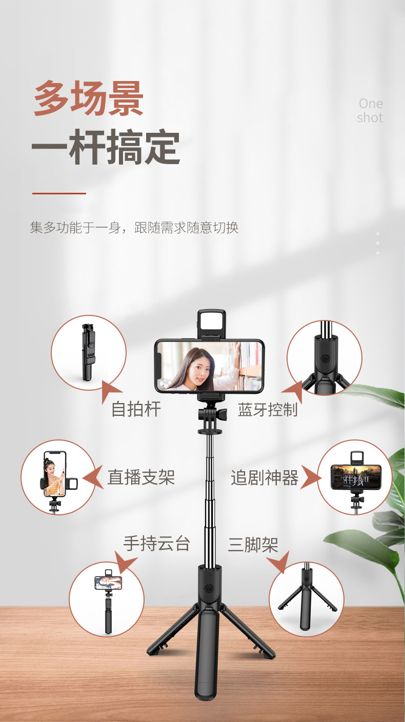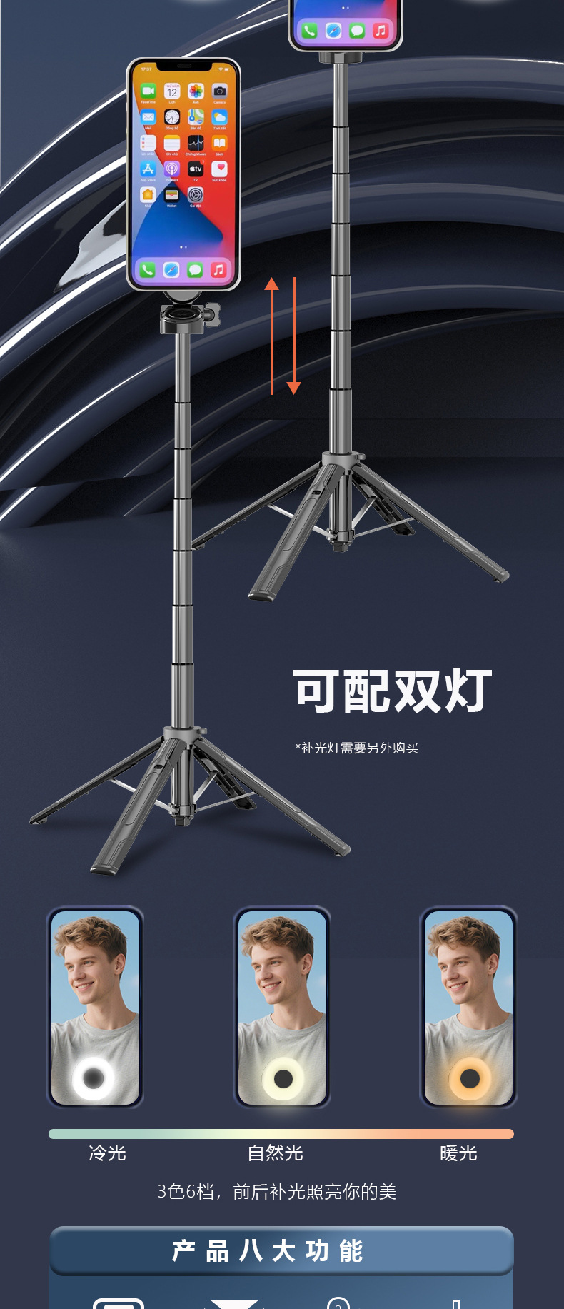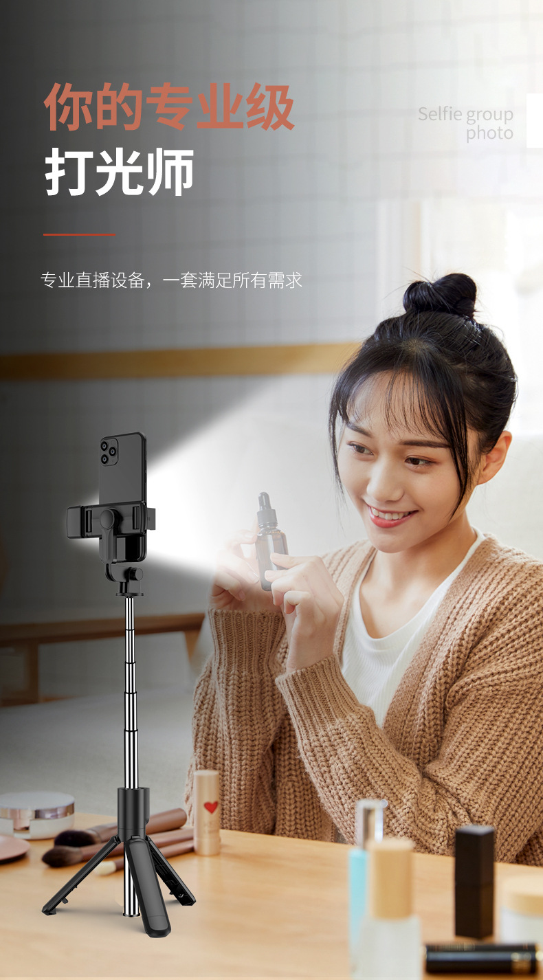 인기 있는 블루투스 셀카봉, 휴대폰 원격 제어, 고급 삼각대, 범용 다기능 라이브 방송 뷰티 필 라이트 브래킷