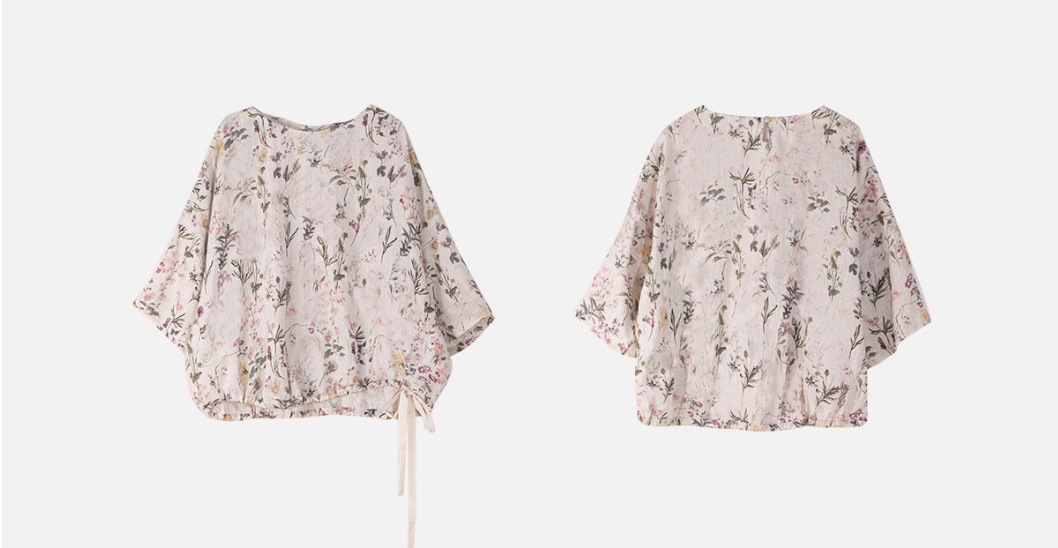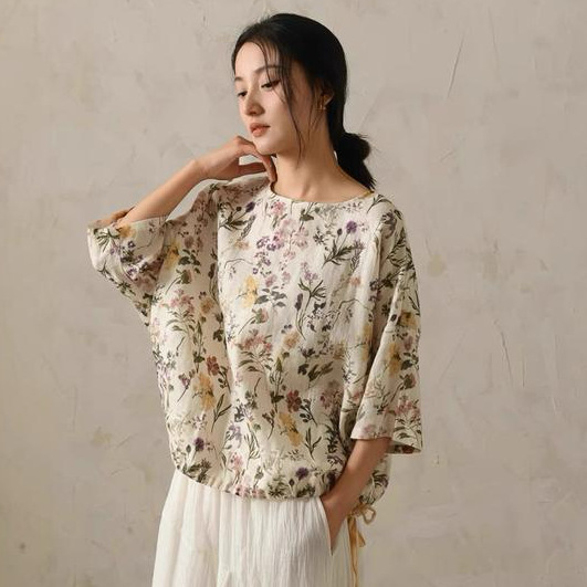 2025 새로운 도착 인쇄 리넨 셔츠 여성의 경량 예술적 디자인 느슨한 올매치 탑