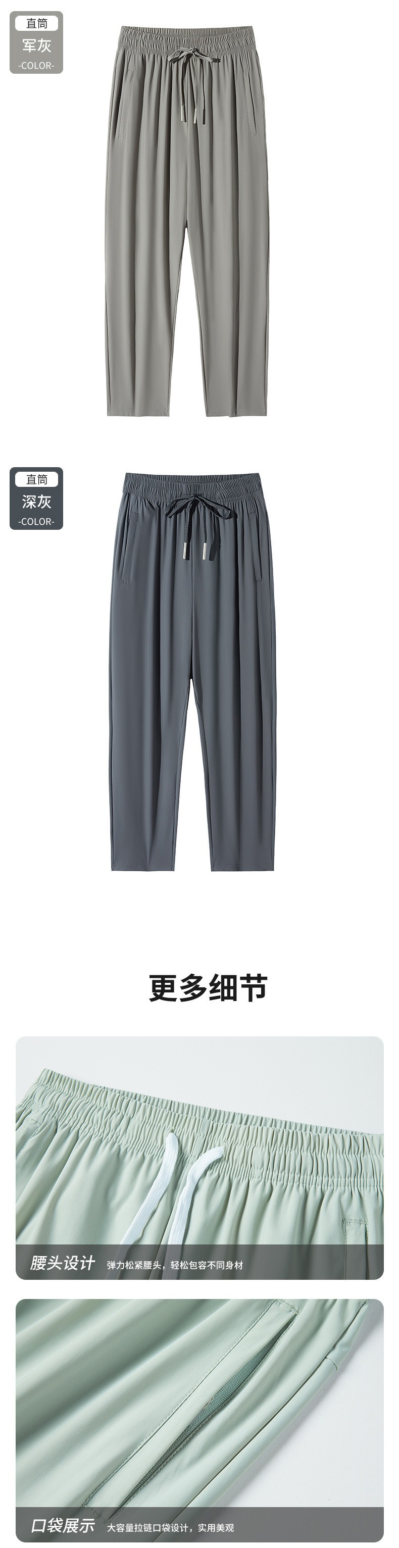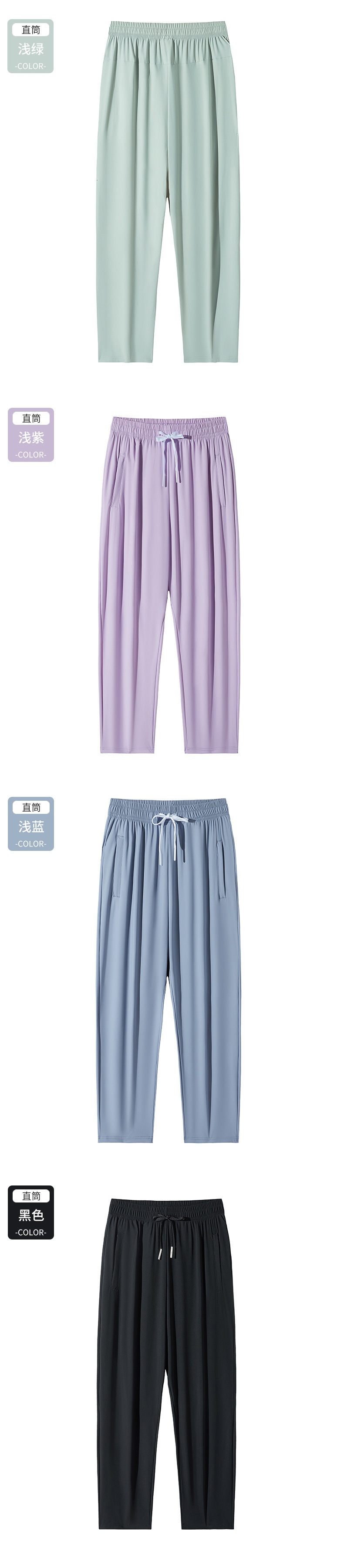 여름 스포츠 캐주얼 아이스 실크 바지 여자 커플 플러스 사이즈 빠른 건조 스트레치 스트레이트 튜브 네일 업 바지 통기성 여름 원피스스토어 가기