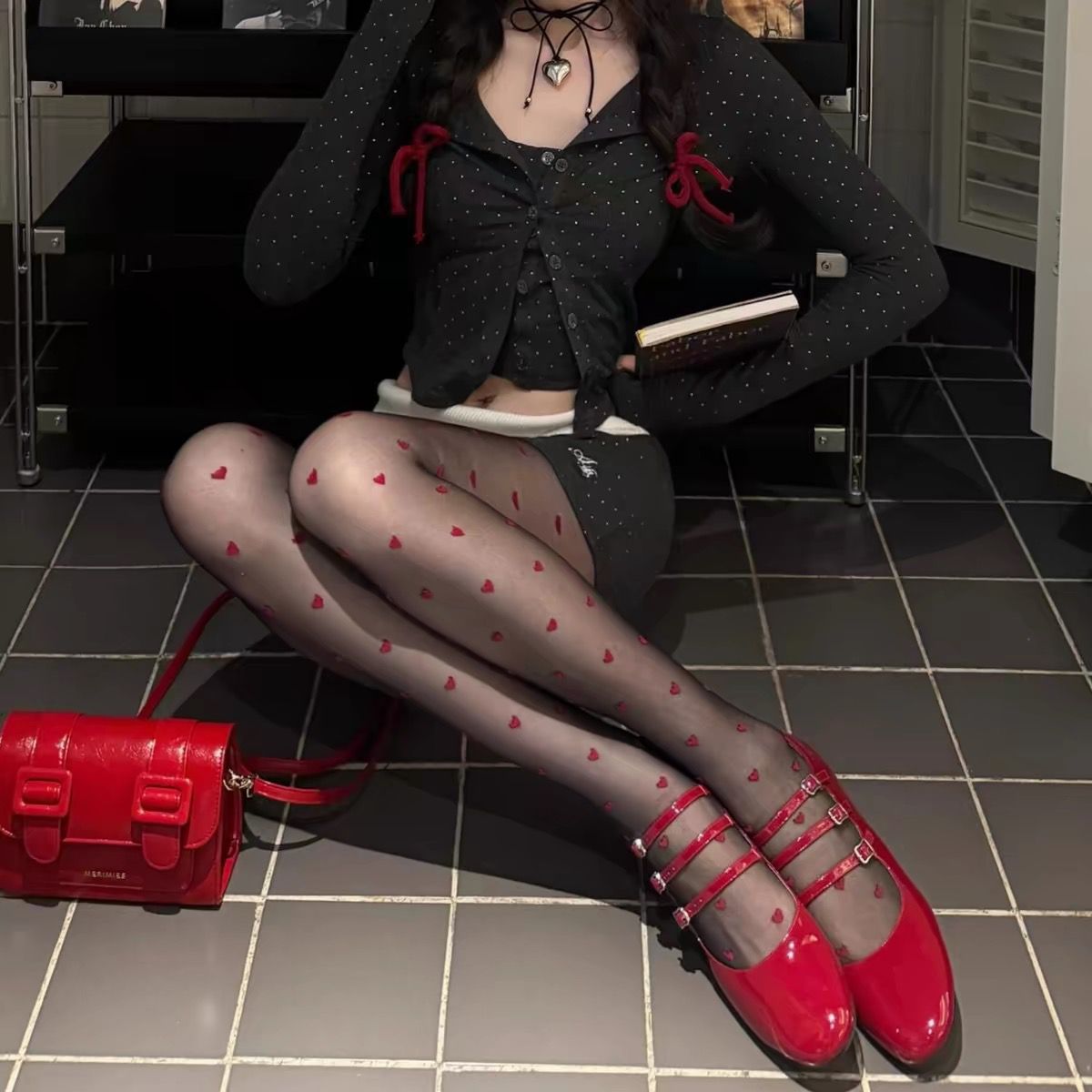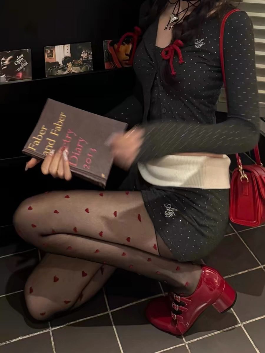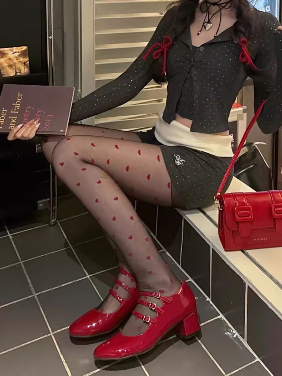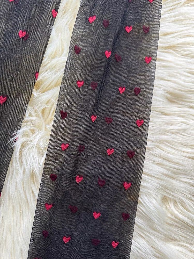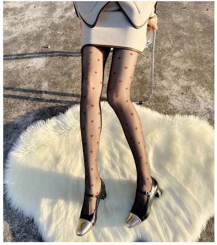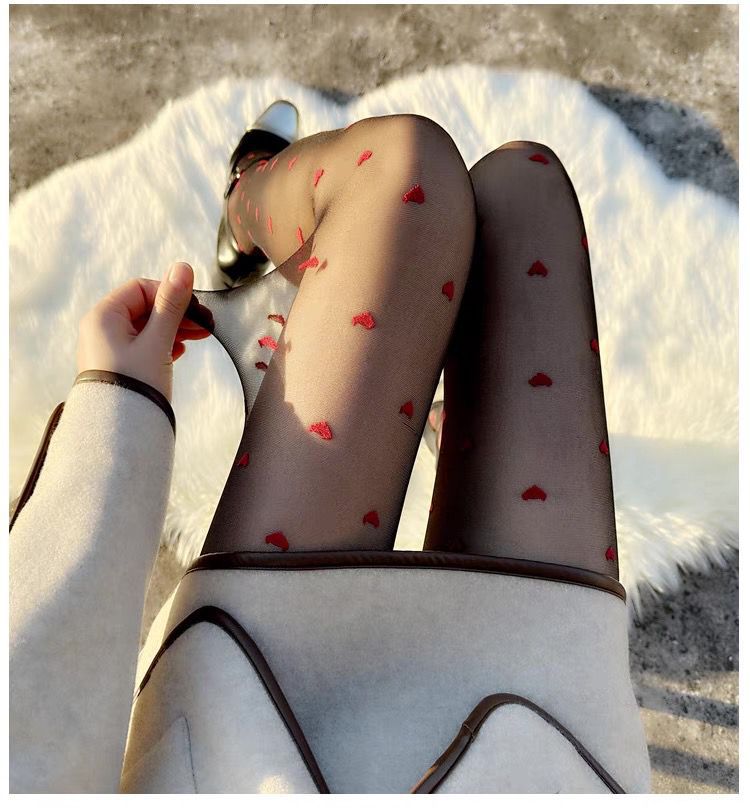 Pure Desire American Hot Girl 레드 러브 스타킹 아름다운 다리 슬리밍 섹시한 검은 실크 하트 모양의 여성을위한 초박형 투명 팬티 스타킹스토어 가기