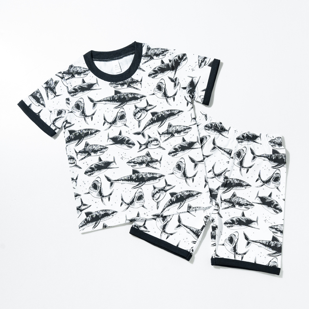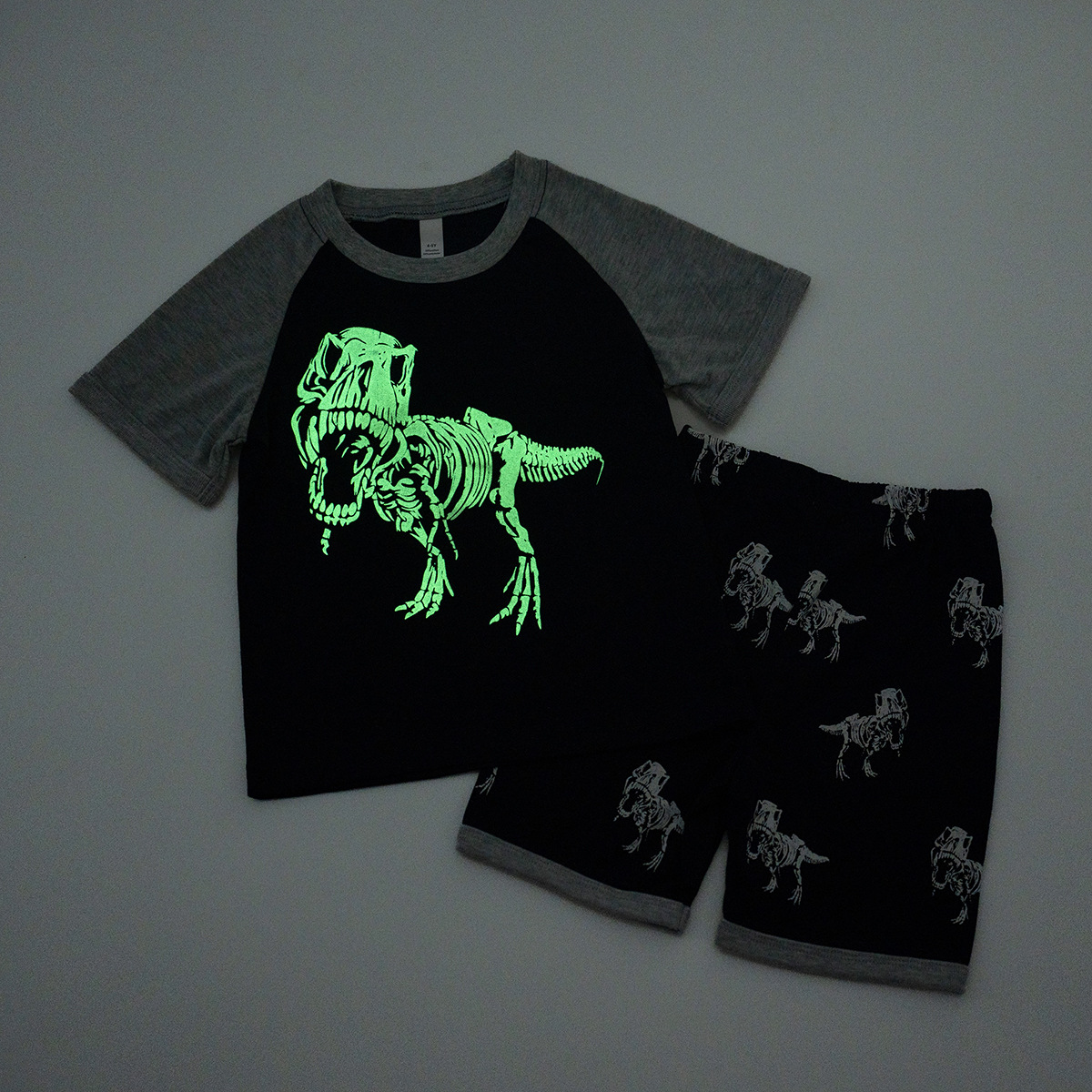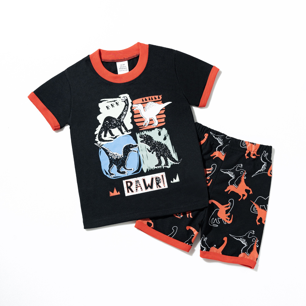 어린이 여름 반팔 소년 만화 면화 어린이 가정 의류 새로운 공룡 캐주얼 아동 의류 잠옷 도매 공룡스토어 가기