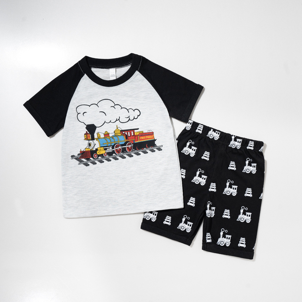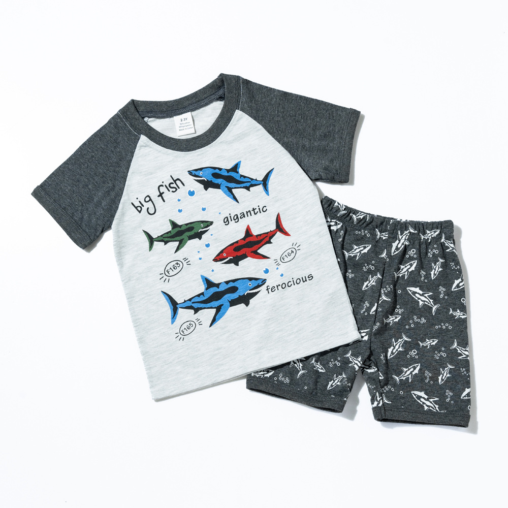 어린이 여름 반팔 소년 만화 면화 어린이 가정 의류 새로운 공룡 캐주얼 아동 의류 잠옷 도매 공룡