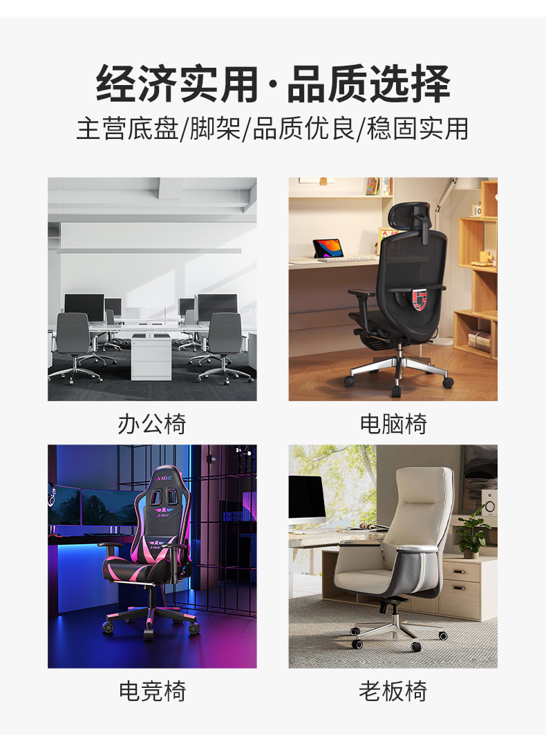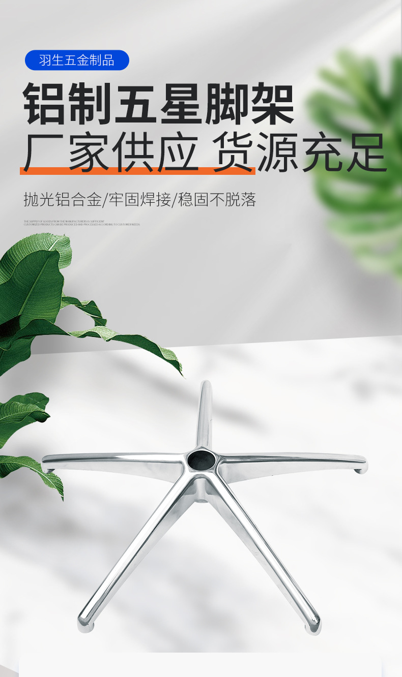 알루미늄 합금 5각형 다리 사무용 의자 베이스, 회전의자 부품, 광택 처리된 5각형 다리 프레임, 컴퓨터 의자, 모던하고 심플한 디자인