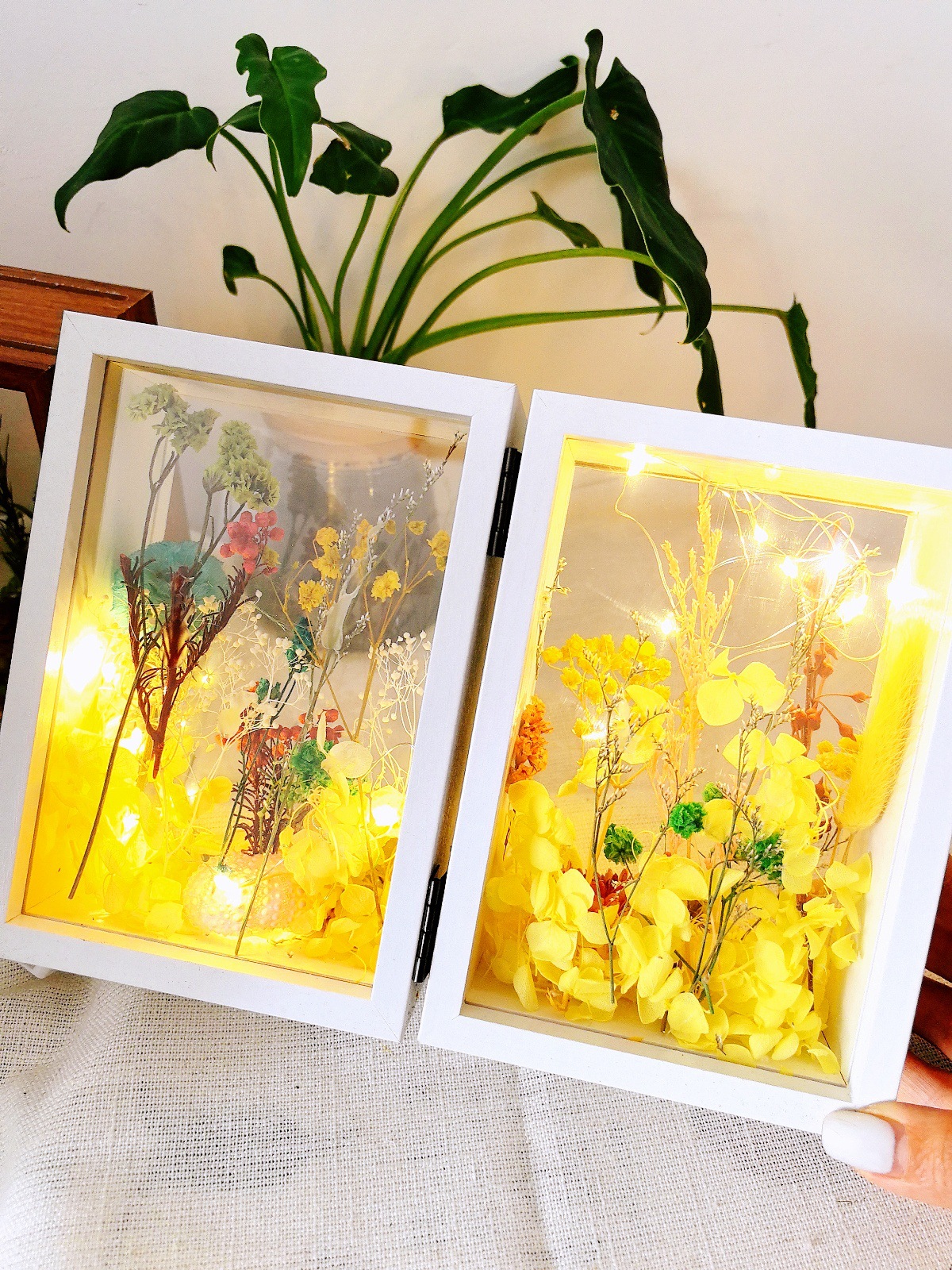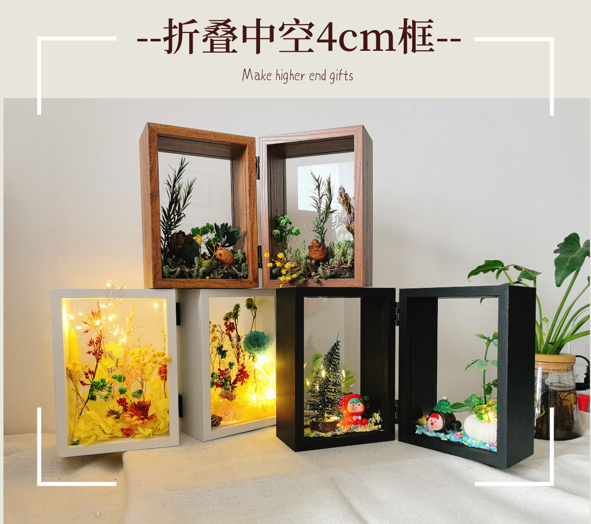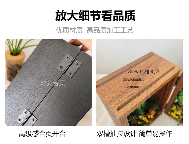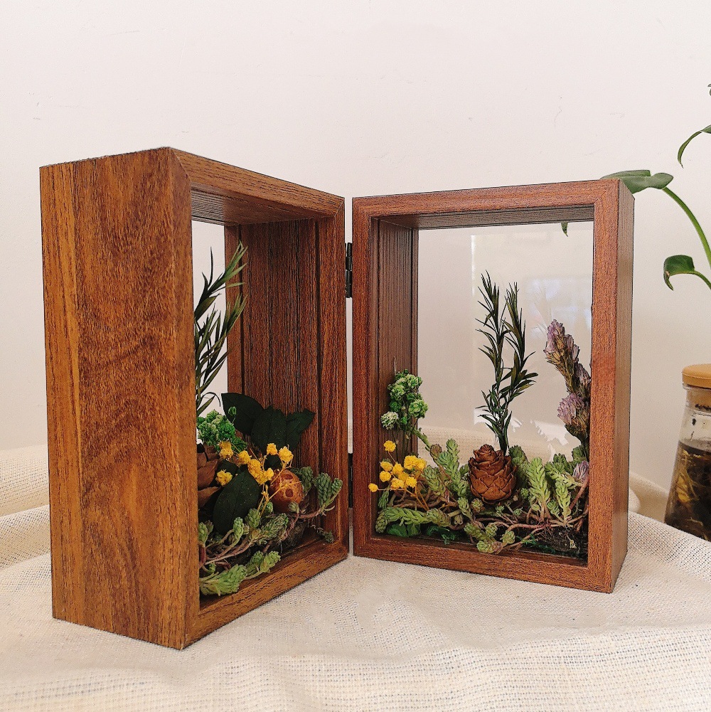 양면 투명 아크릴 포토 프레임 접히는 중공 3 차원 디스플레이 테이블 침실 장식품 말린 꽃 고급 수제 느낌