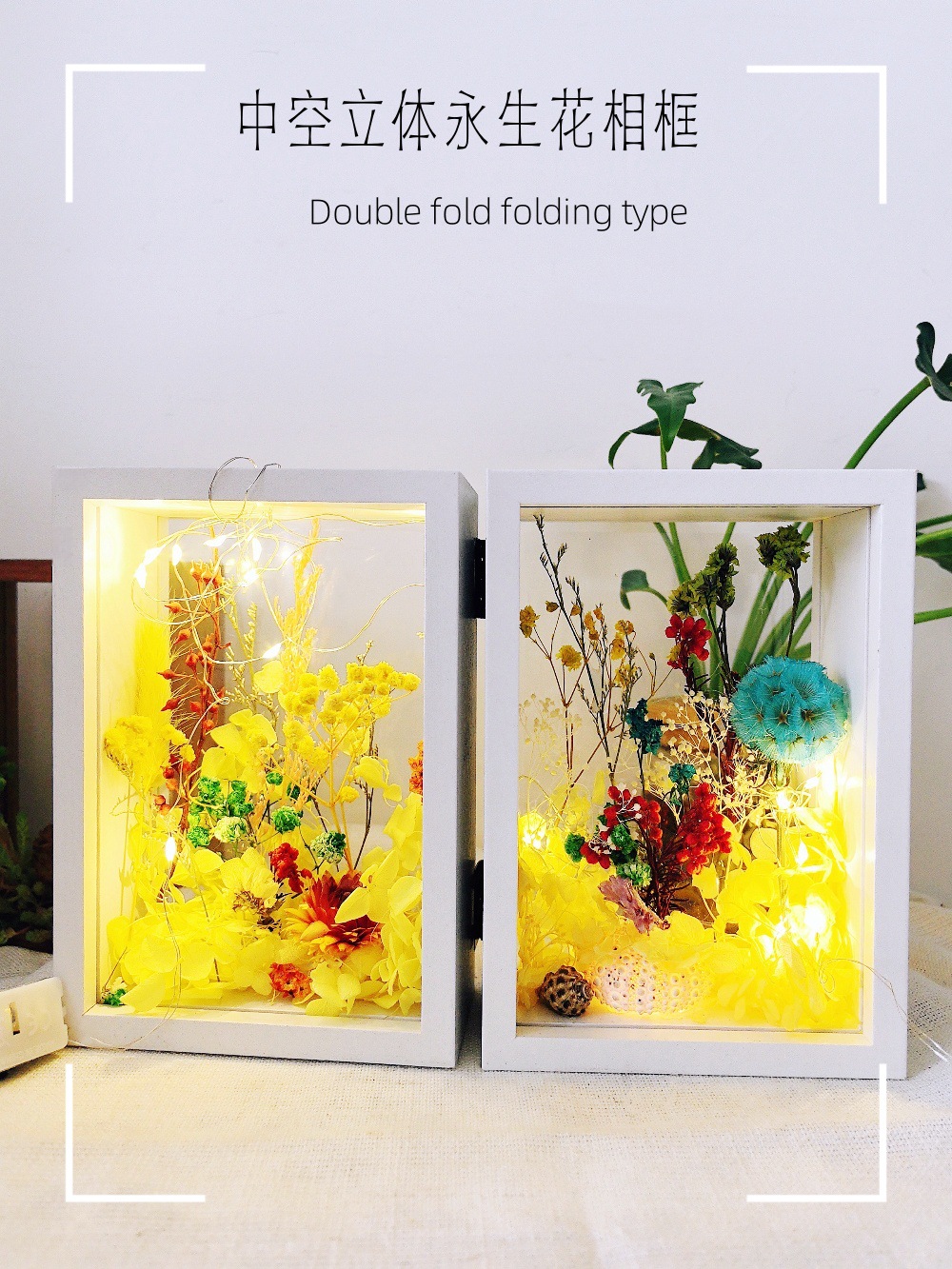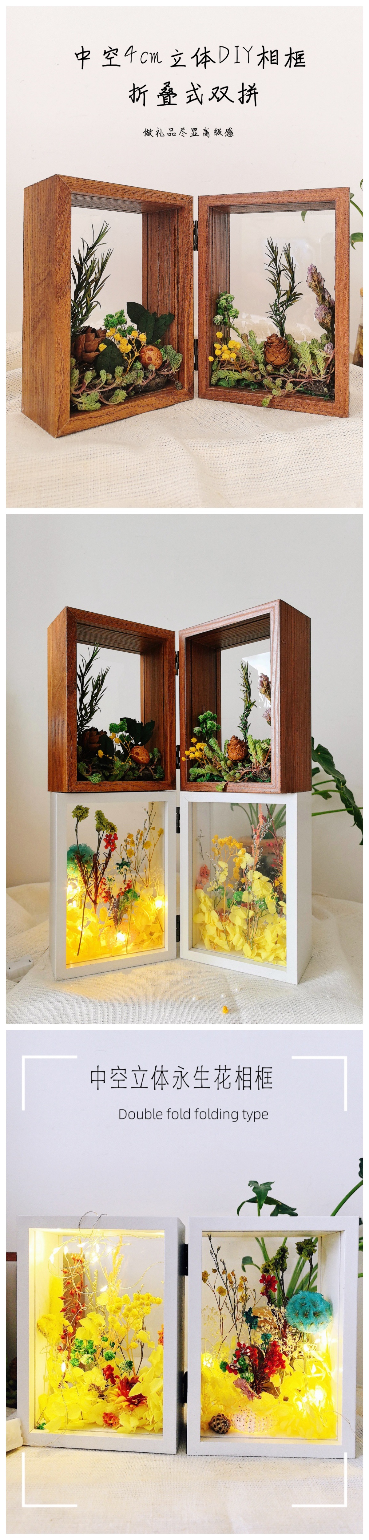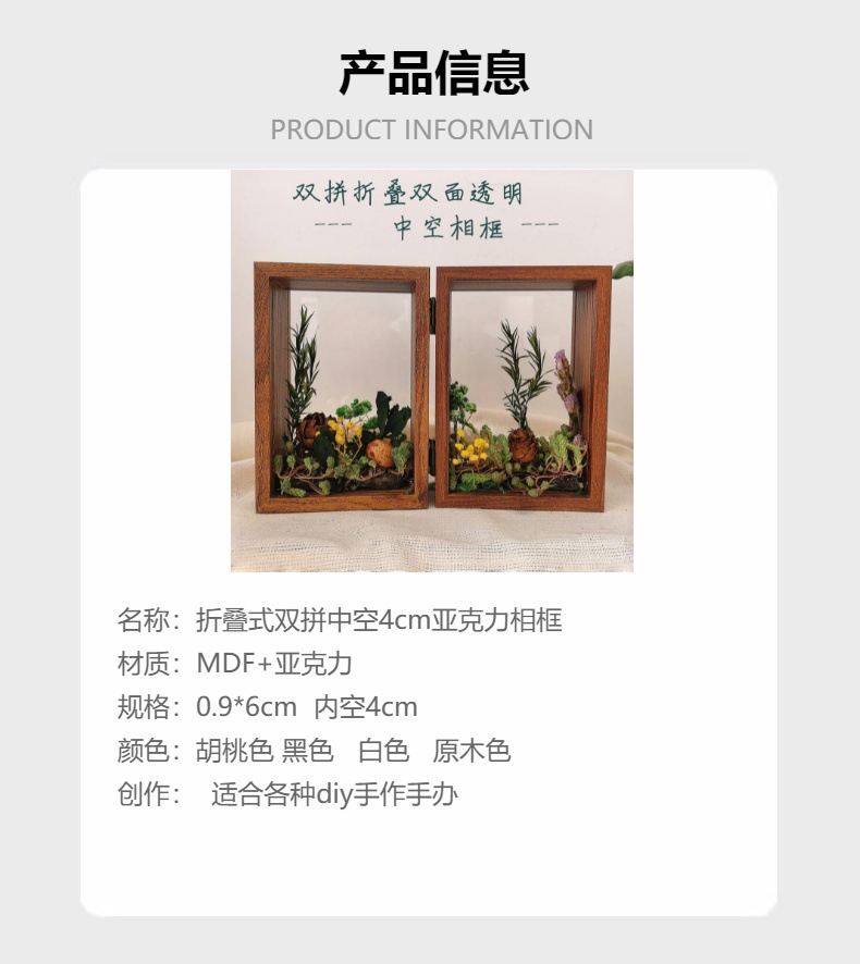 양면 투명 아크릴 포토 프레임 접히는 중공 3 차원 디스플레이 테이블 침실 장식품 말린 꽃 고급 수제 느낌스토어 가기