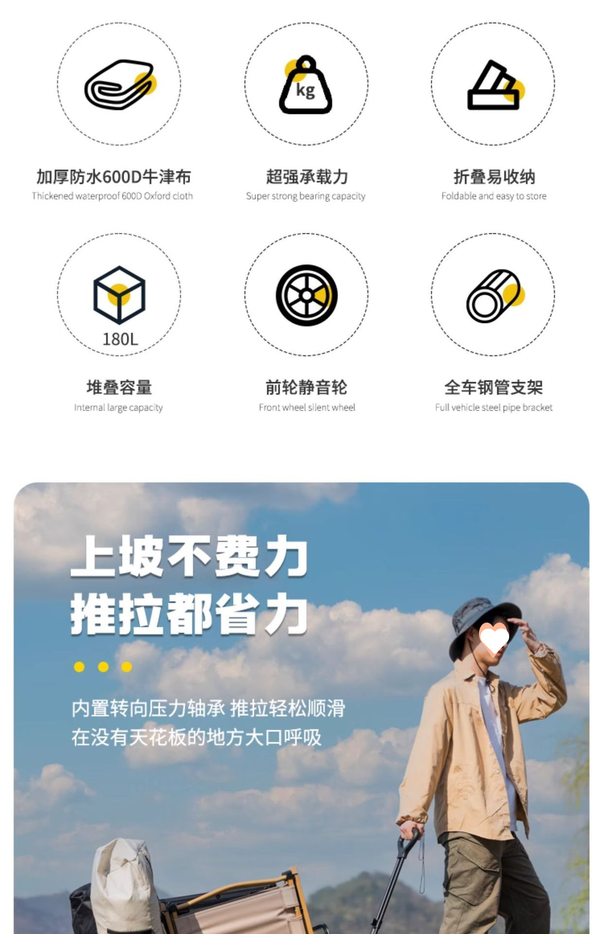 야외 캠핑 접이식 트롤리 캠핑 작은 트레일러 캠프 스테이션 왜건 스톨 피크닉 휴대용 소형 트롤리
