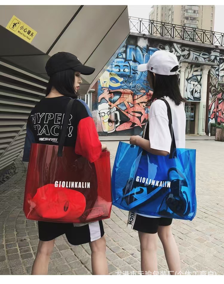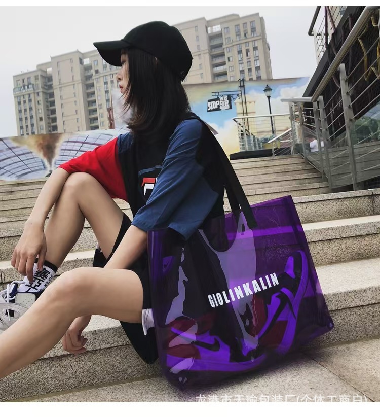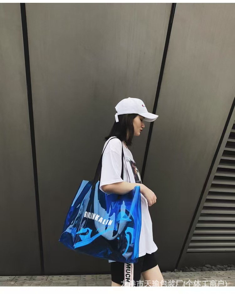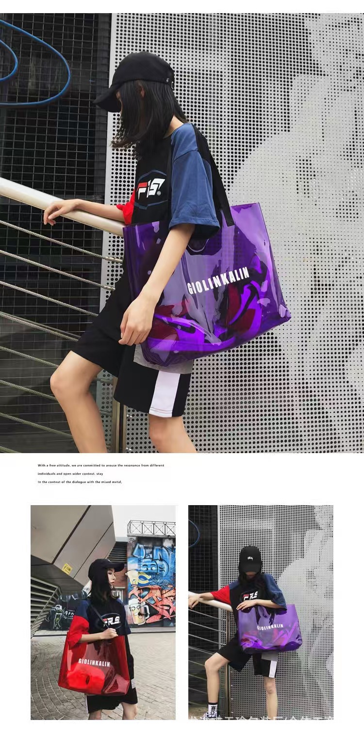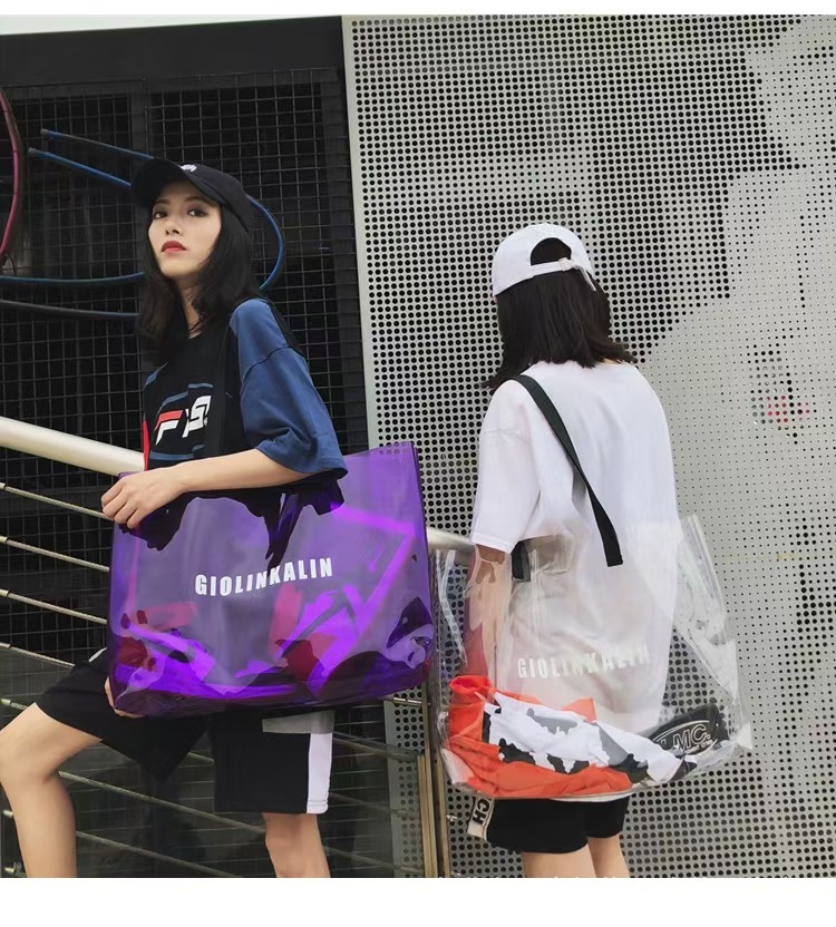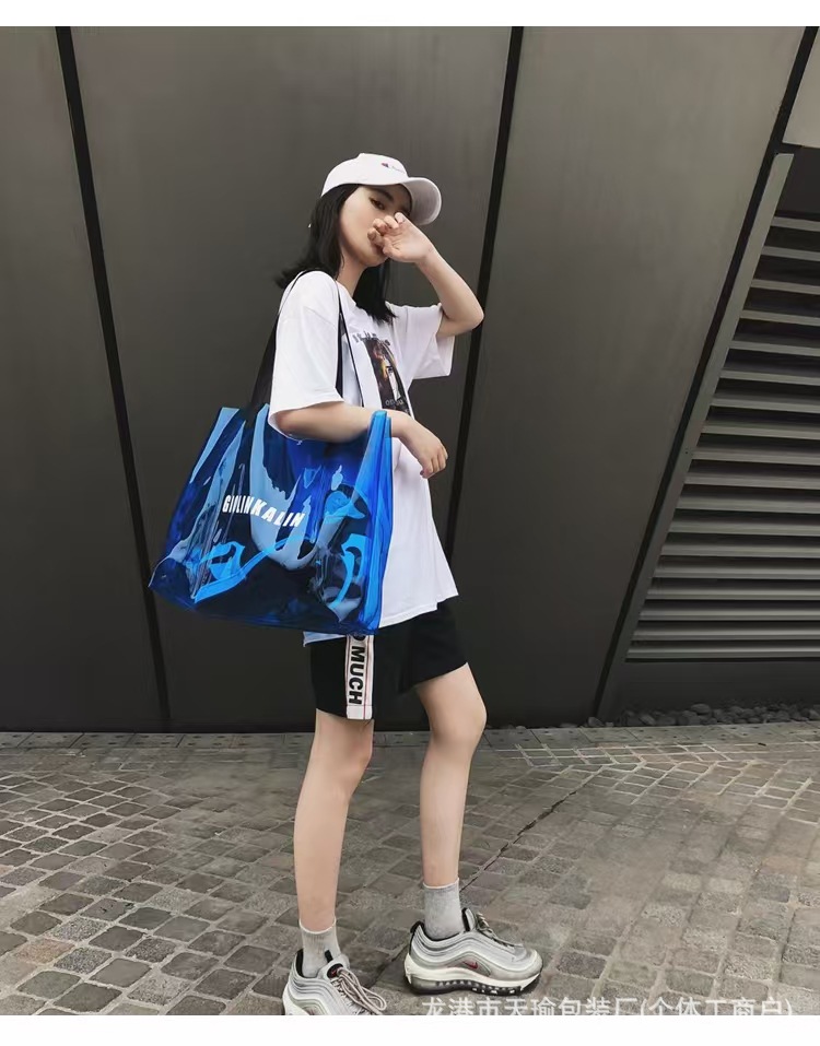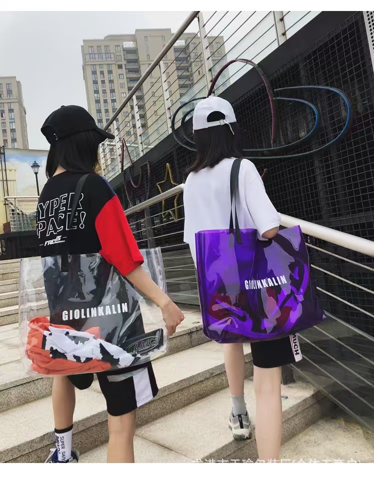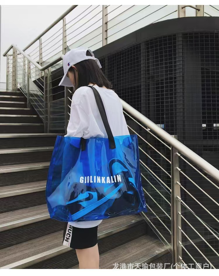 유행 투명 레이저 가방 여성의 새로운 여름 대용량 토트 백 캐주얼 비치 핸드백 쇼핑백