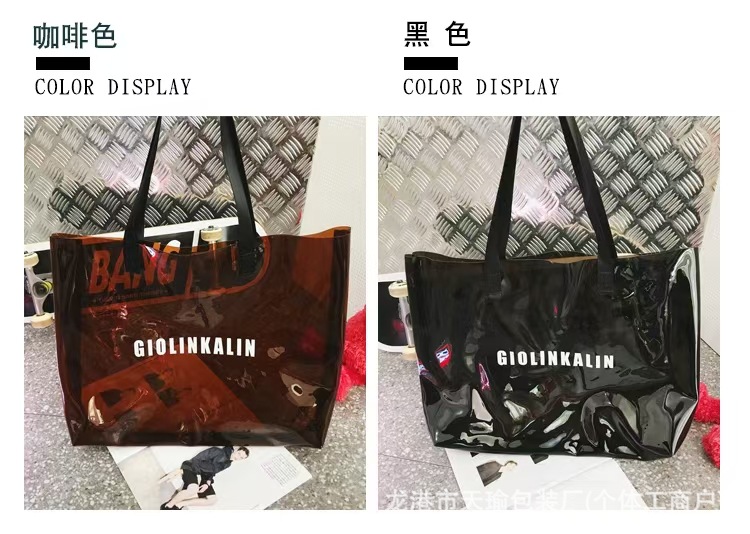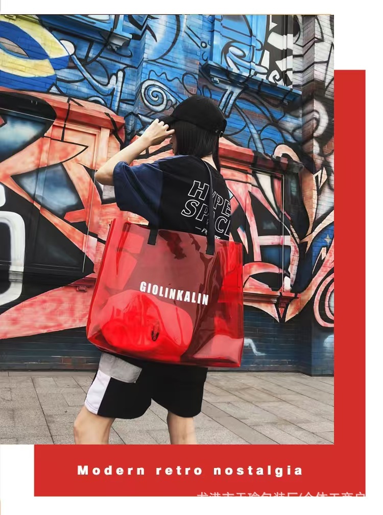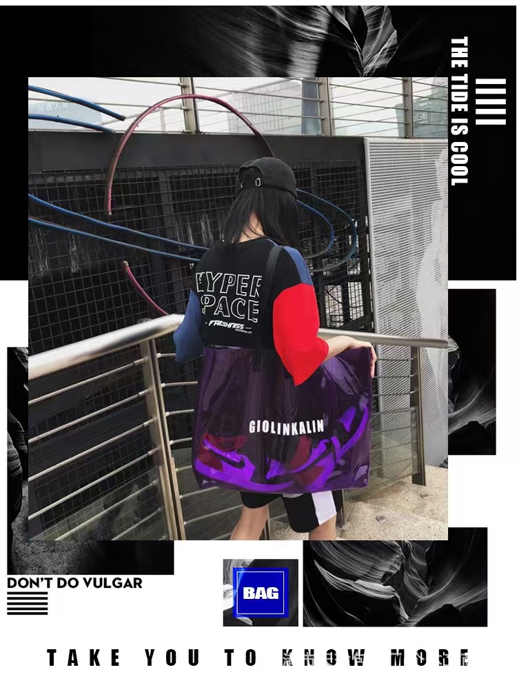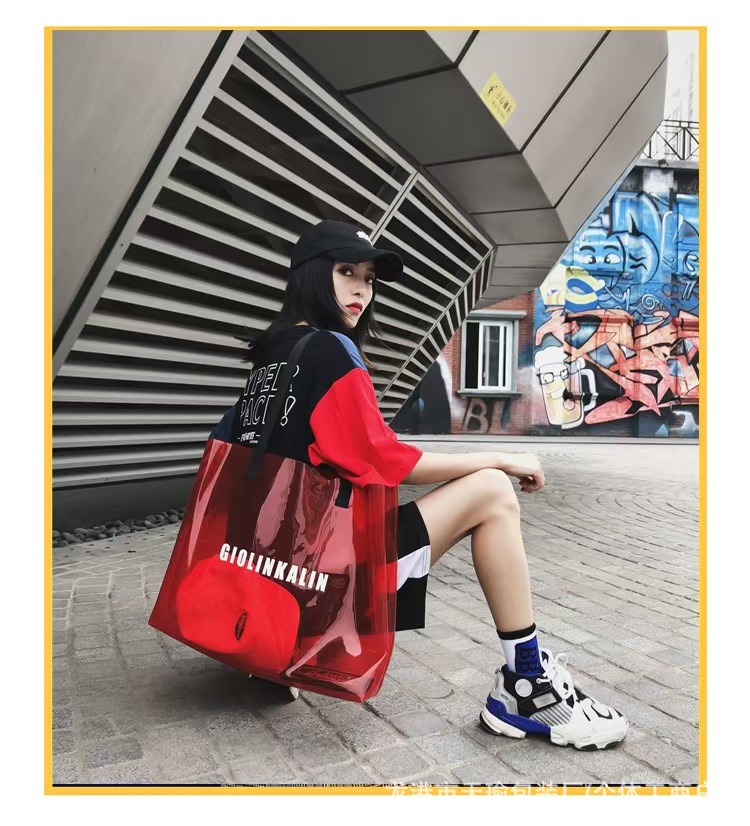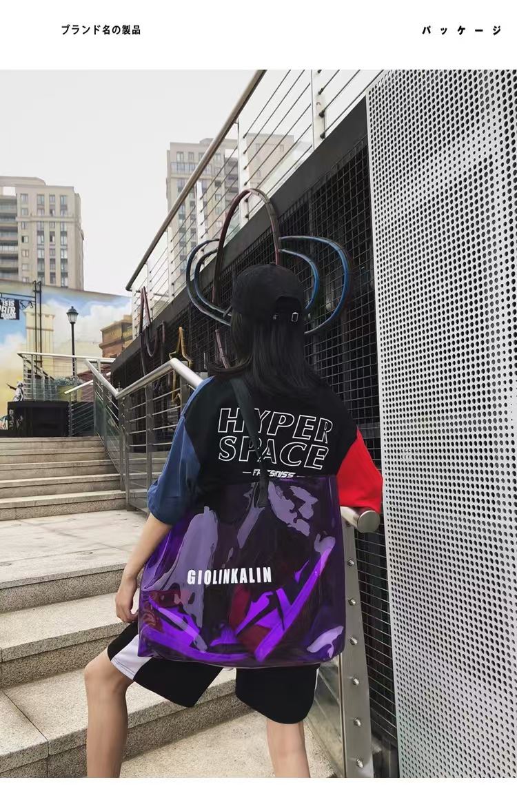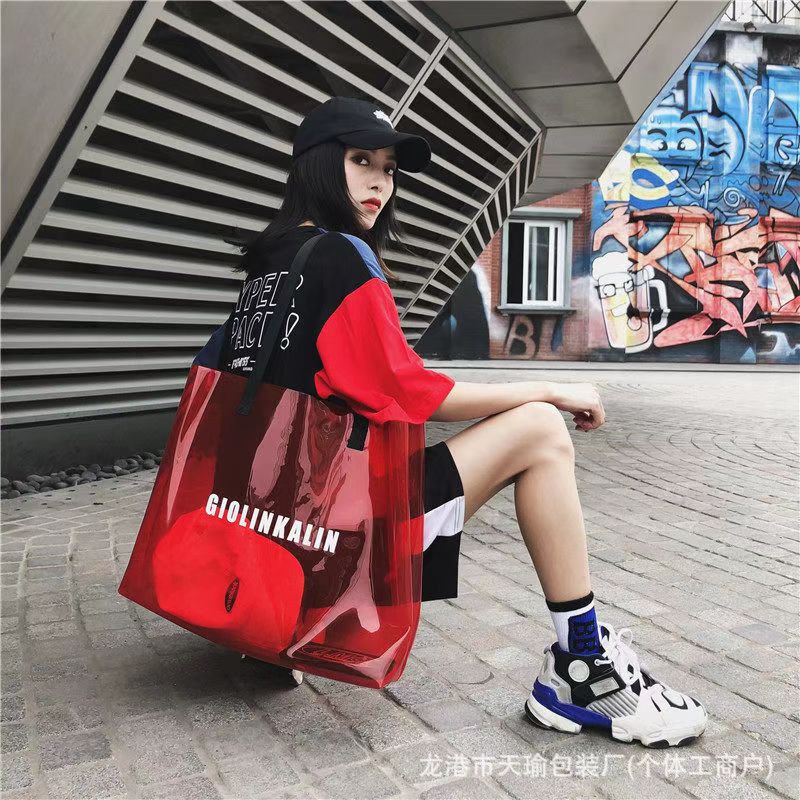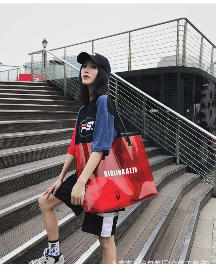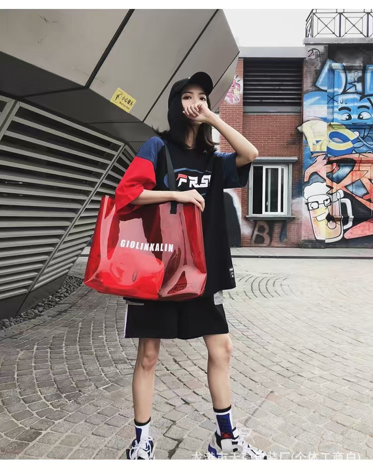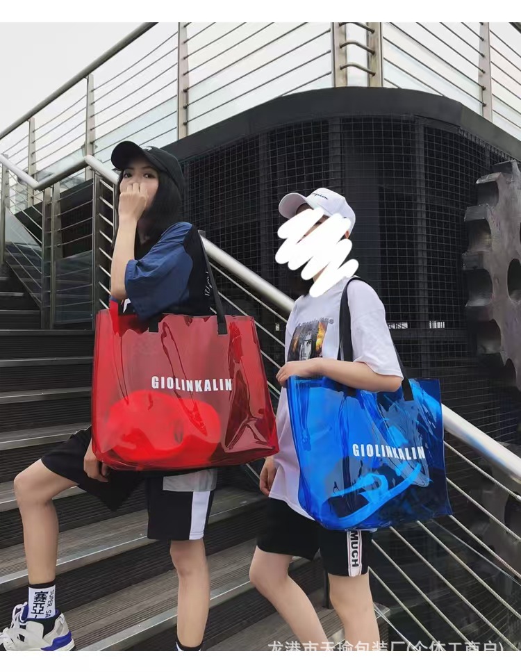 유행 투명 레이저 가방 여성의 새로운 여름 대용량 토트 백 캐주얼 비치 핸드백 쇼핑백