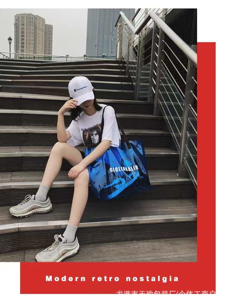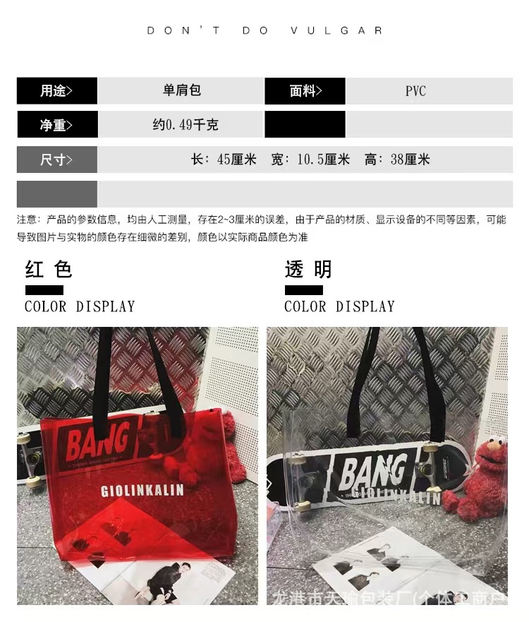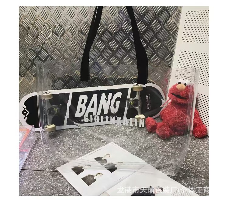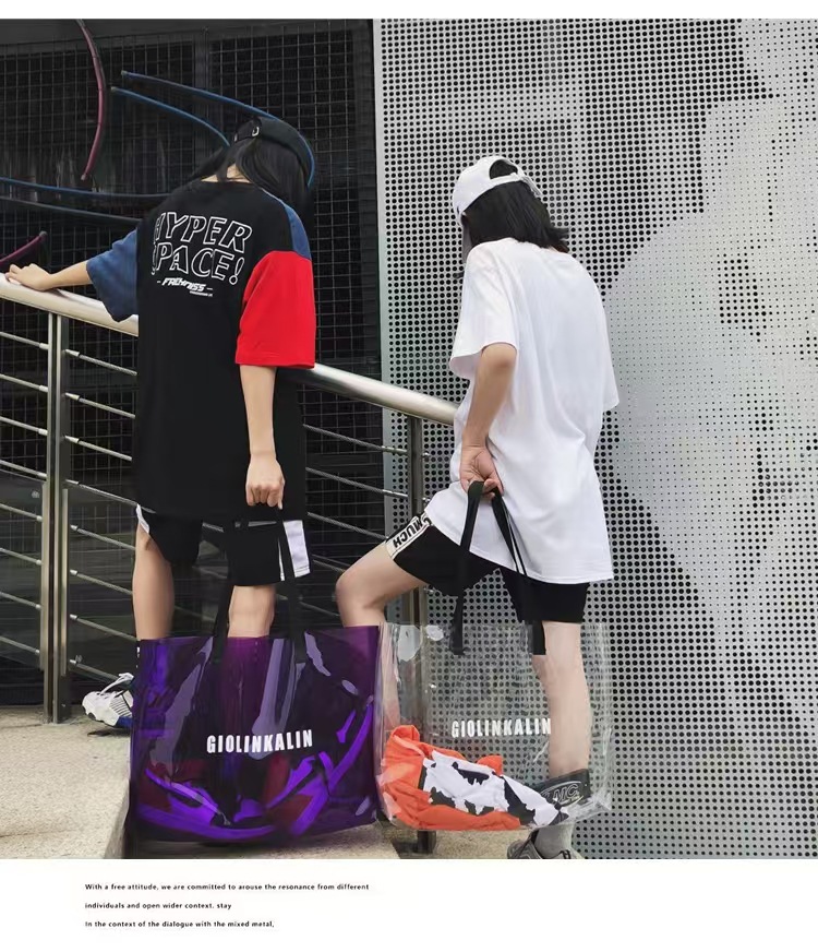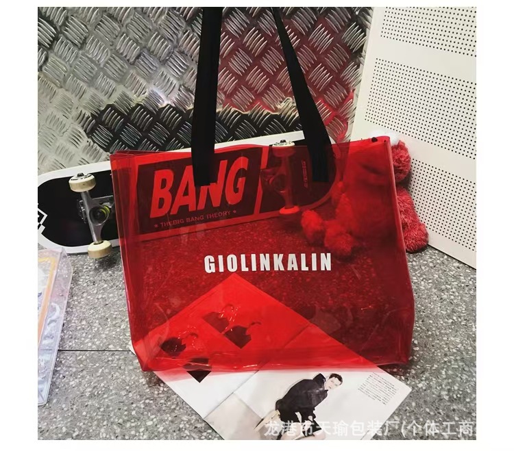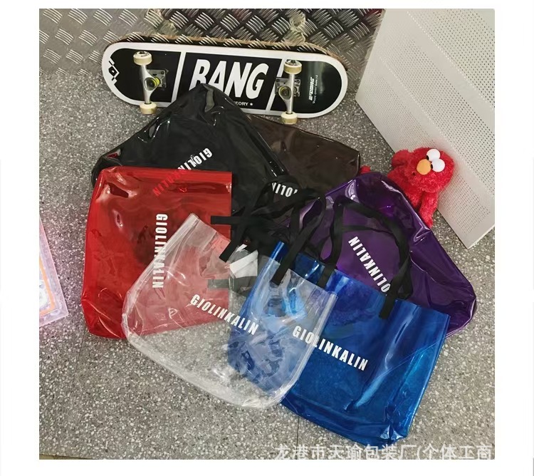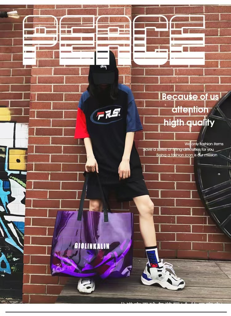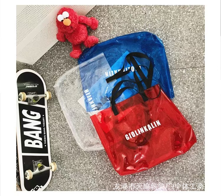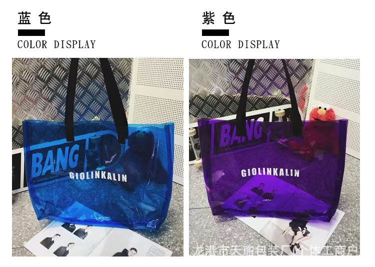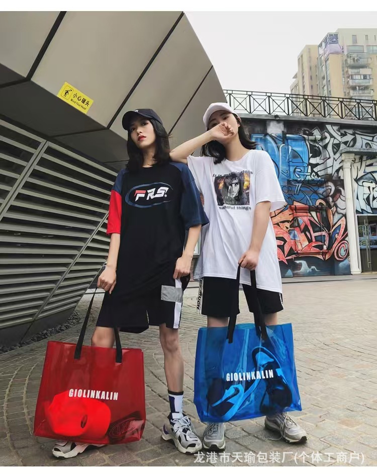 유행 투명 레이저 가방 여성의 새로운 여름 대용량 토트 백 캐주얼 비치 핸드백 쇼핑백