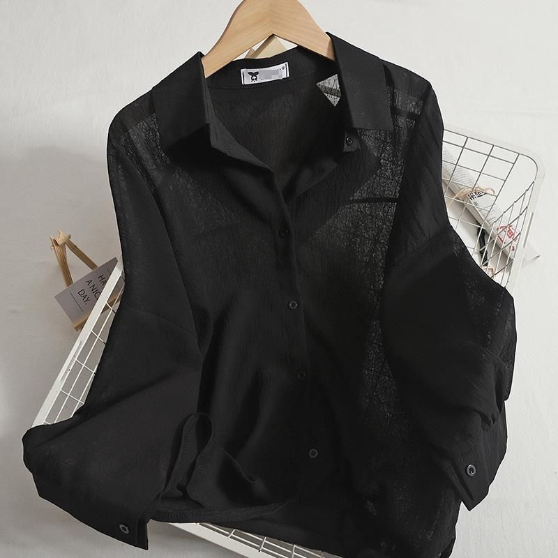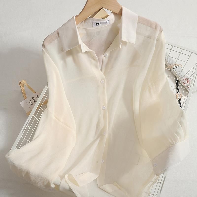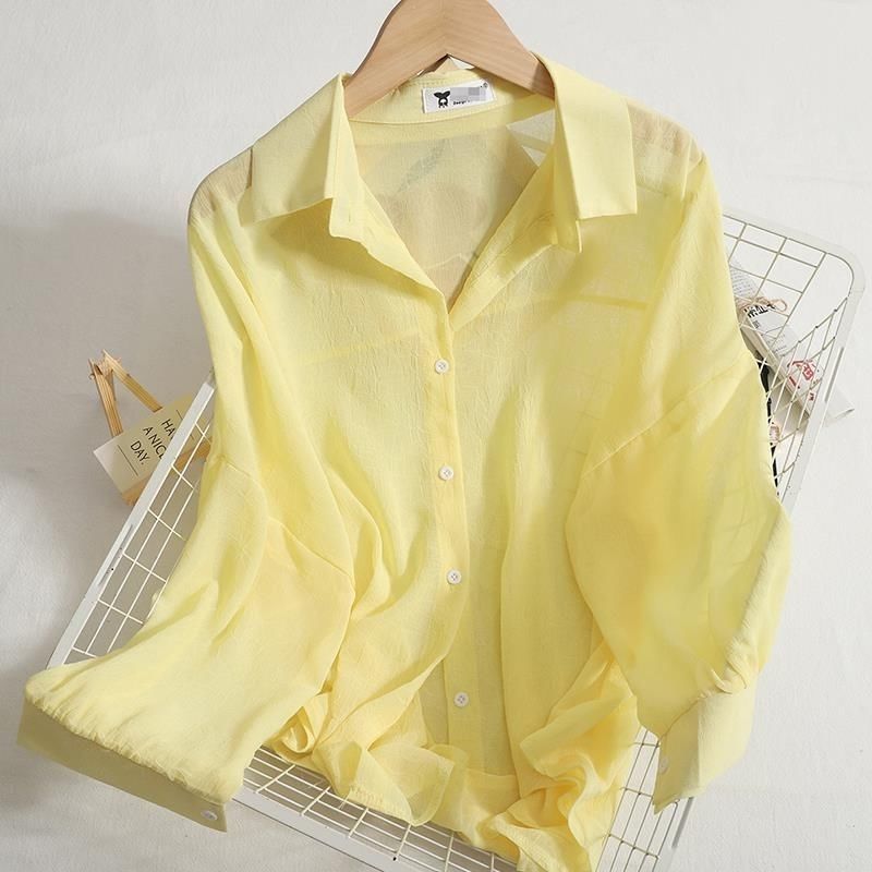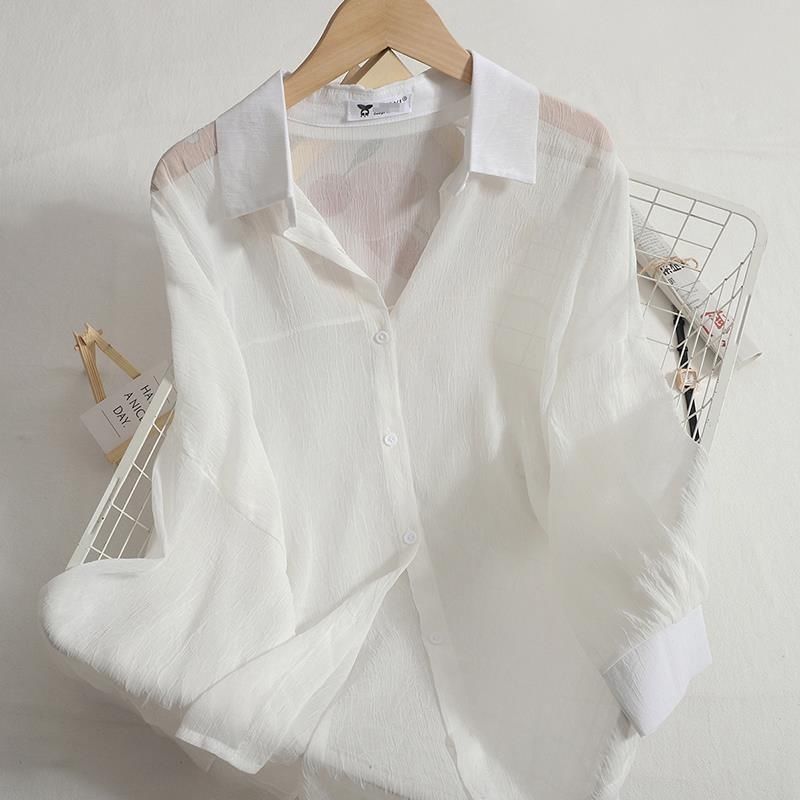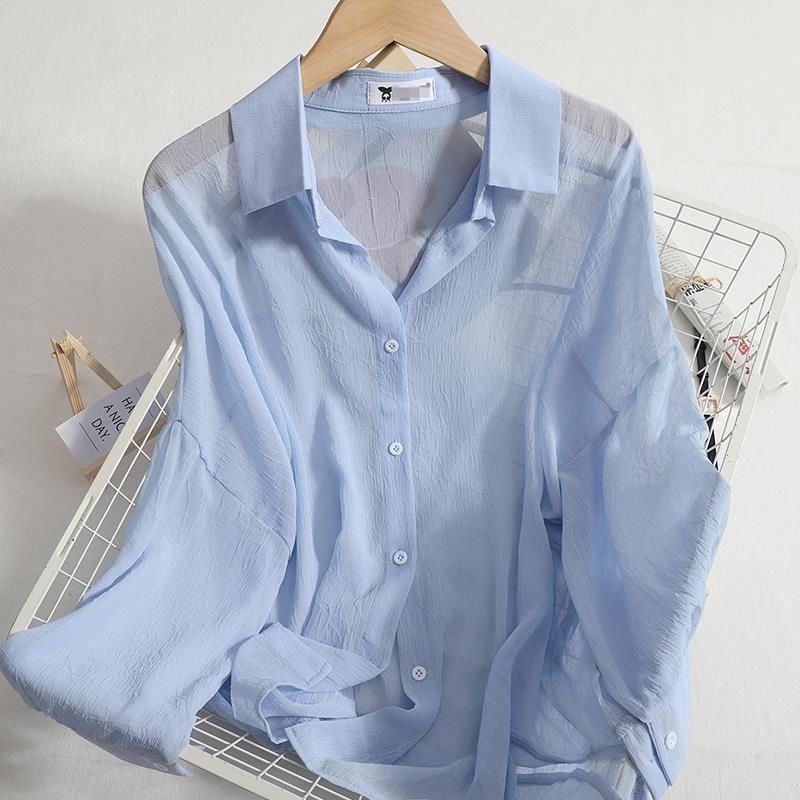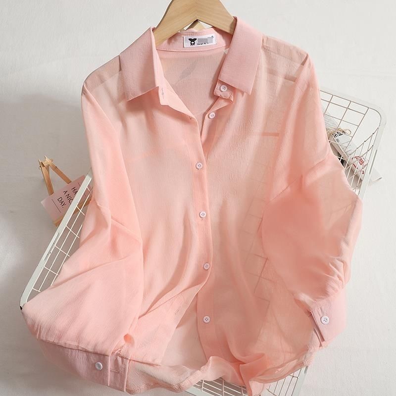 쉬폰 얇은 선 스크린 셔츠 여성 여름 새로운 올 매치 아우터 착용 카디건 솔리드 컬러 느슨한 슬림 셔츠 트렌디 탑