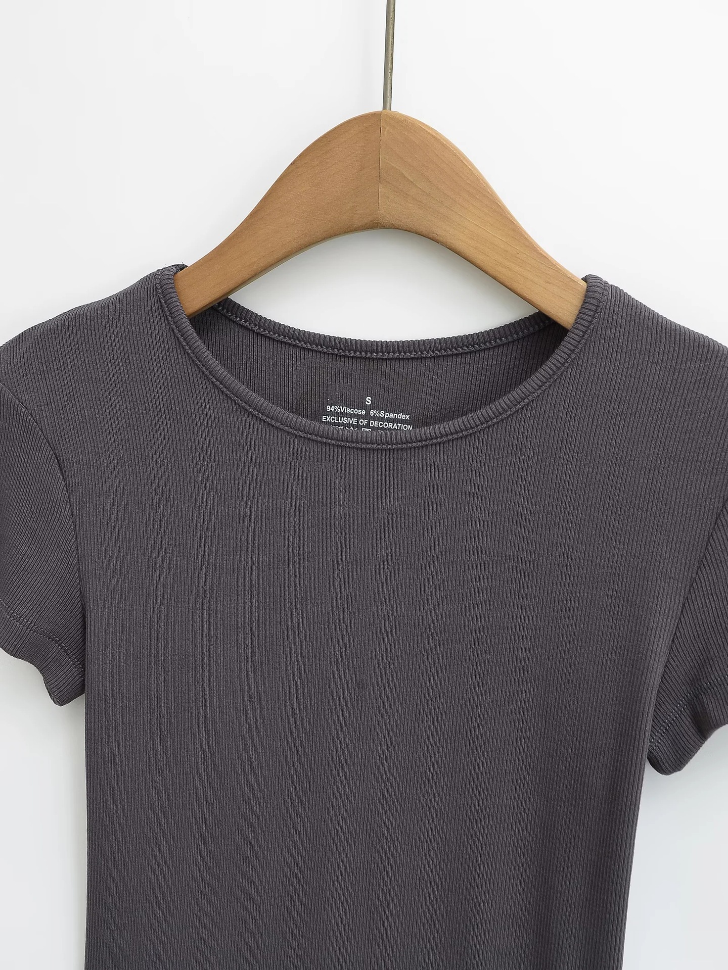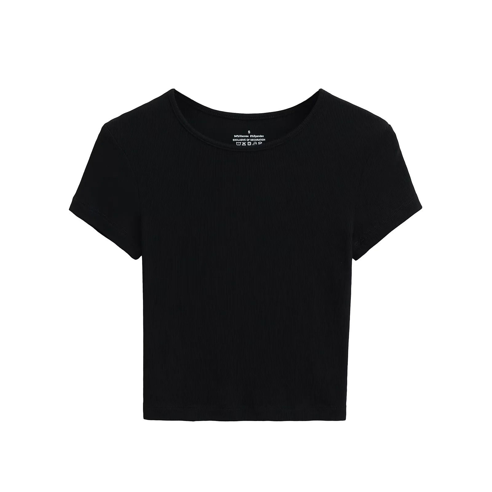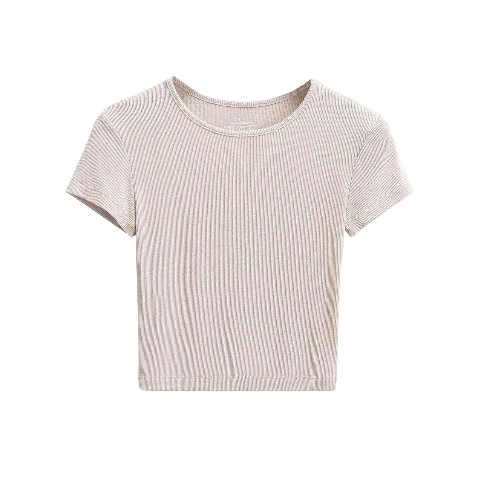 여자 라떼 어깨 크루 넥 티셔츠 여성용 반팔 쇼트 여름 배꼽 슬림 핏 보텀핑 내부 타이트탑 슬림 핏스토어 가기