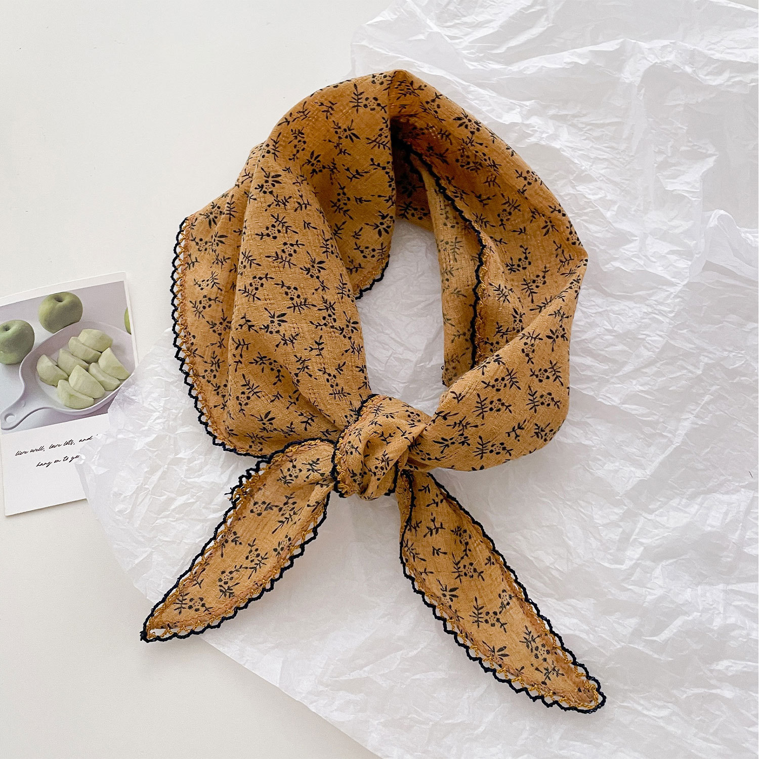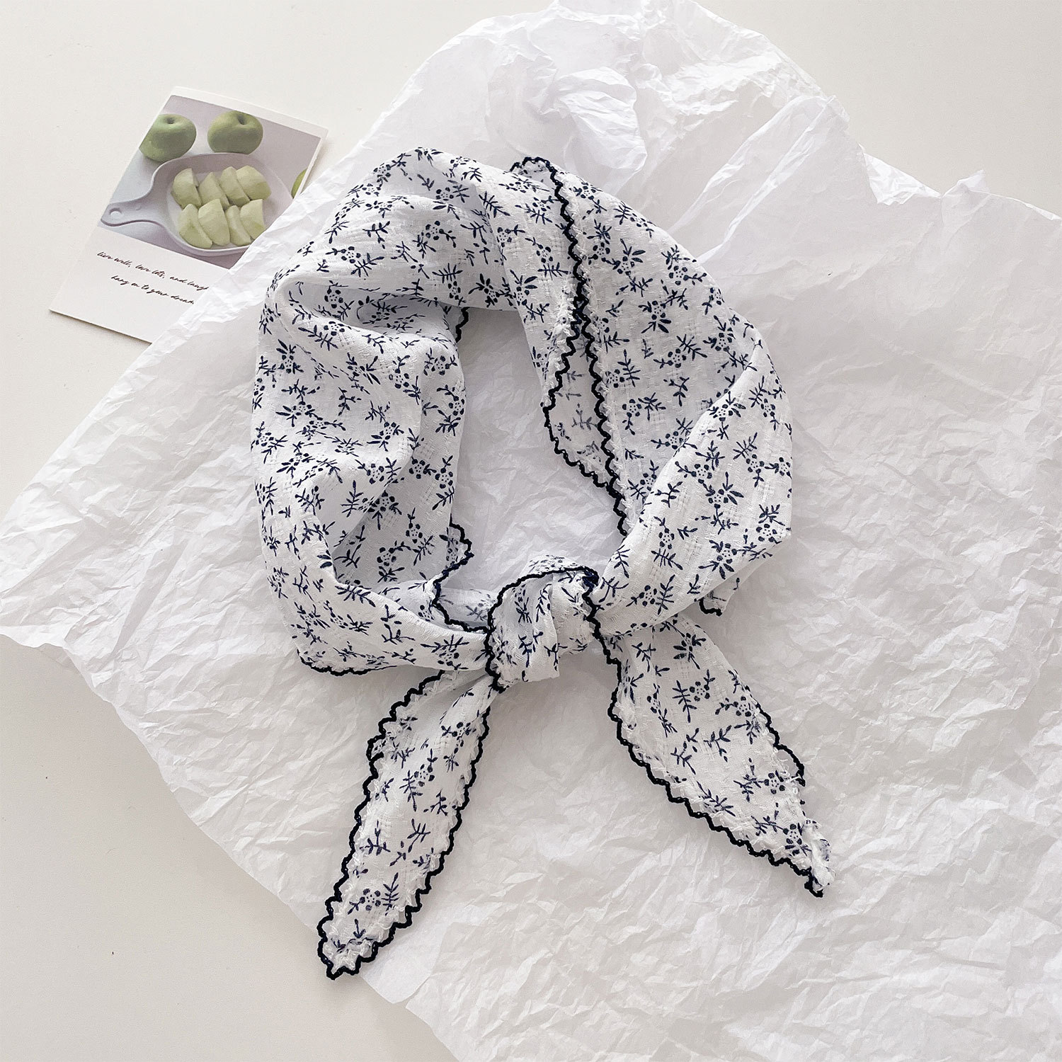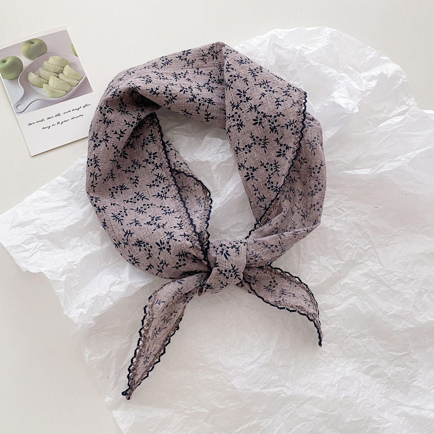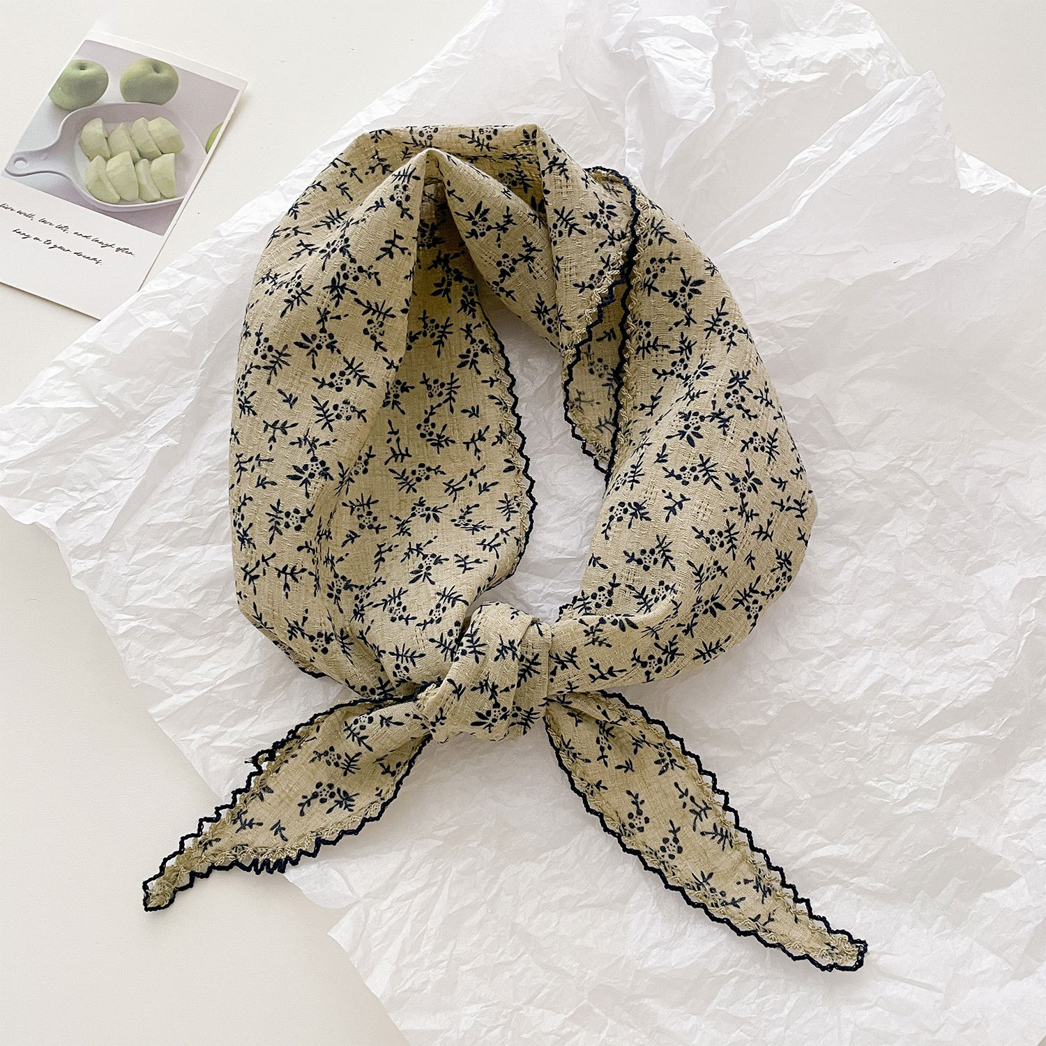 프렌치 레트로 스카프, 실크 스카프, 작은 목 스카프, 여름용 얇은 리본 머리띠, 캐슈 스카프, 다용도 여성용 면 삼각 스카프, 봄 여름스토어 가기