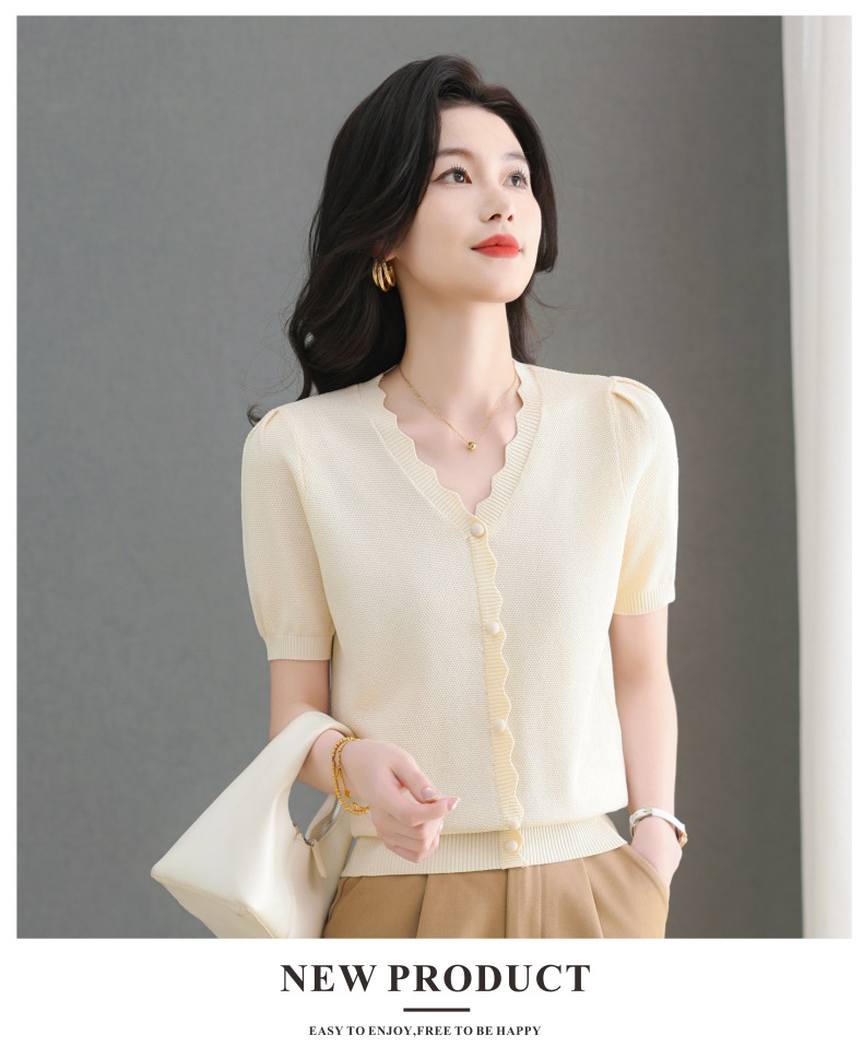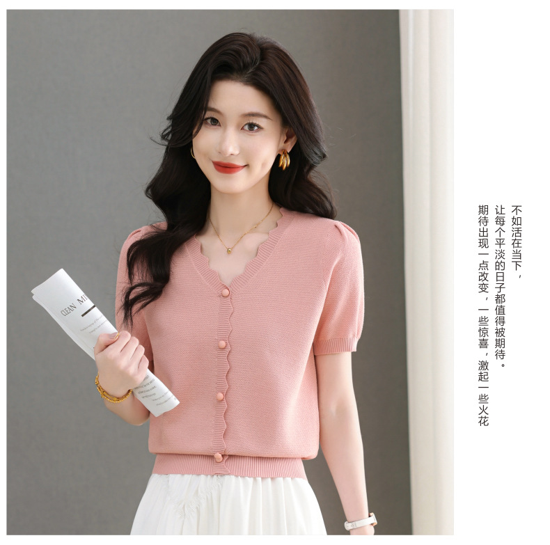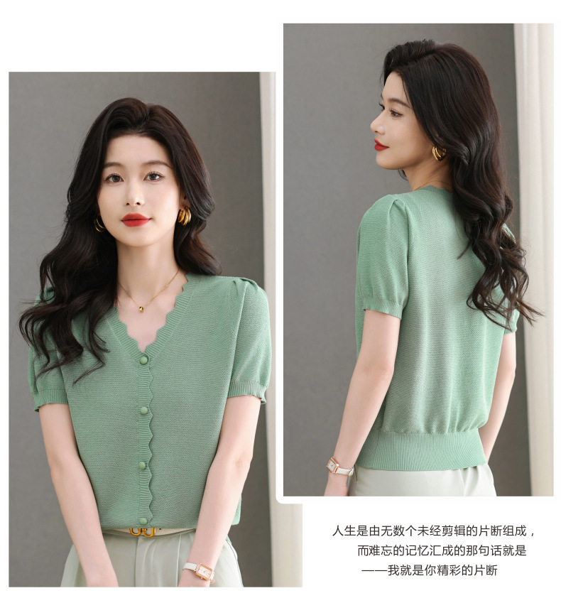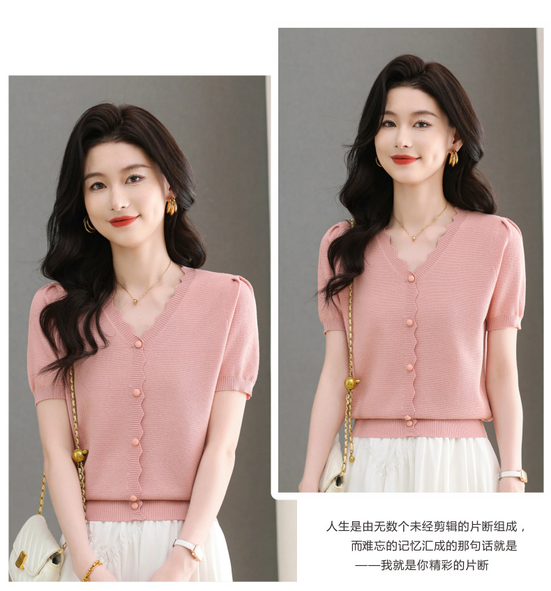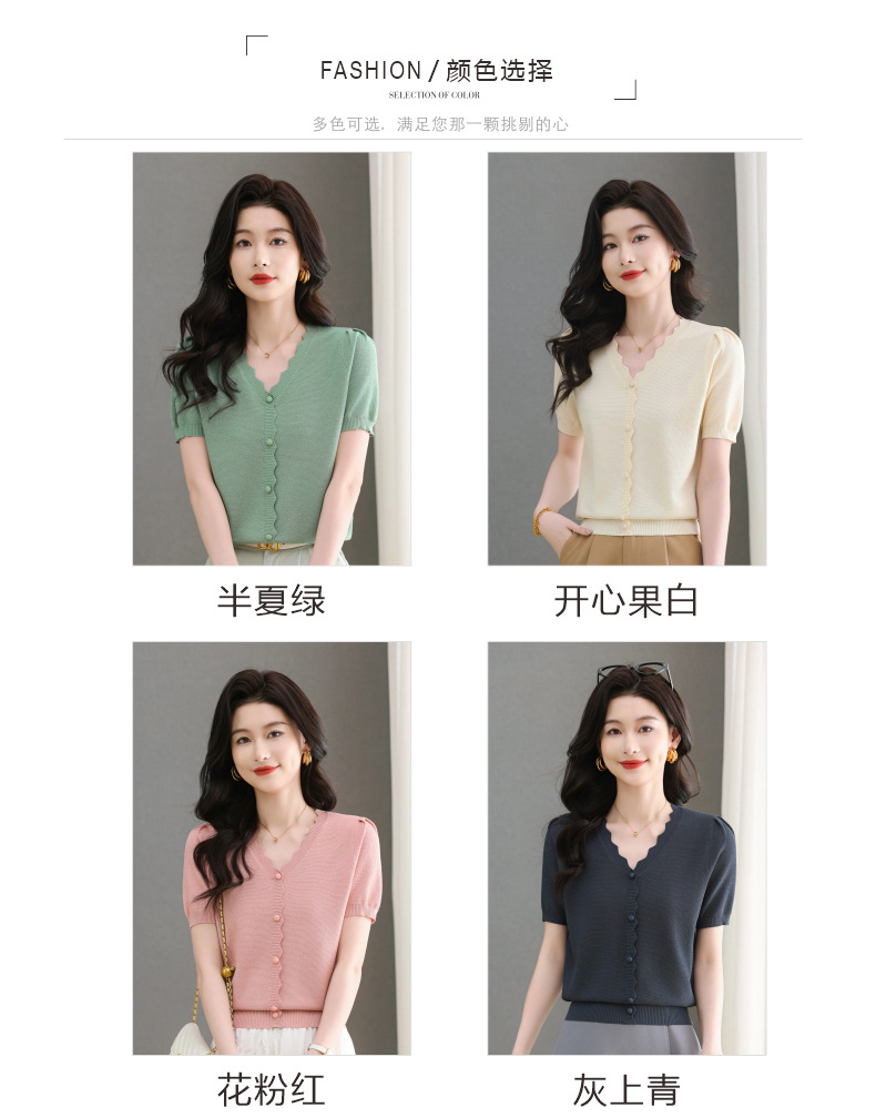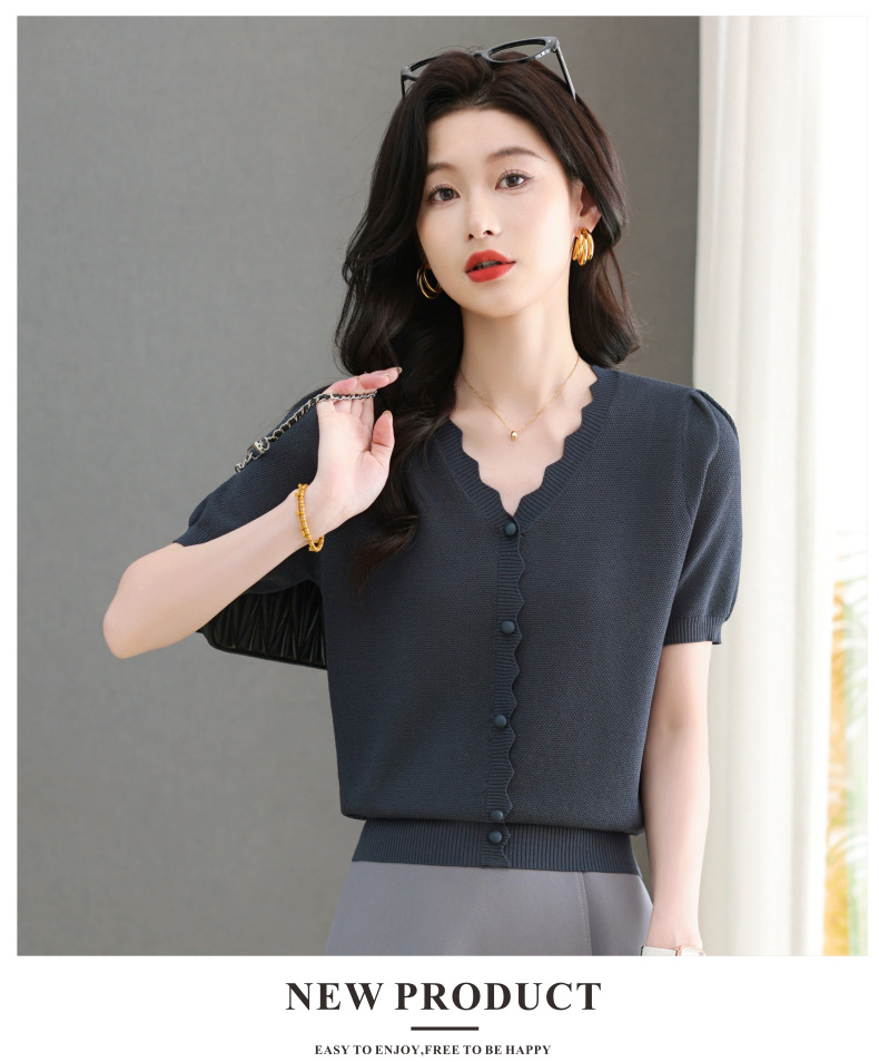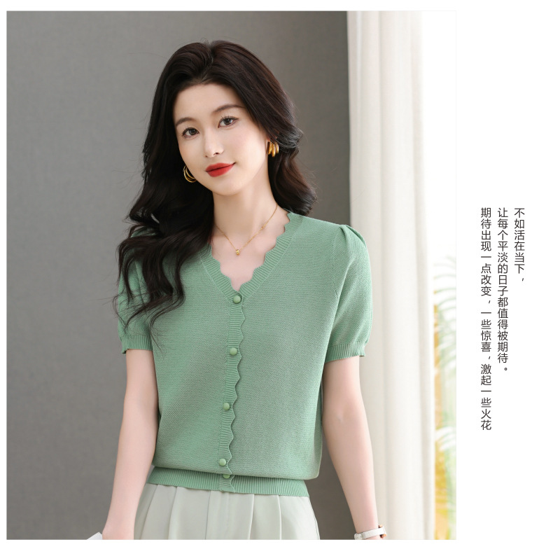 Lyocell Tencel 여름 2025 새로운 V 넥 얇은 니트 셔츠 티셔츠 여성용 반팔 티셔츠 풀오버 탑스토어 가기