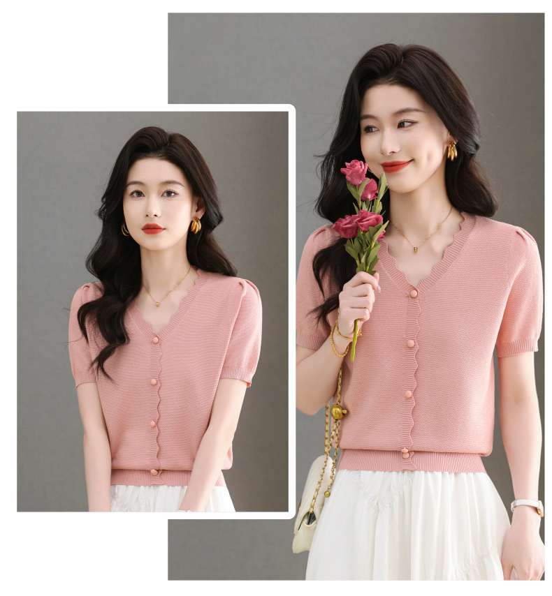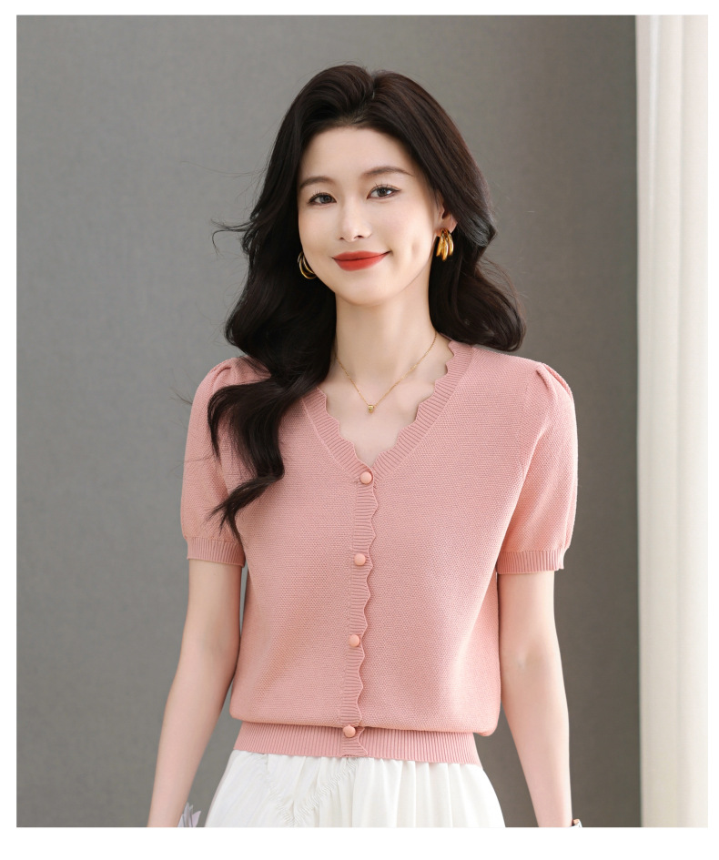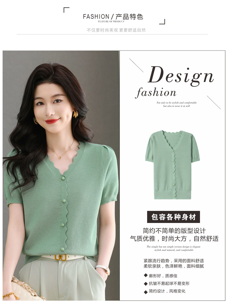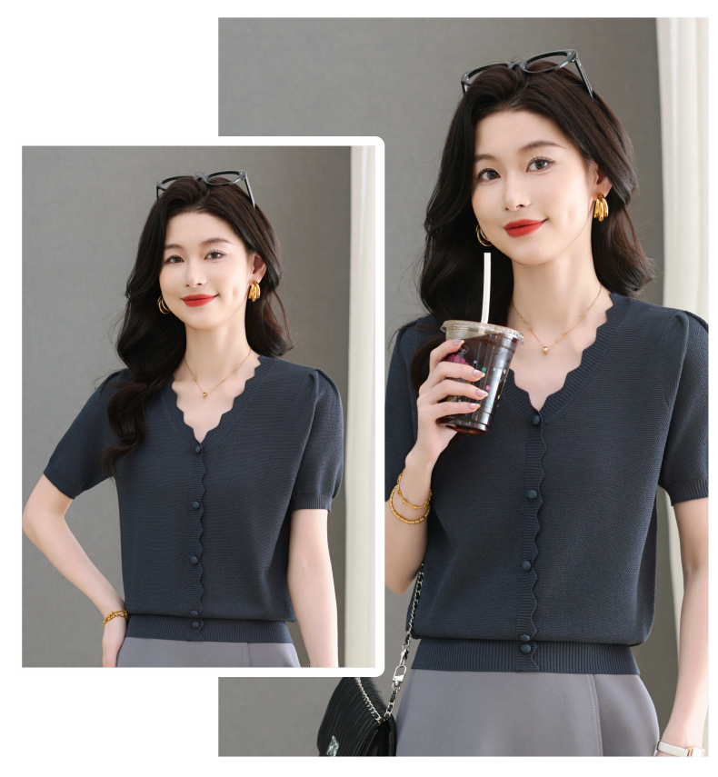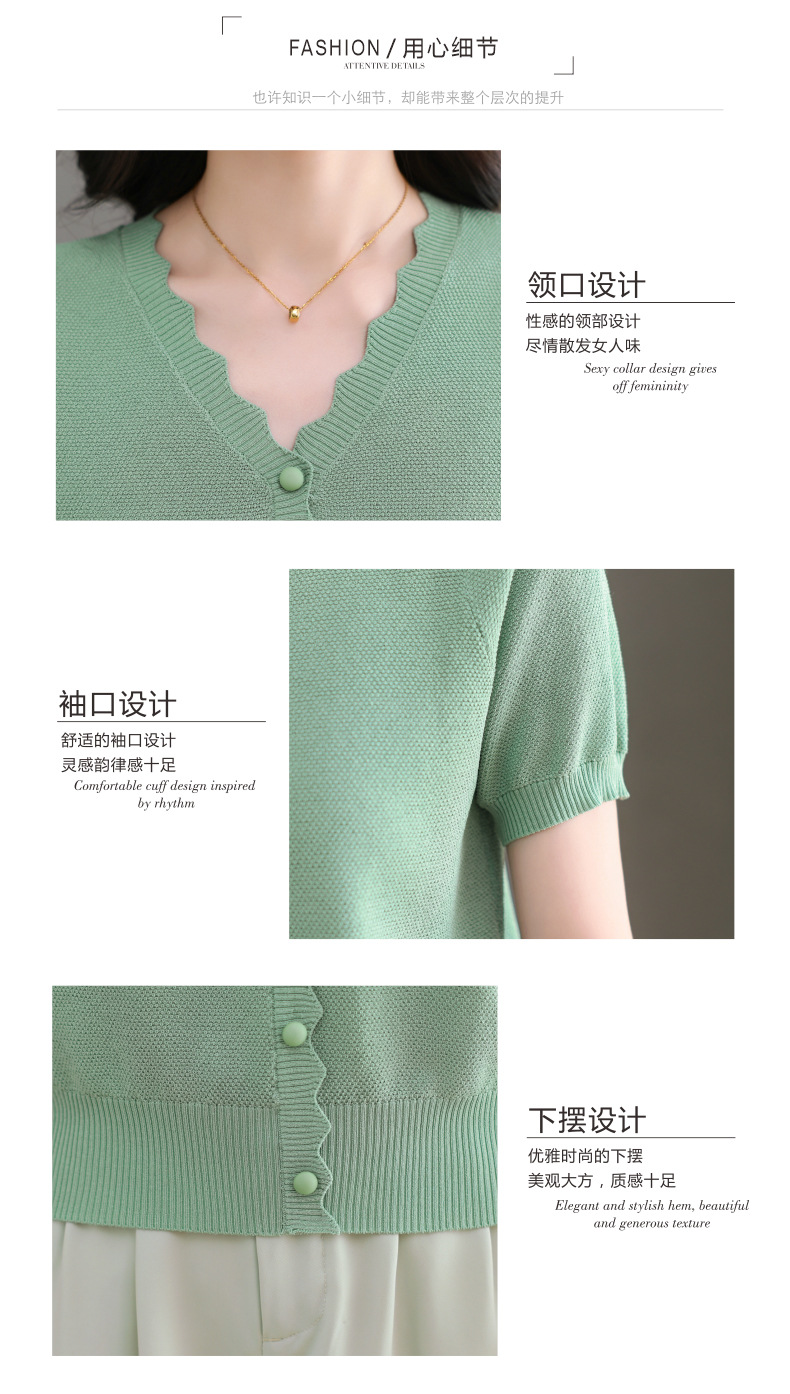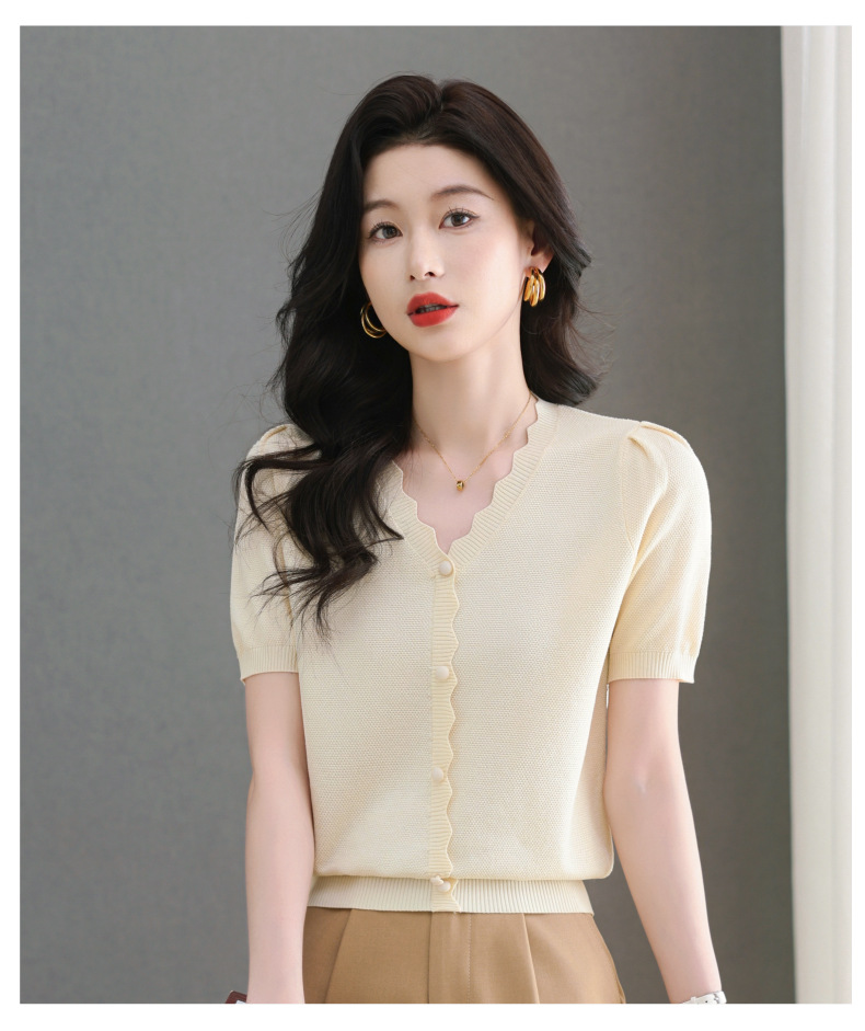 Lyocell Tencel 여름 2025 새로운 V 넥 얇은 니트 셔츠 티셔츠 여성용 반팔 티셔츠 풀오버 탑스토어 가기