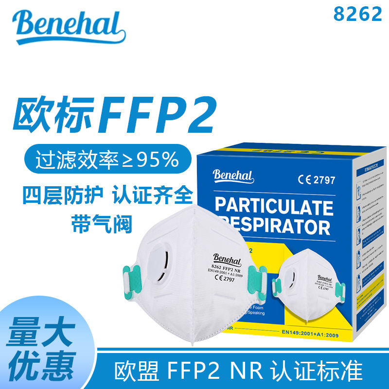 공업용 방진 베네할 국경 간 열기 절단 기능이 있는 공기 밸브가 있는 유럽 표준 CE 인증 FFP2 NR 보호 마스크