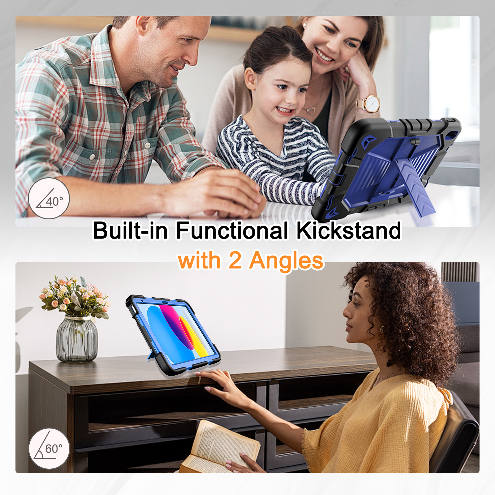 아이패드 10세대 11세대 A16 태블릿 보호 케이스(스탠드 포함) 실리콘 충격 방지 및 낙하 방지 보호 쉘 휴대용