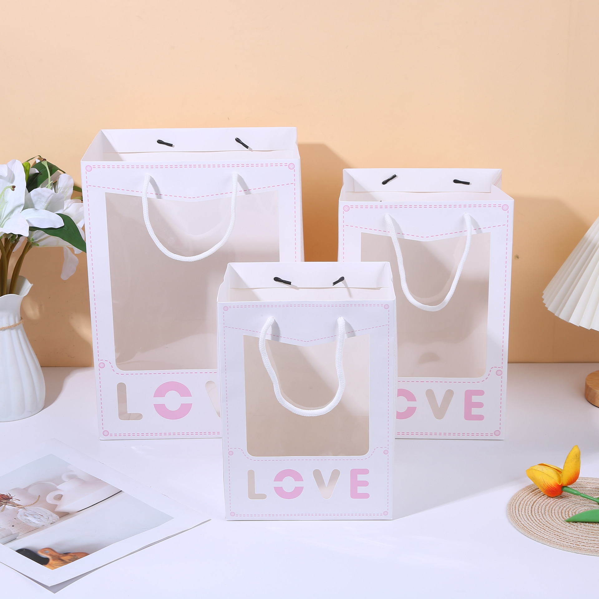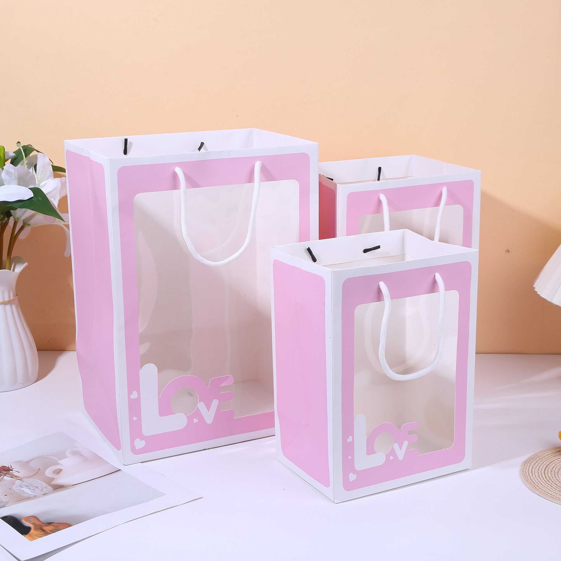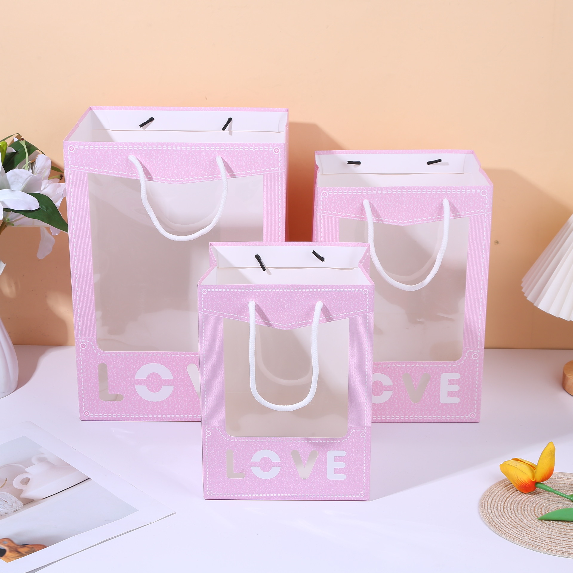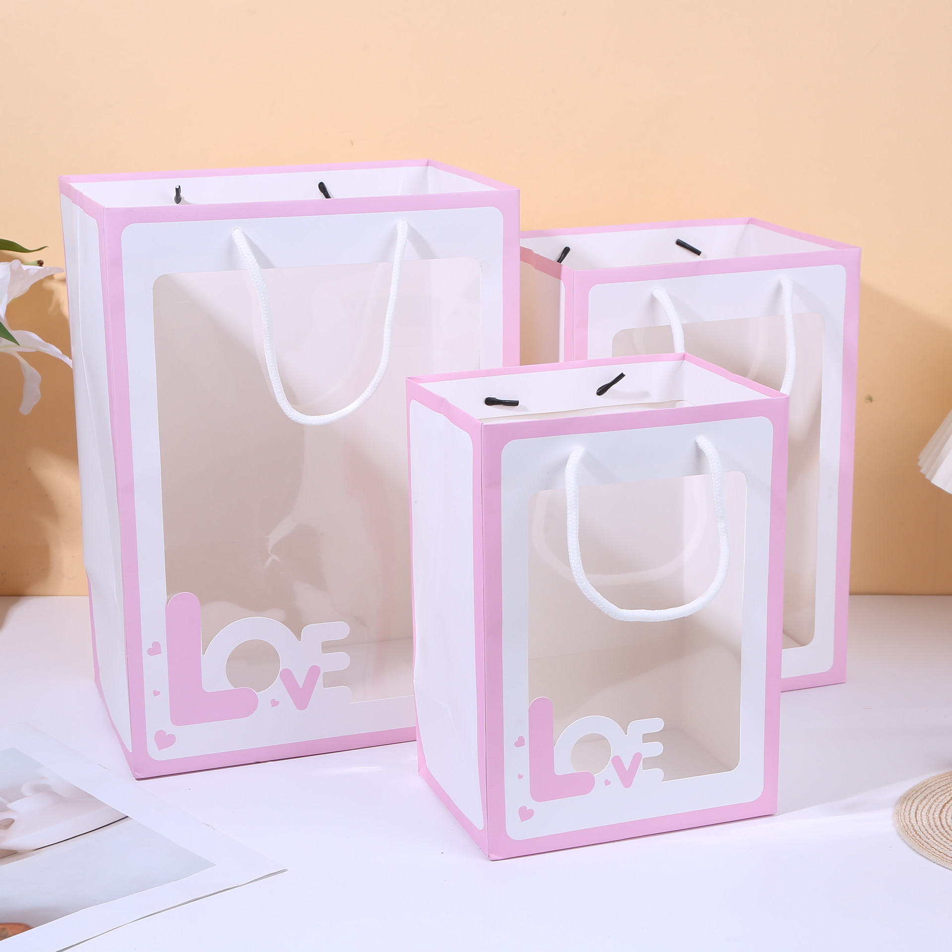 제조업체 재고 투명 선물 가방, 꽃 포장 가방, 기념품 가방, 웨딩 선물 포장