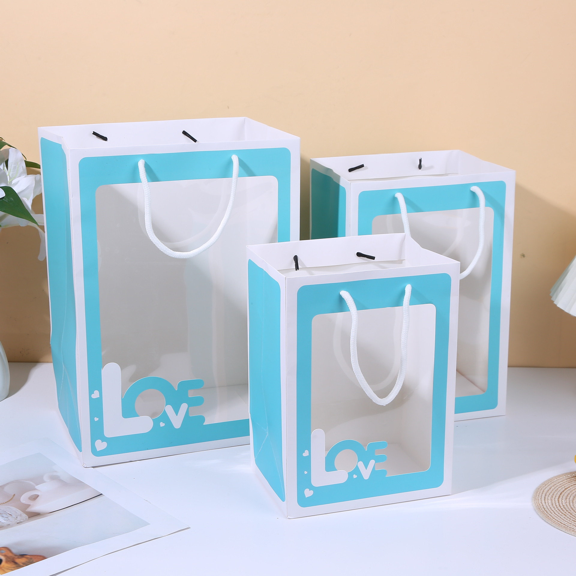 제조업체 재고 투명 선물 가방, 꽃 포장 가방, 기념품 가방, 웨딩 선물 포장스토어 가기