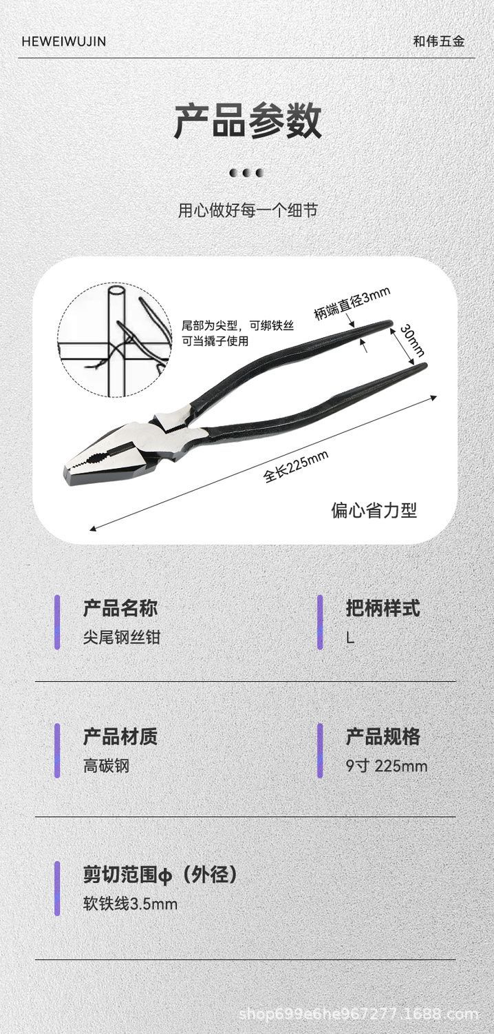 9inch 포인티드 테일 철 손잡이 와이어 커터 산업용 등급 도구 펜치 바이스 와이어 커팅 와인딩 펜치 다기능 펜치스토어 가기