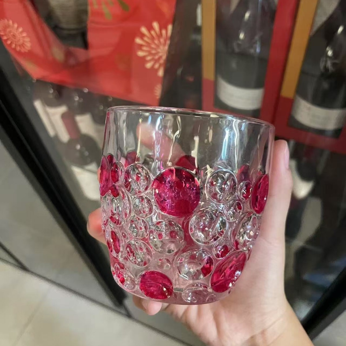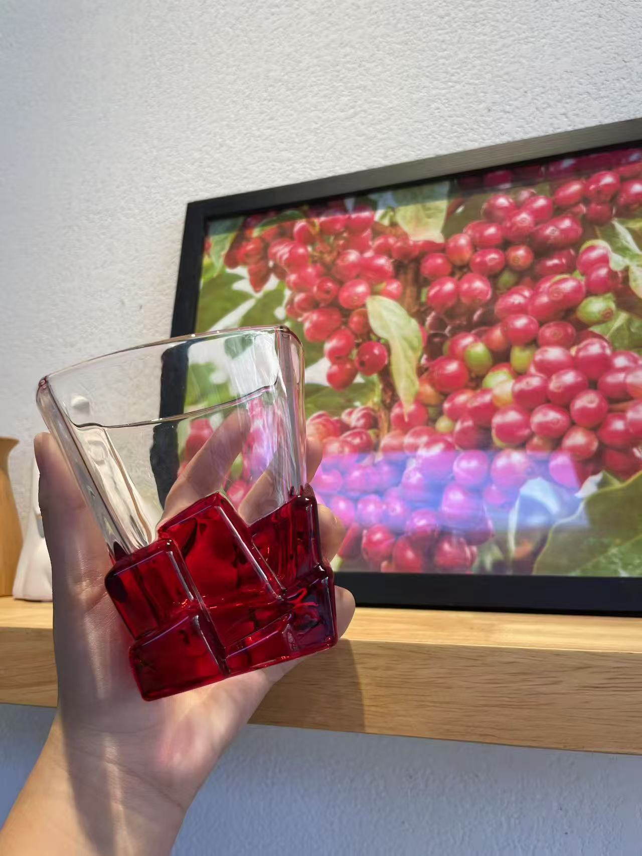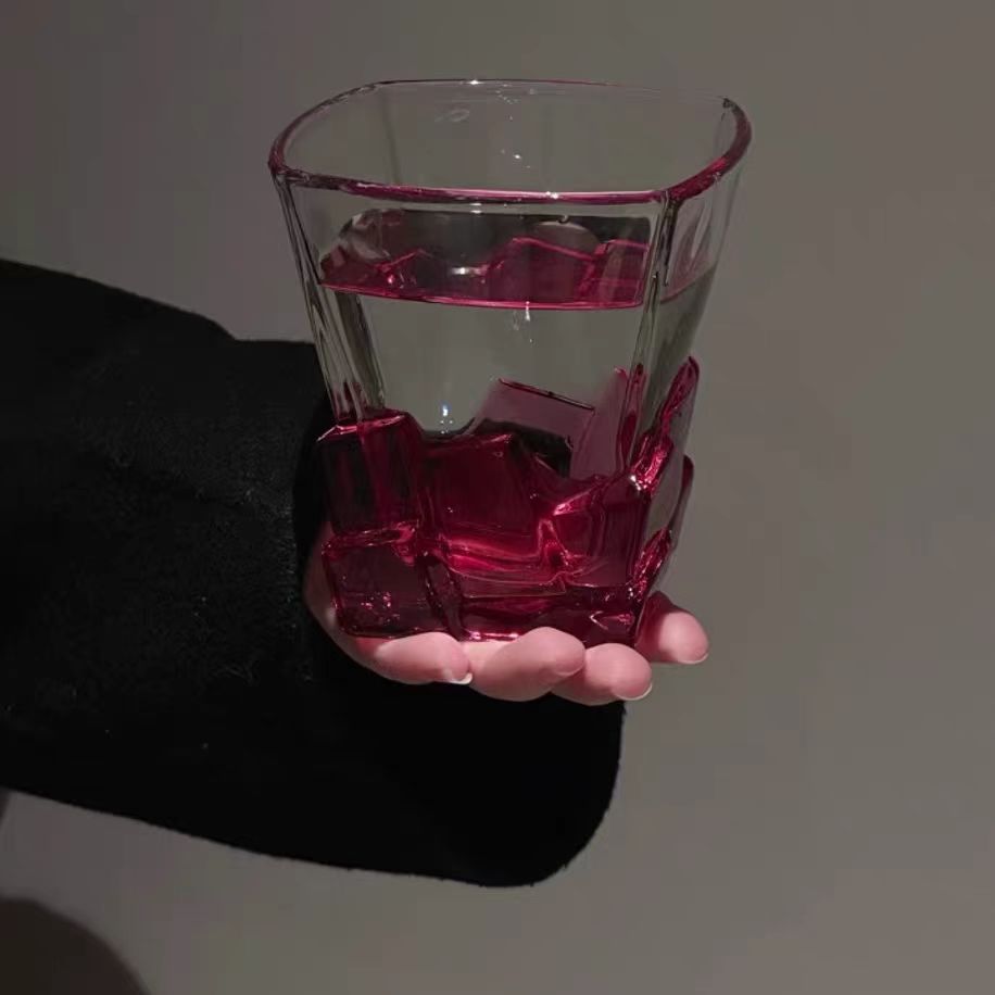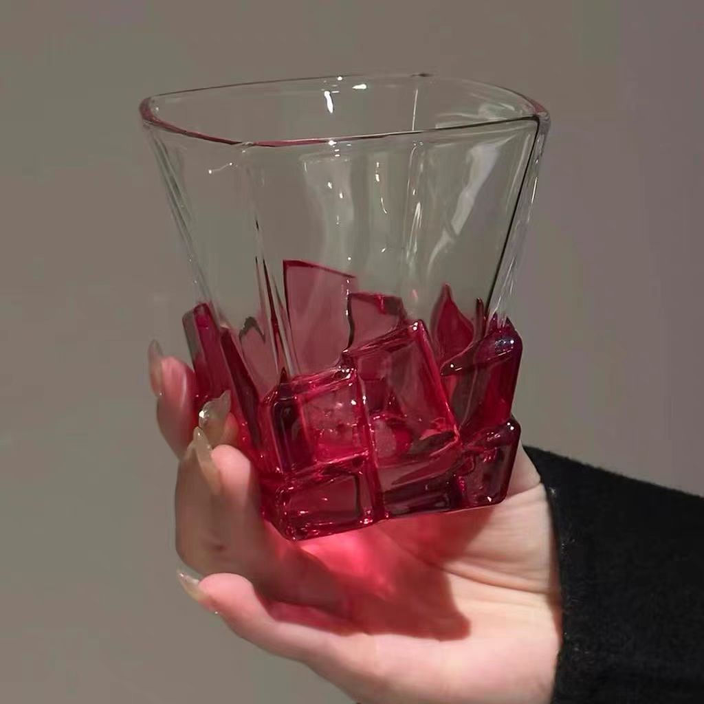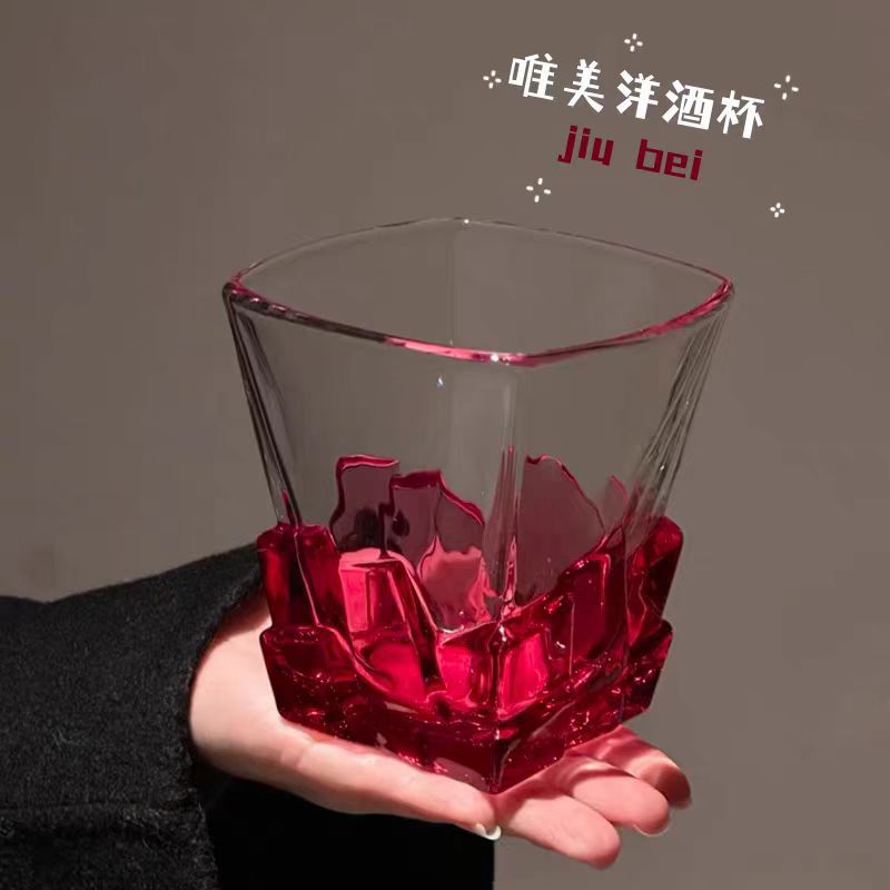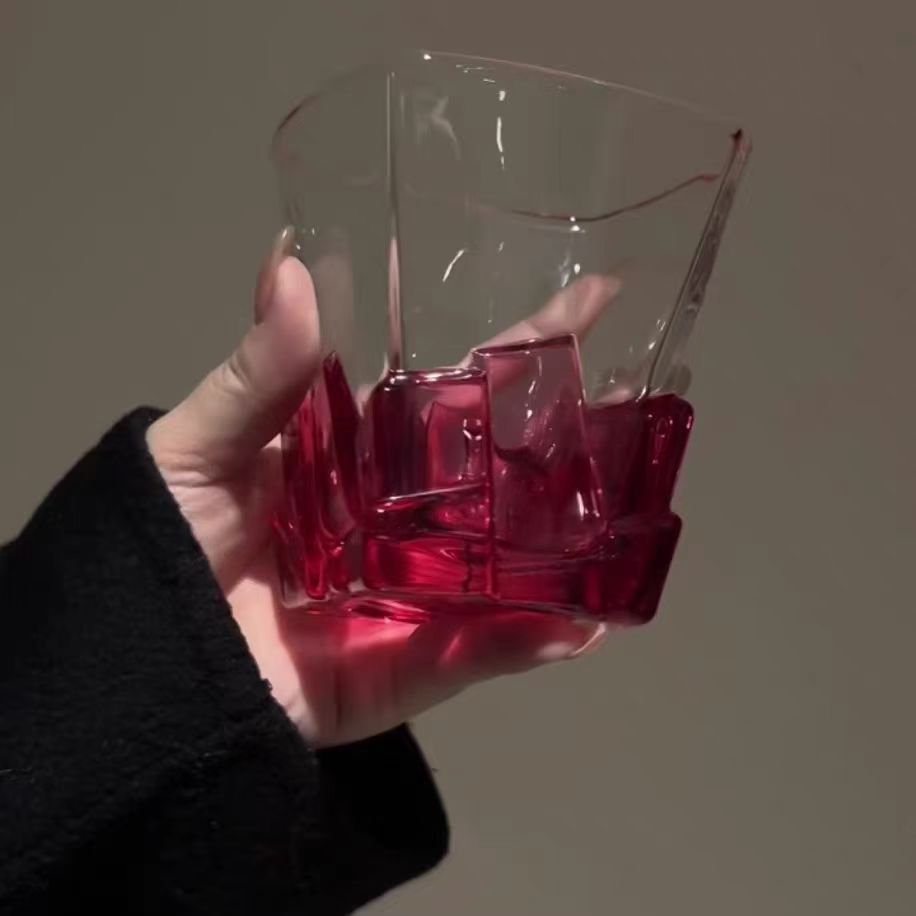 레트로 레드 아이스 와인 잔, 고급 여성용 개인 고가 유리 디자인 틈새 물컵스토어 가기
