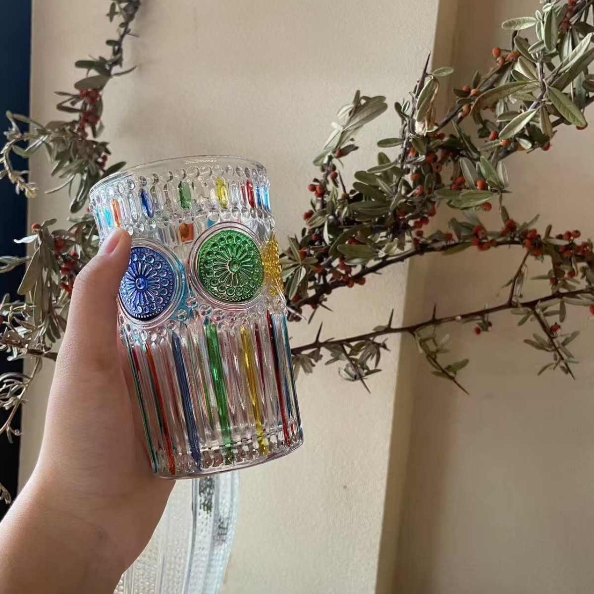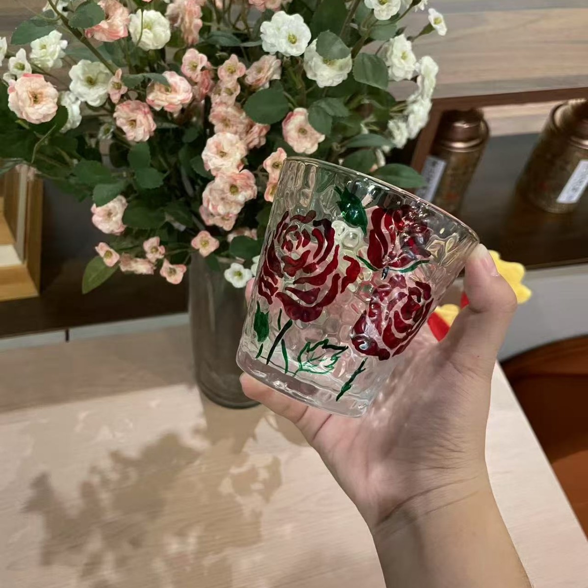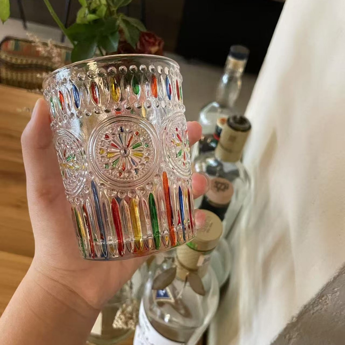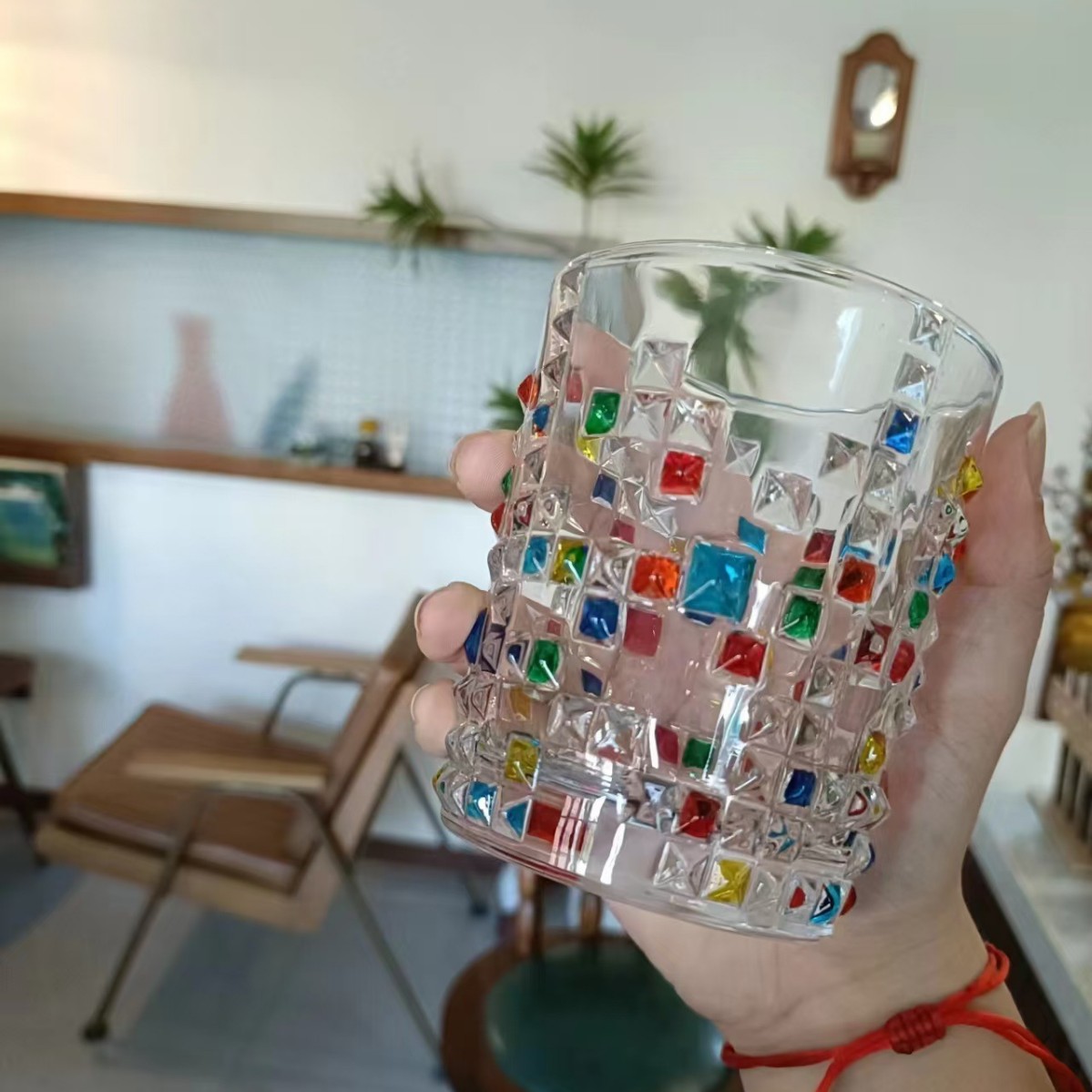 레트로 레드 아이스 와인 잔, 고급 여성용 개인 고가 유리 디자인 틈새 물컵스토어 가기