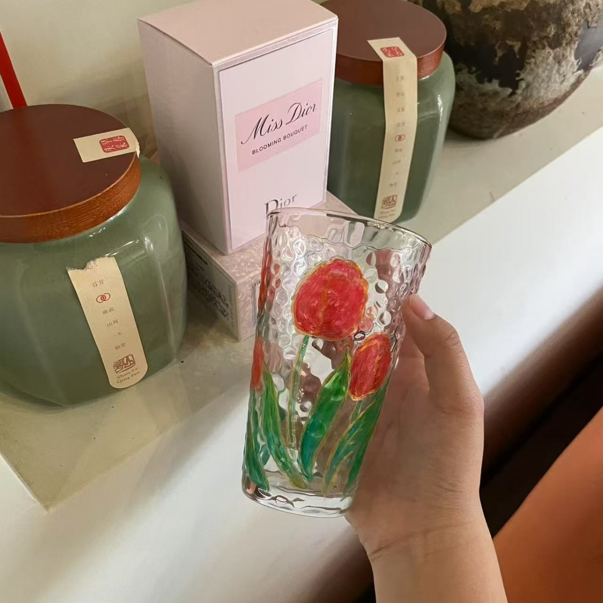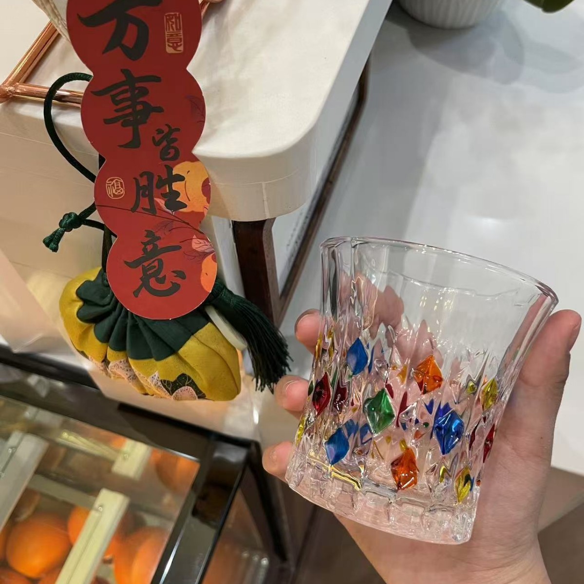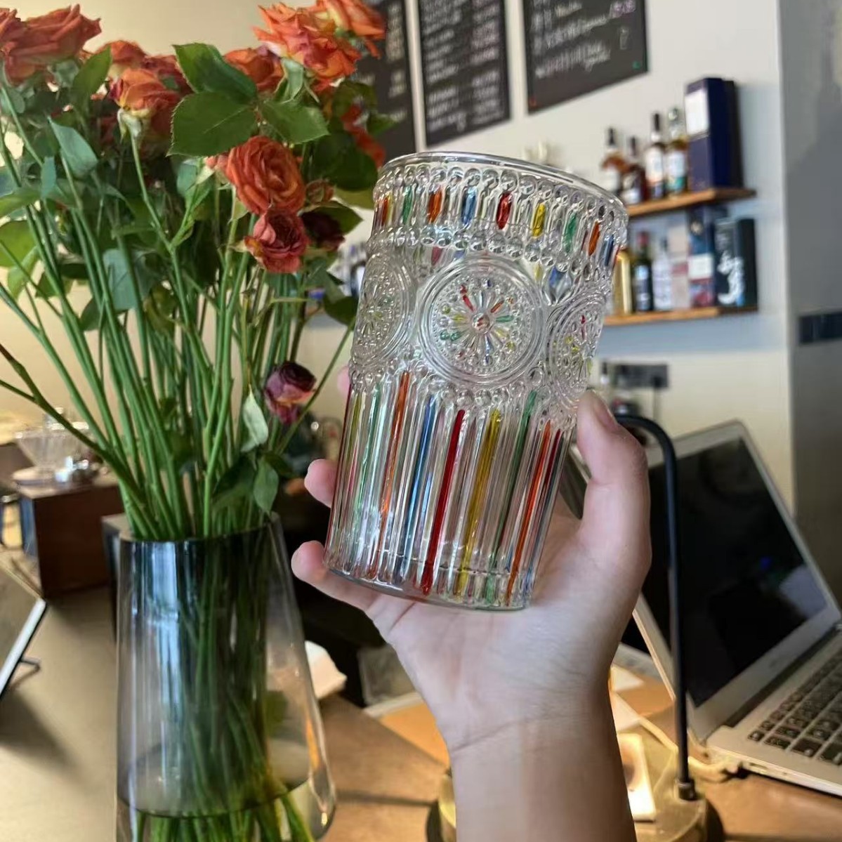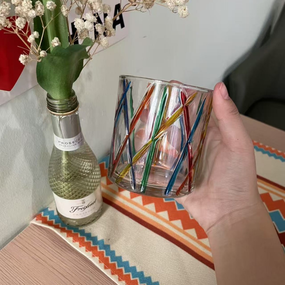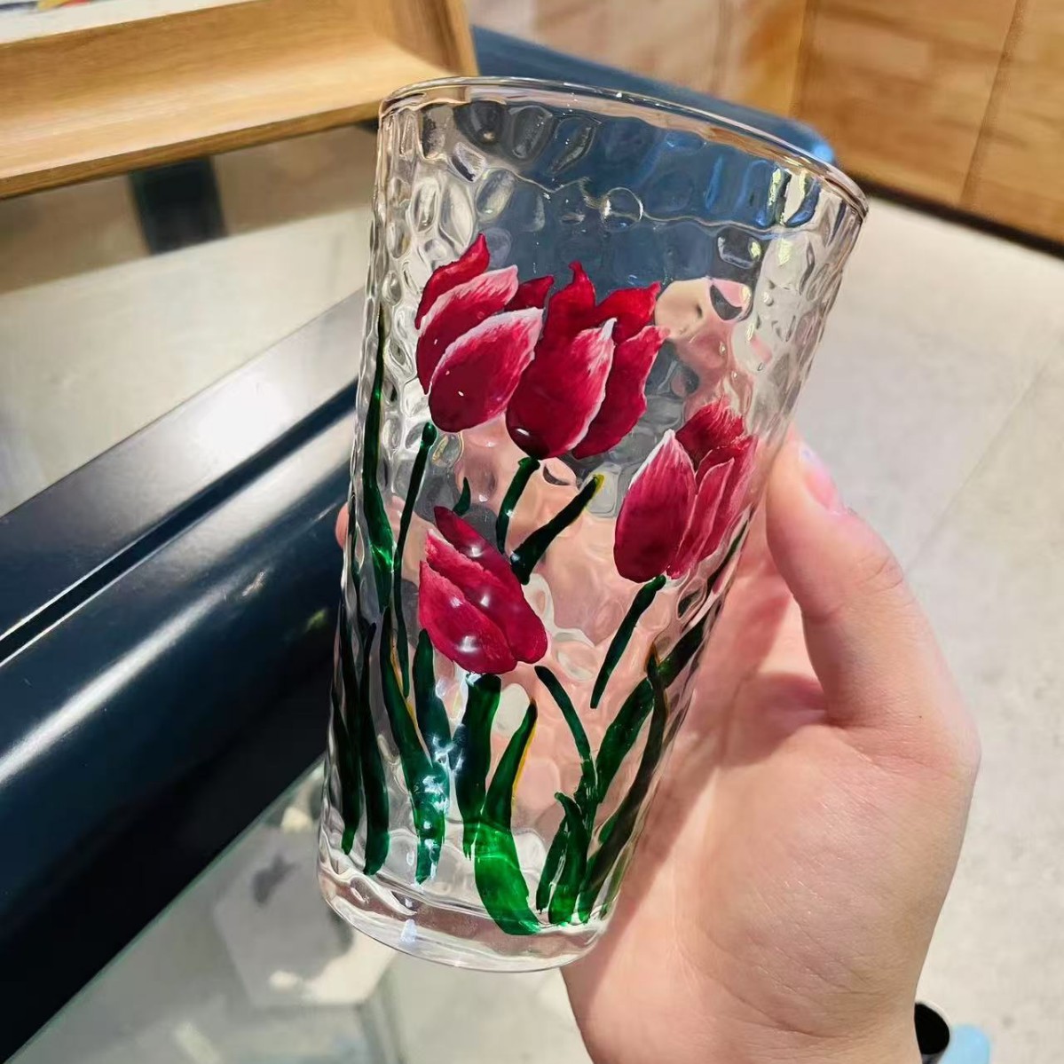 레트로 레드 아이스 와인 잔, 고급 여성용 개인 고가 유리 디자인 틈새 물컵스토어 가기
